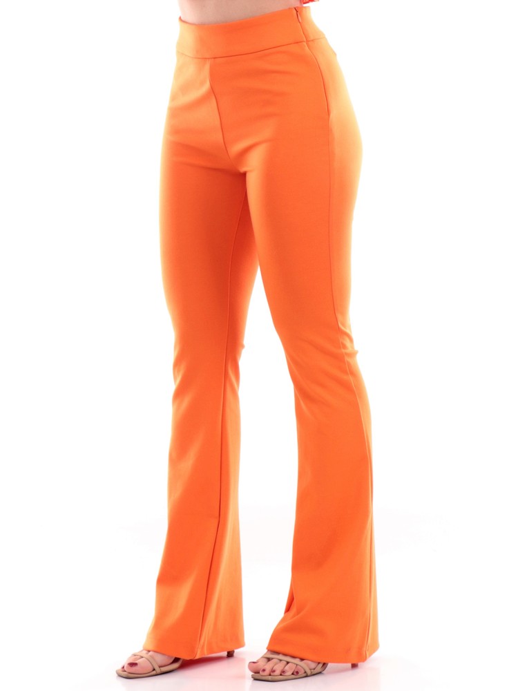 XT Studio Orange Women's Bootcut Pants SVA002W58001. These orange XT Studio trousers have a side half zip which makes them easy to wear and a regular flared bottom.