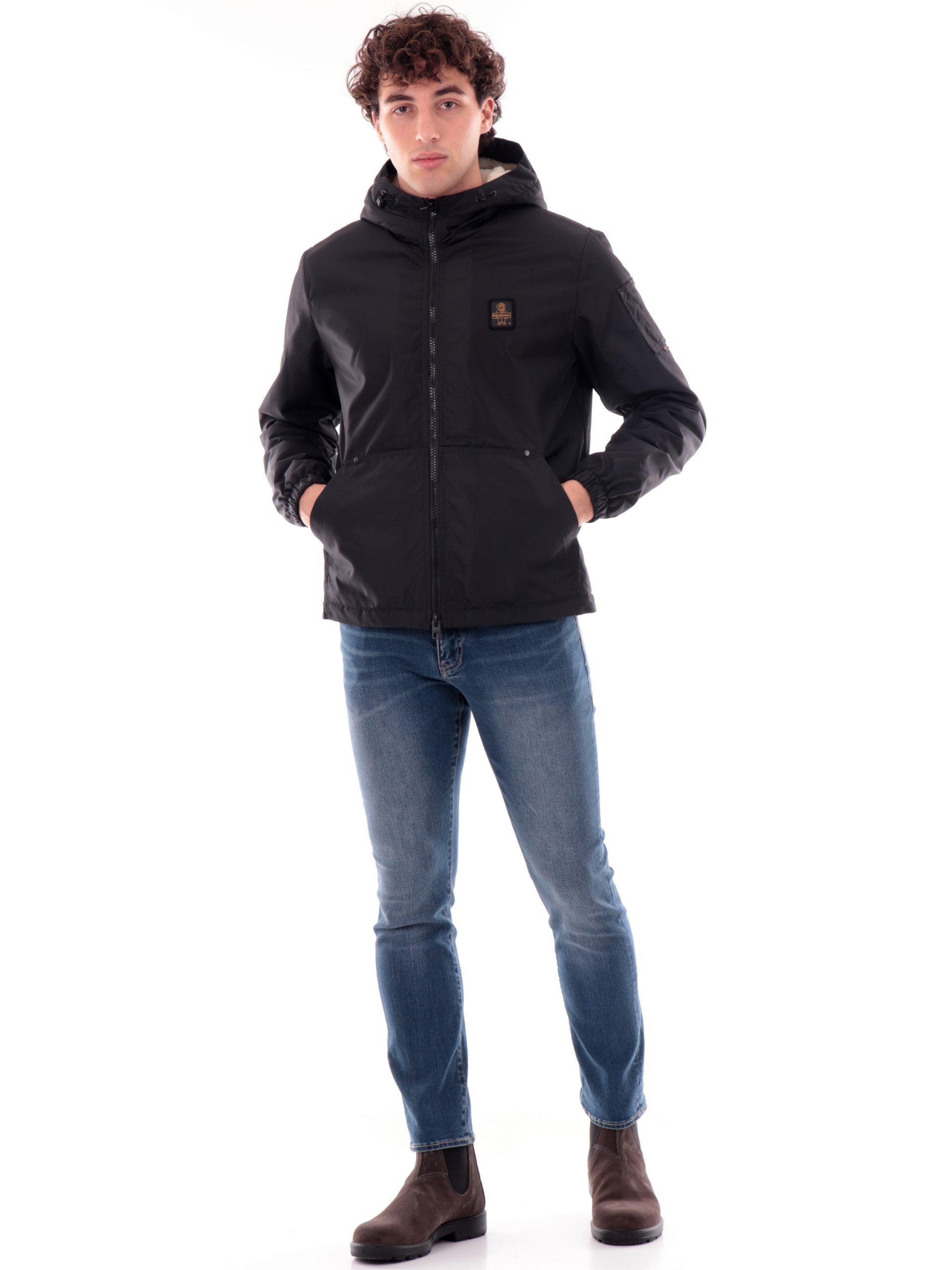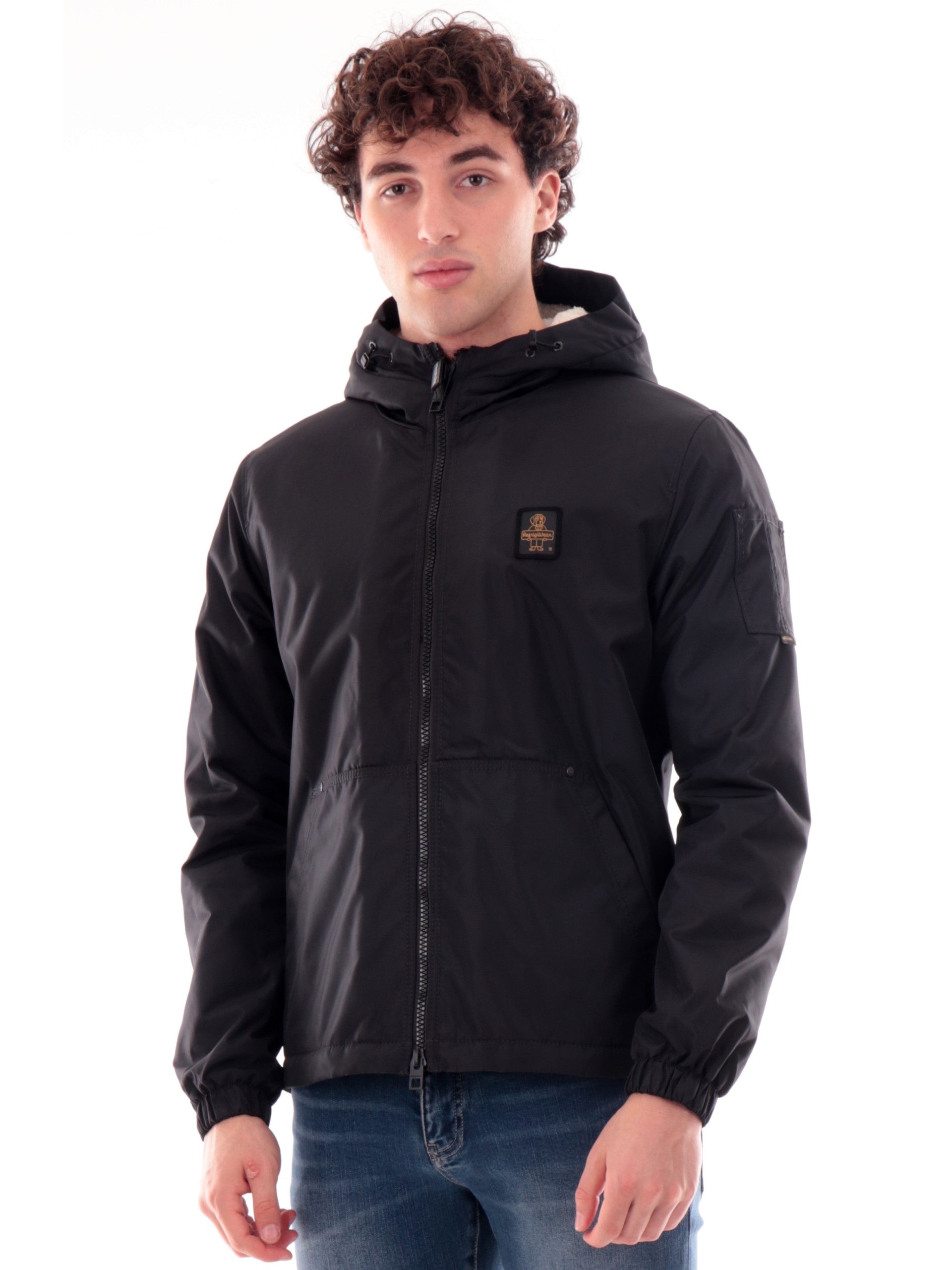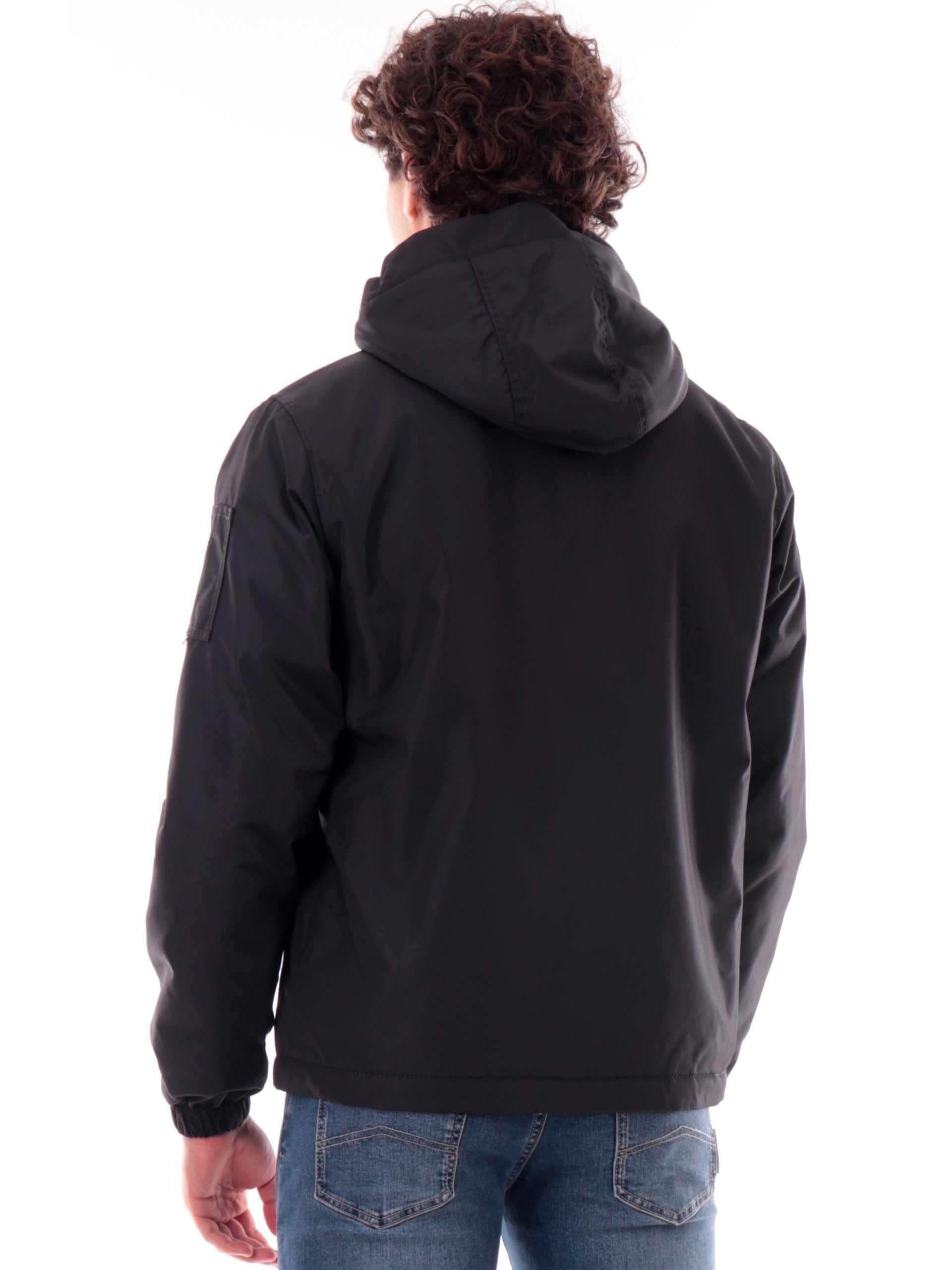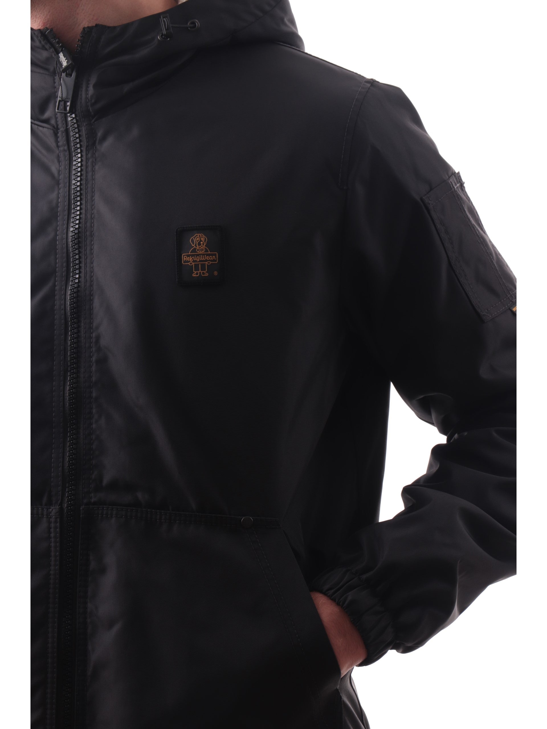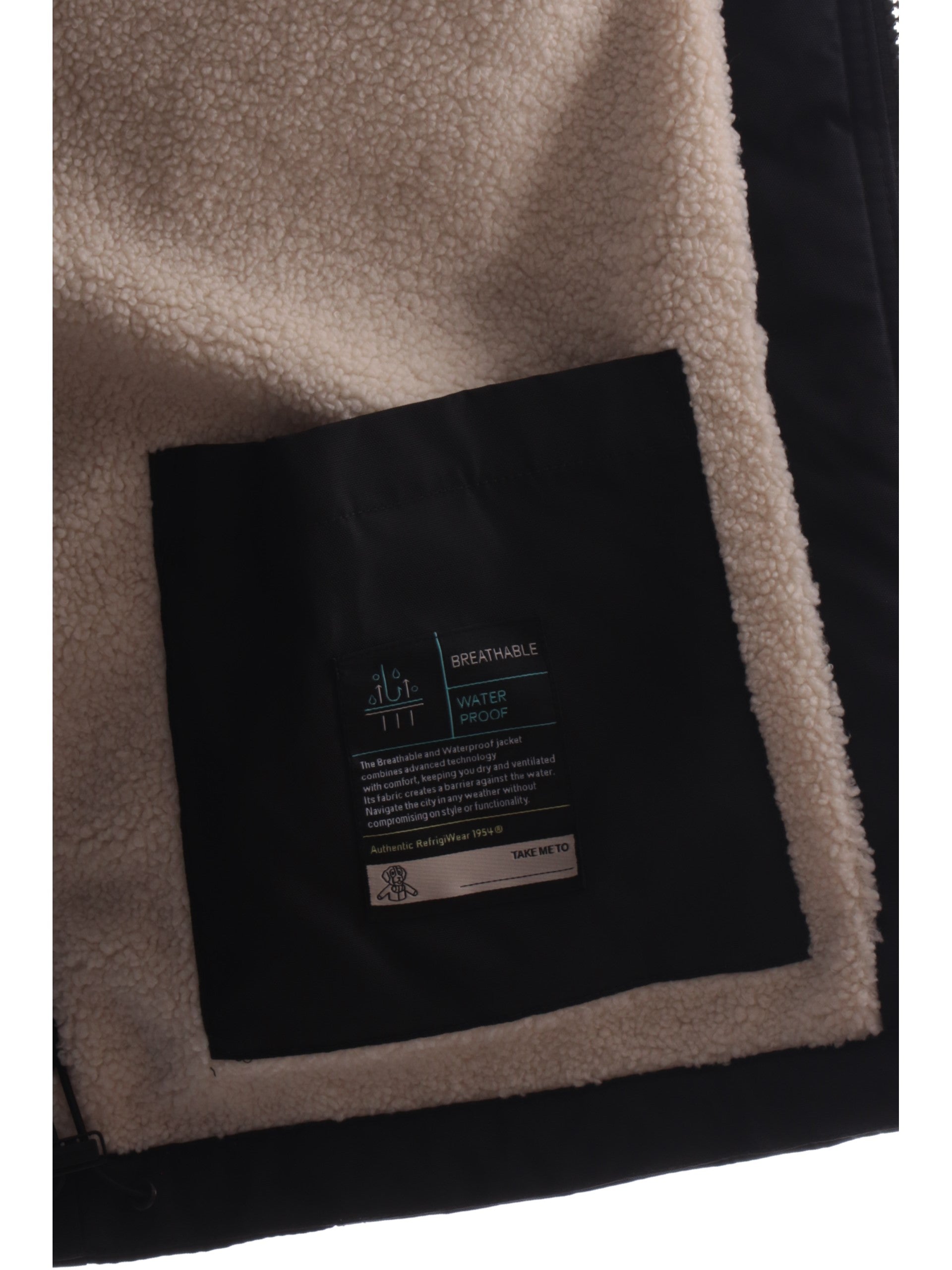Giacca Refrigiwear nera da uomo tessuto tecnico con pile interno G72900, realizzata con imbottitura eco-friendly. Questo giubbino Refrigiwear nero ha il cappuccio fisso regolabile con coulisse, la chiusura full zip centrale con doppio cursore logato, due tasche laterali aperte, il logo del brand sul cuore a contrasto colore, i polsini elasticizzati e il fondo regolabile con coulisse.
