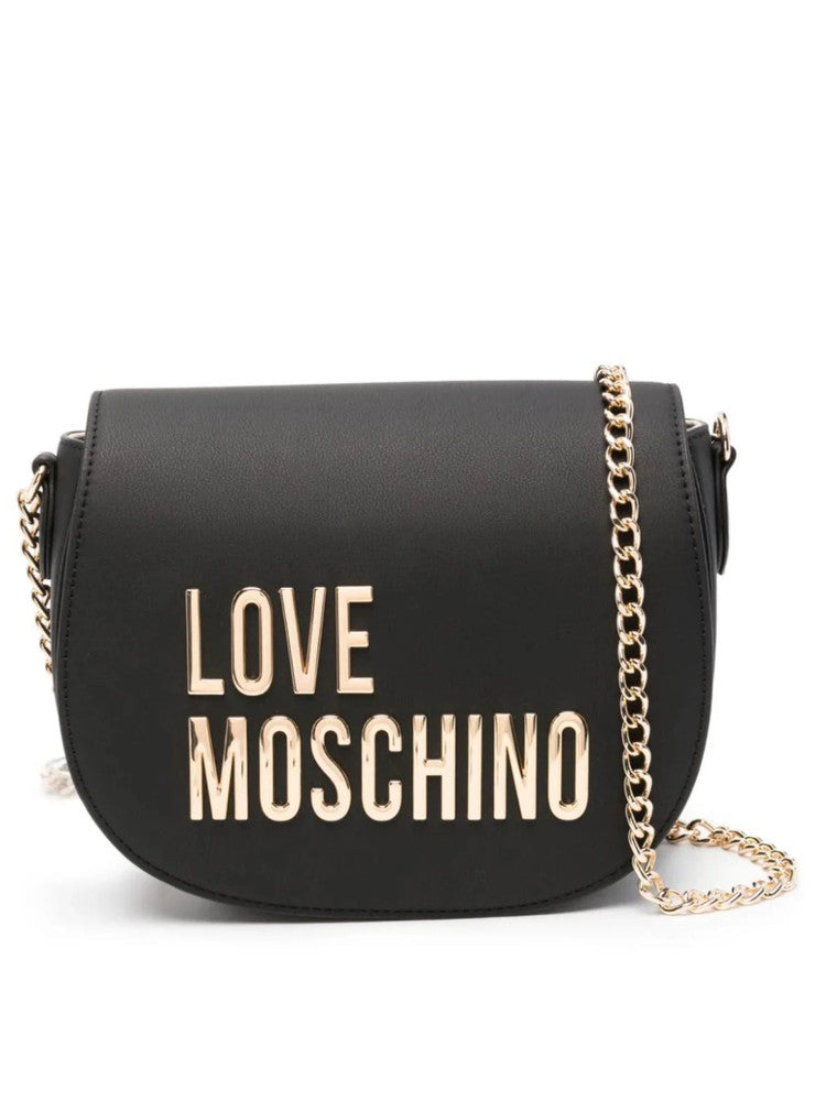 Love Moschino black bag with shoulder strap JC4194. This Moschino women's bag has a shoulder strap with chain, a shoulder pad, an automatic button closure and the maxi brand logo on the front in a contrasting colour. Inside this Love Moschino shoulder bag we find a single large compartment.