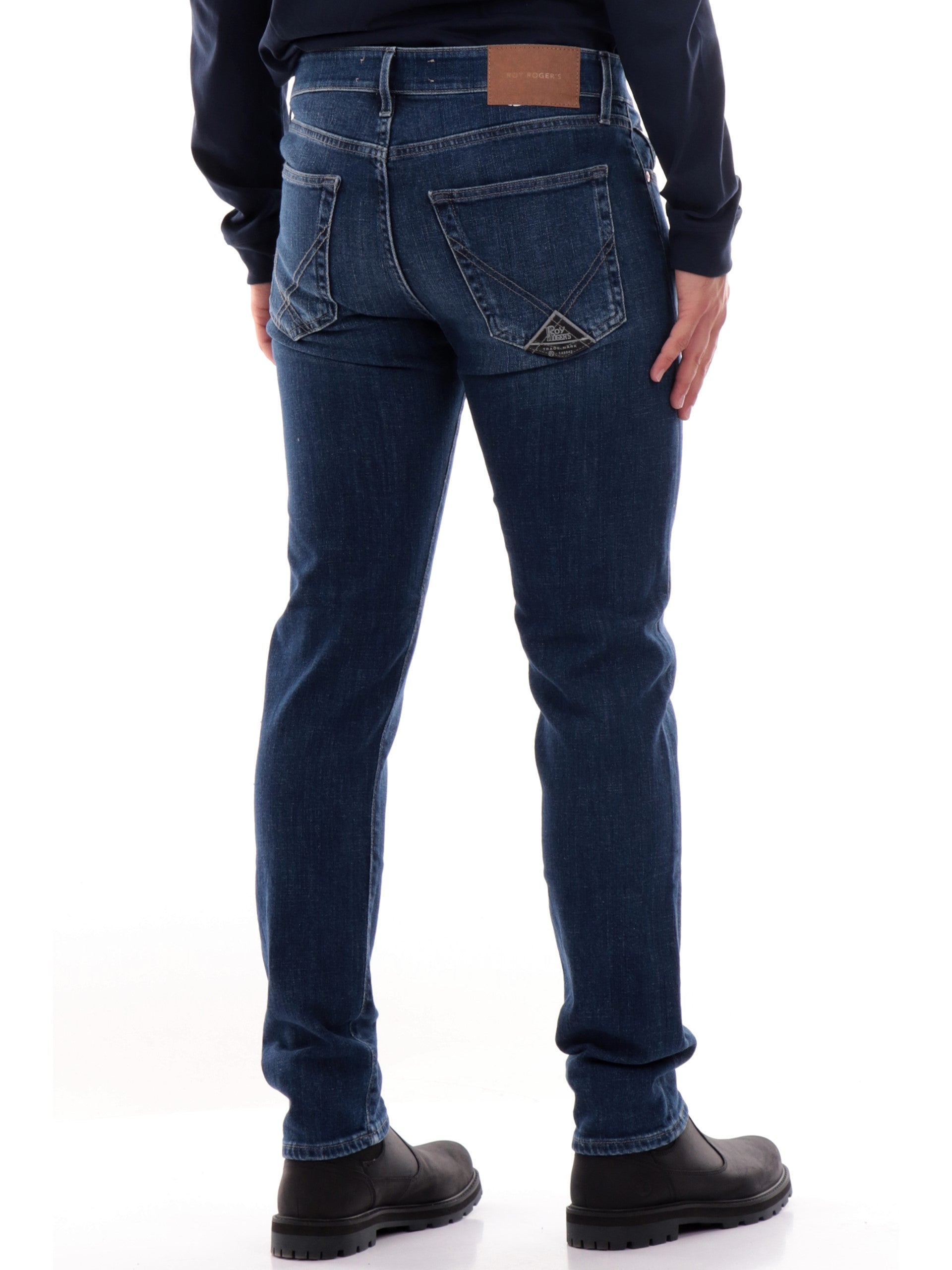 Jeans Roy Rogers blu da uomo 517 RU075D643211, realizzati in tessuto morbido ed elasticizzato. Questi pantaloni jeans Roy Rogers hanno la chiusura con bottone logato e zip, cinque comode tasche per portare con te tutto quello che desideri e il patch del brand ricamato sul lato sinistro.