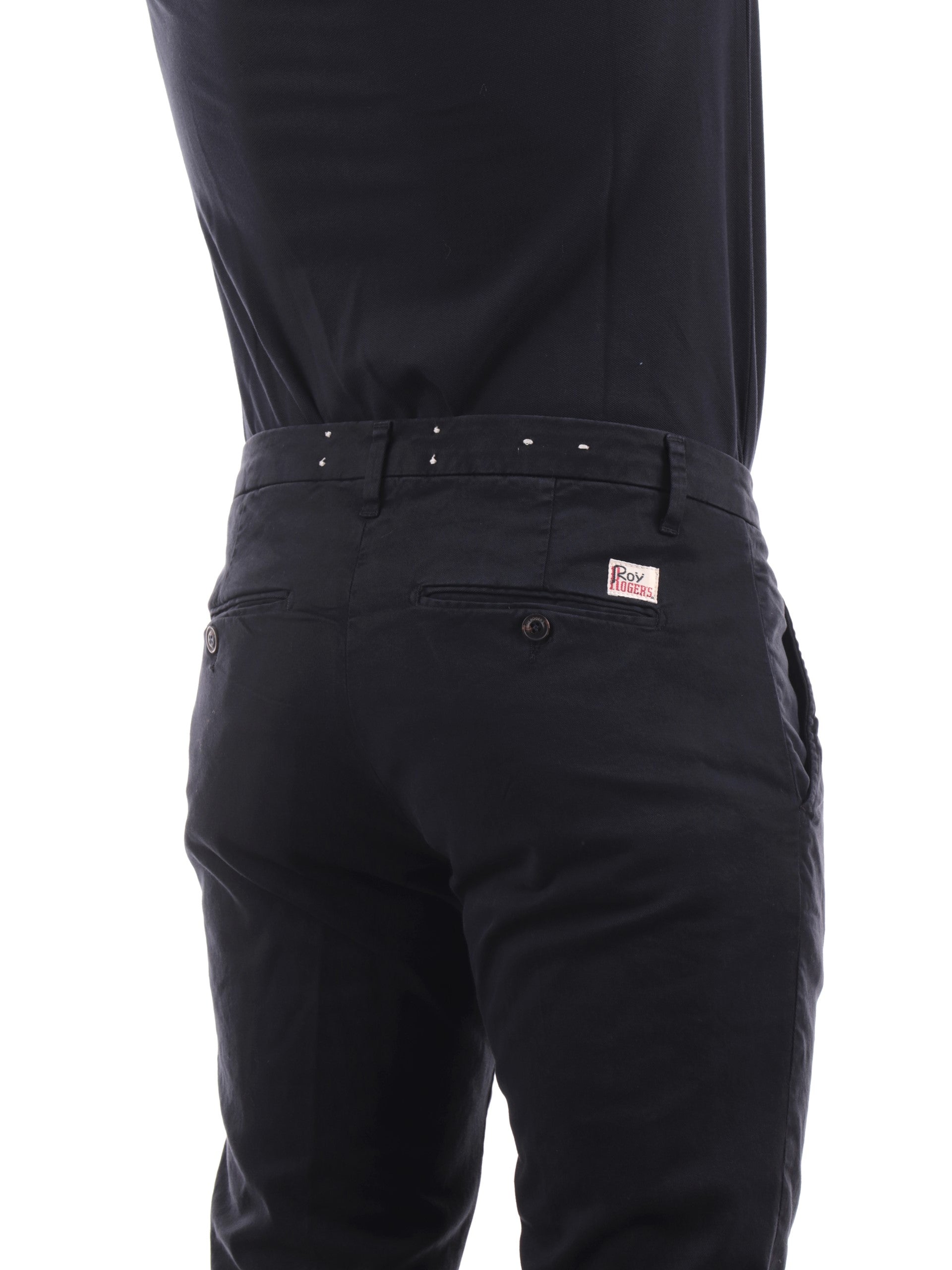 Pantaloni Roy Rogers Blu da Uomo con vestibilità slim fit. Questi pantaloni uomo chino blu sono caratterizzati da un morbido cotone elasticizzato che dona a questi pantaloni Chino Uomo il massimo della comodità e comfort.