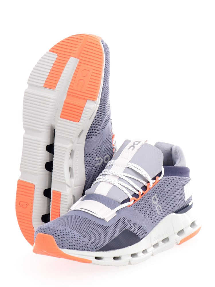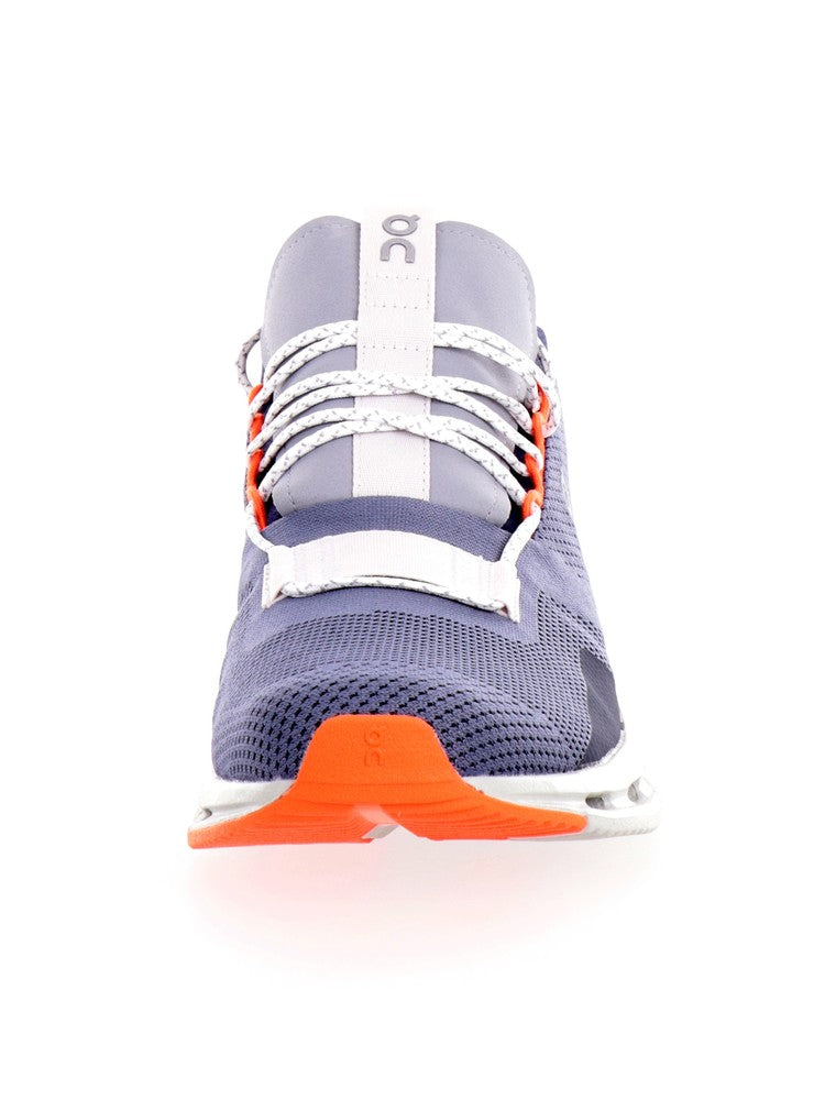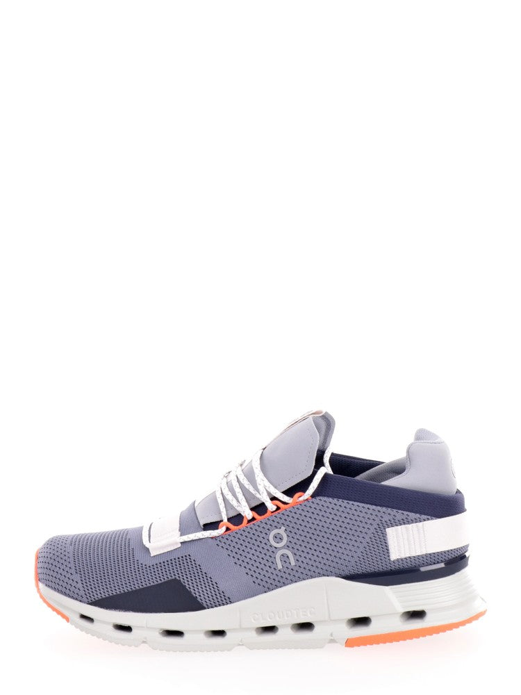 On gray and blue men's shoes Cloudnova 2698315098. These gray On running shoes have an upper made of breathable fabric, a lace closure, a perforated rubber sole to maximize your performance and an undersole with a non-slip texture to ensure changes of direction clean and effective. Rubberized patch on both sides.
