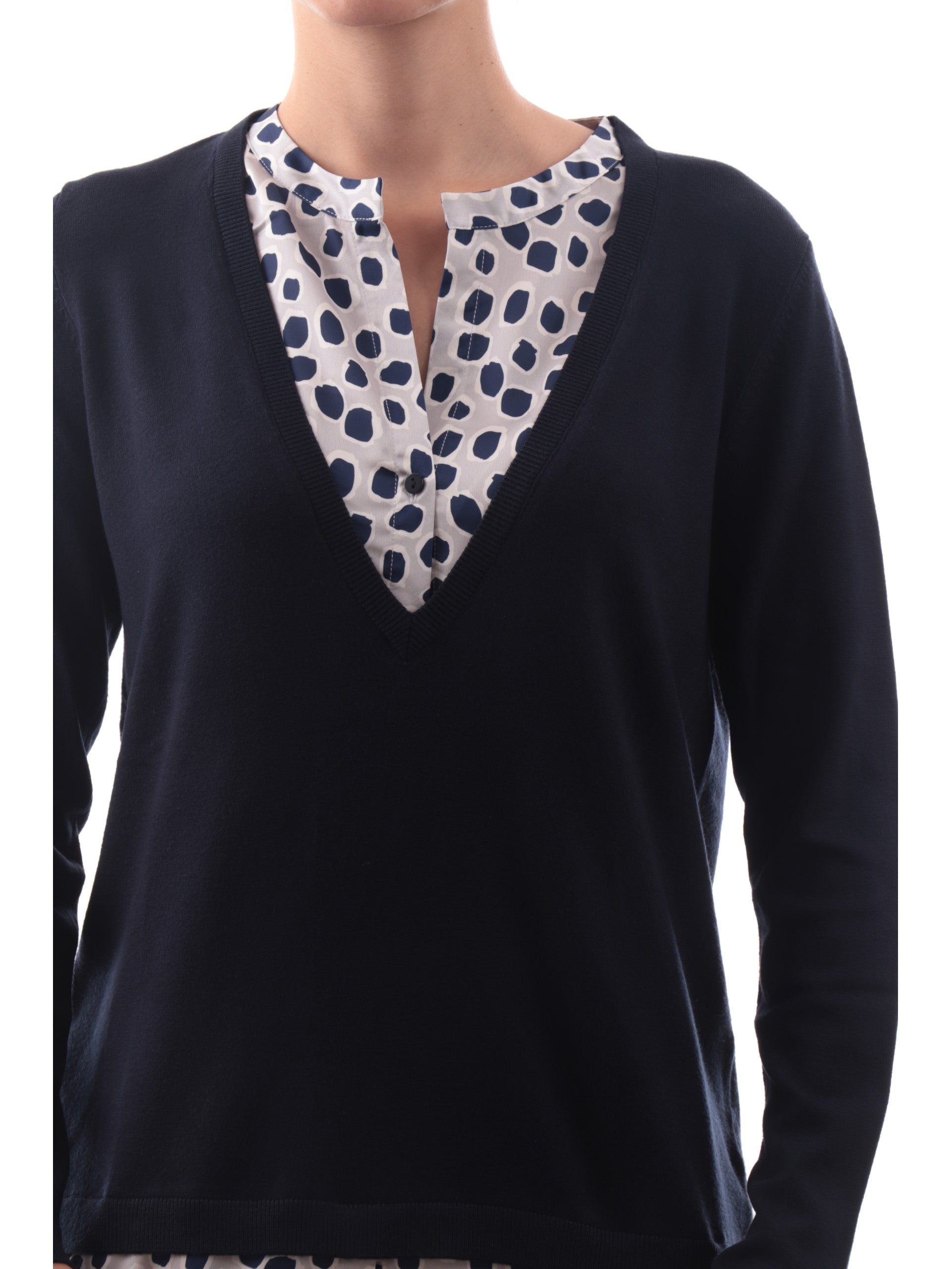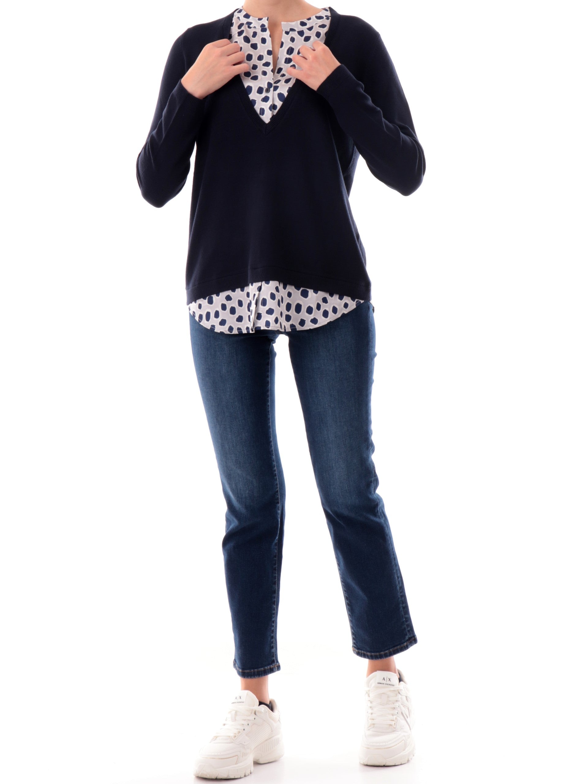 Maglione Anis blu da donna inserto serafino stampa pois 255W1450