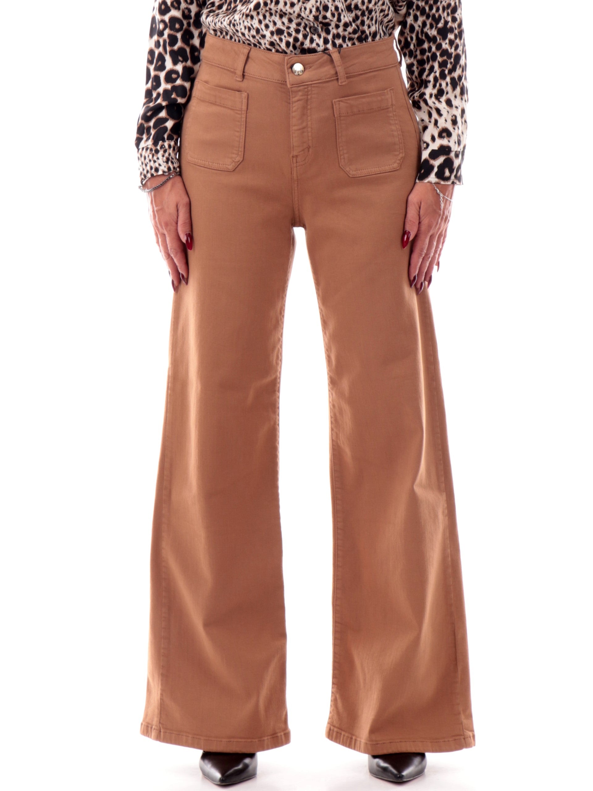 Pantaloni marroni a palazzo Emme Marella da donna SAMOVAR. Questi pantaloni marroni Emme Marella palazzo hanno la chiusura con bottone oro più zip, due tasche laterali aperte. Le linee di questo jeans palazzo valorizzano le forme e le linee slanciano la figura. Il tessuto leggero e morbido è perfetto per ogni stagione.