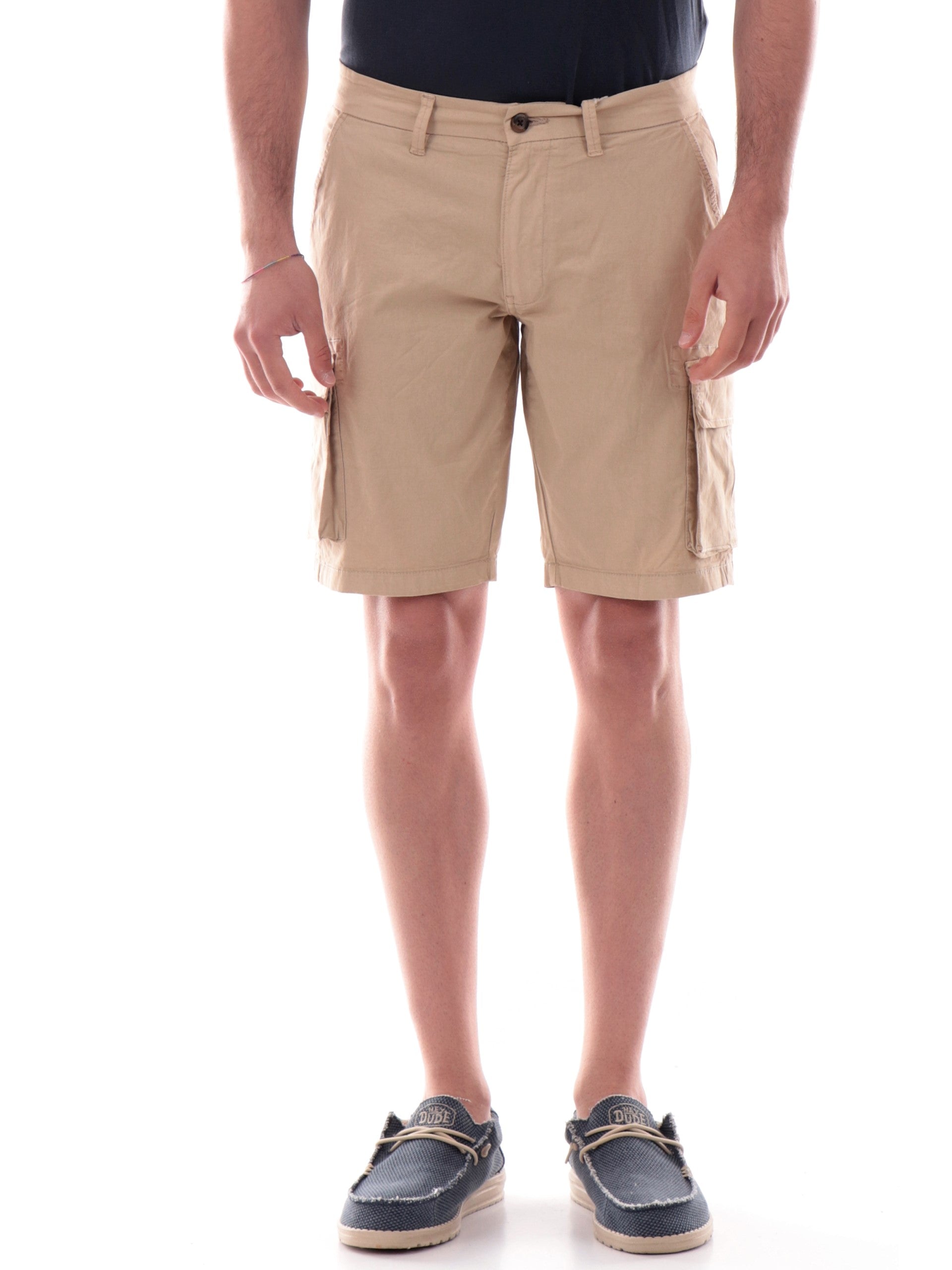 Bermuda cargo Impure beige da uomo DANNY, realizzati in cotone. Questi pantaloncini Impure beige hanno la chiusura con bottone più zip, due tasche laterali aperte con taglio obliquo, due tasche posteriori a filo e due tasconi cargo.
