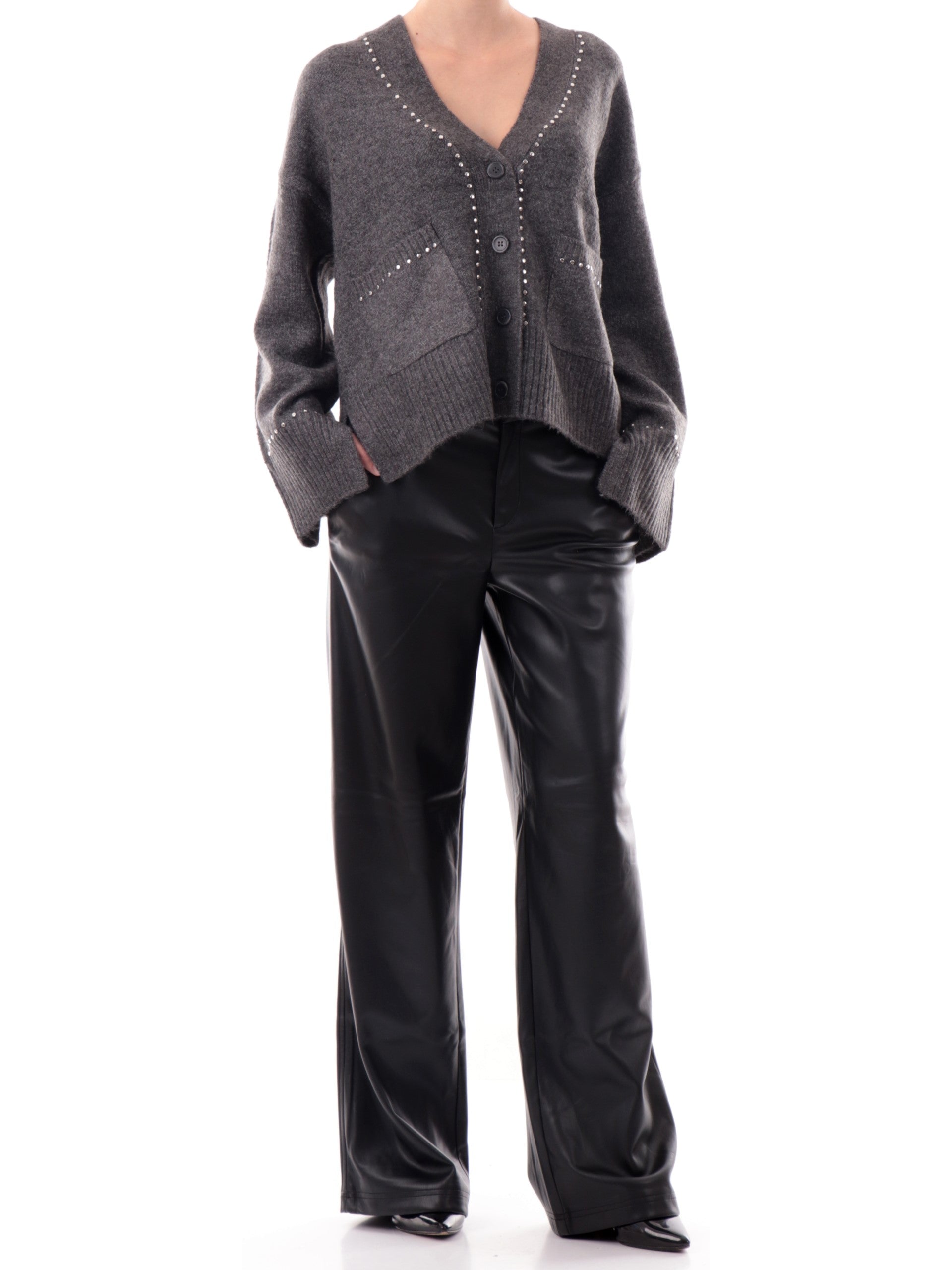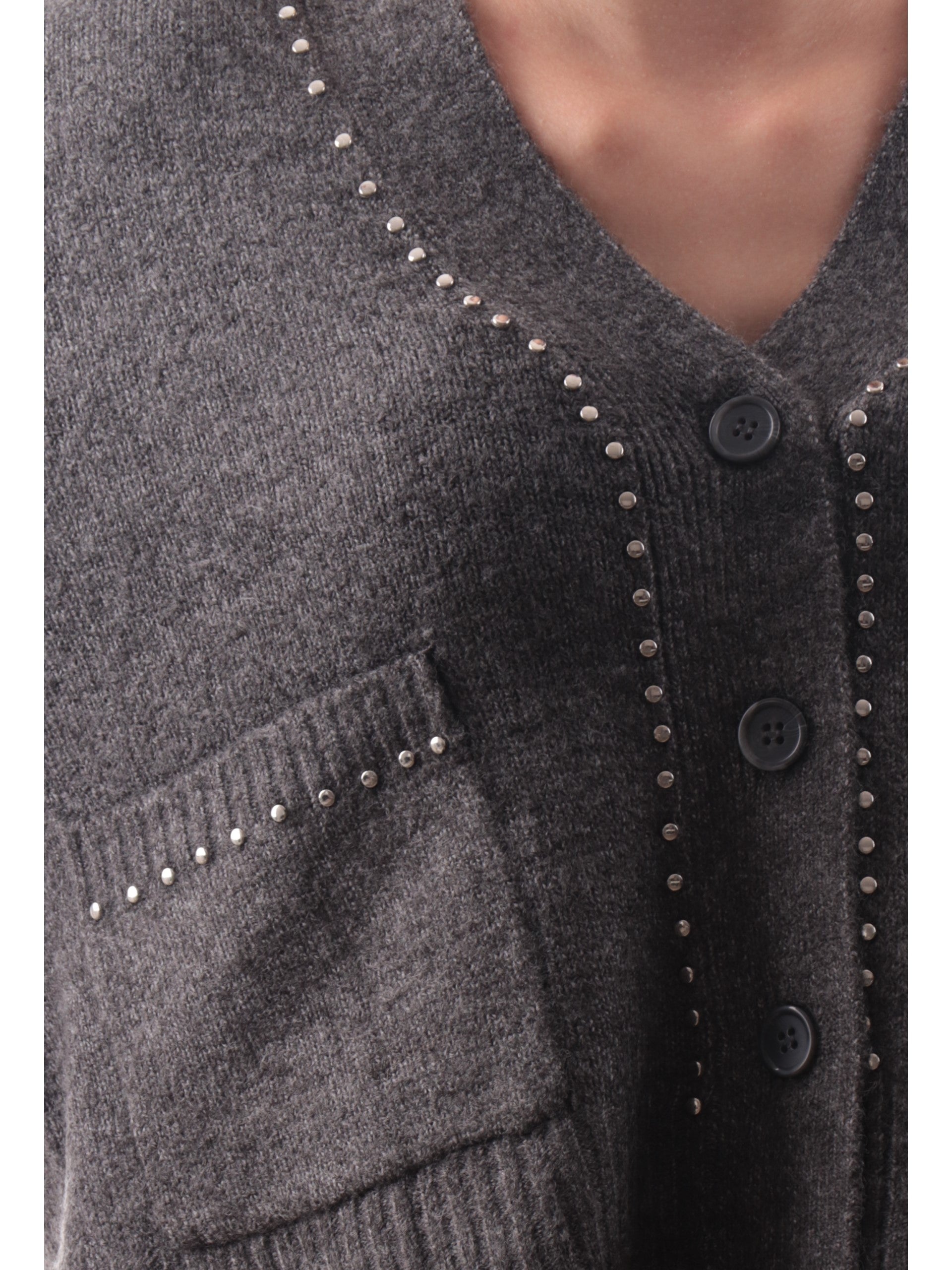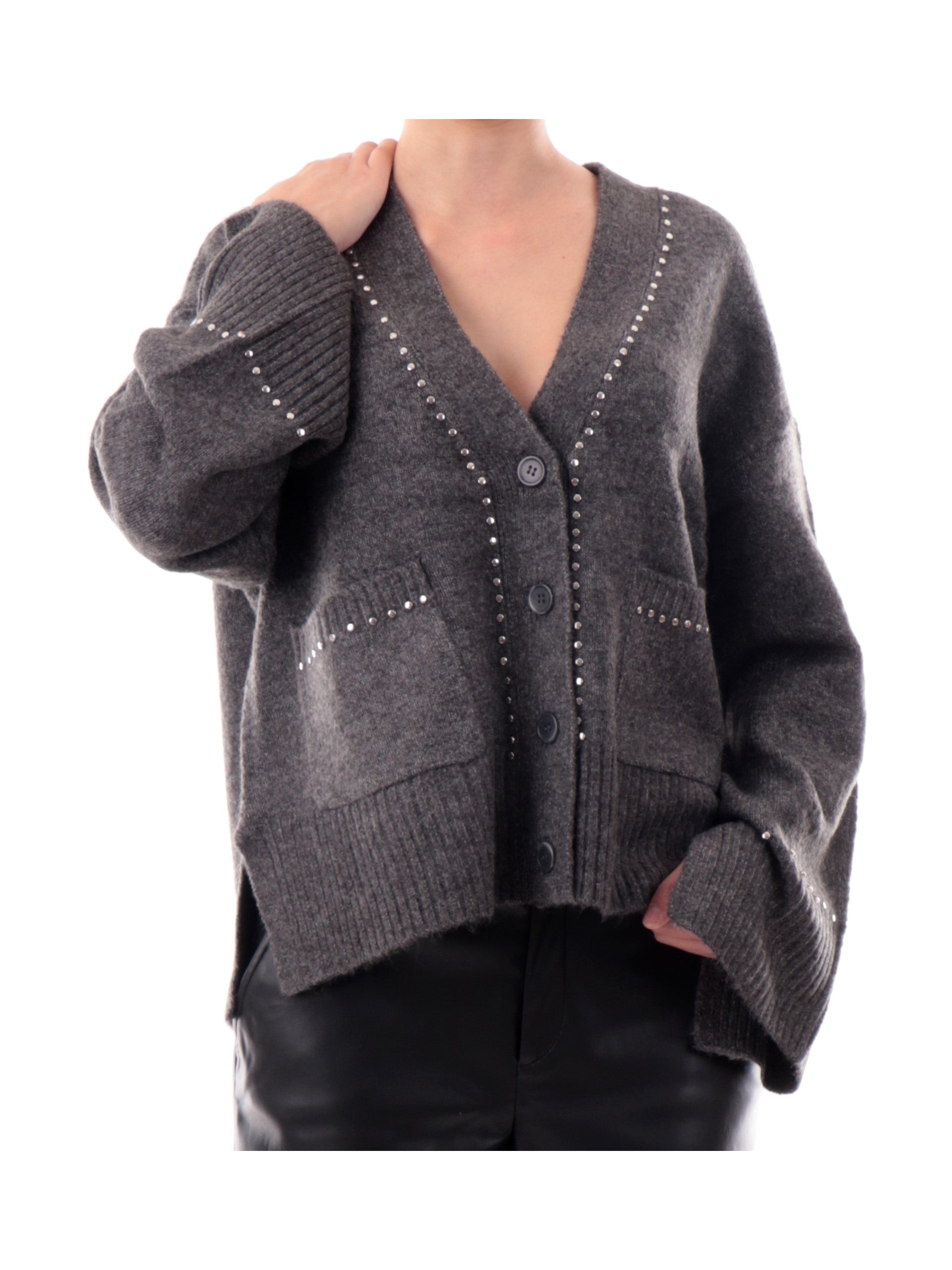 Cardigan Only grigio da donna con borchie argento e tasche 15350625MEDGMEL