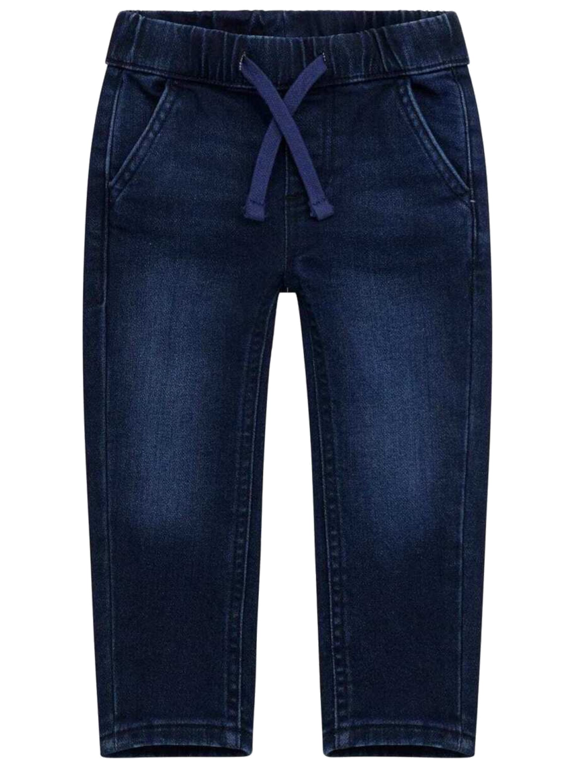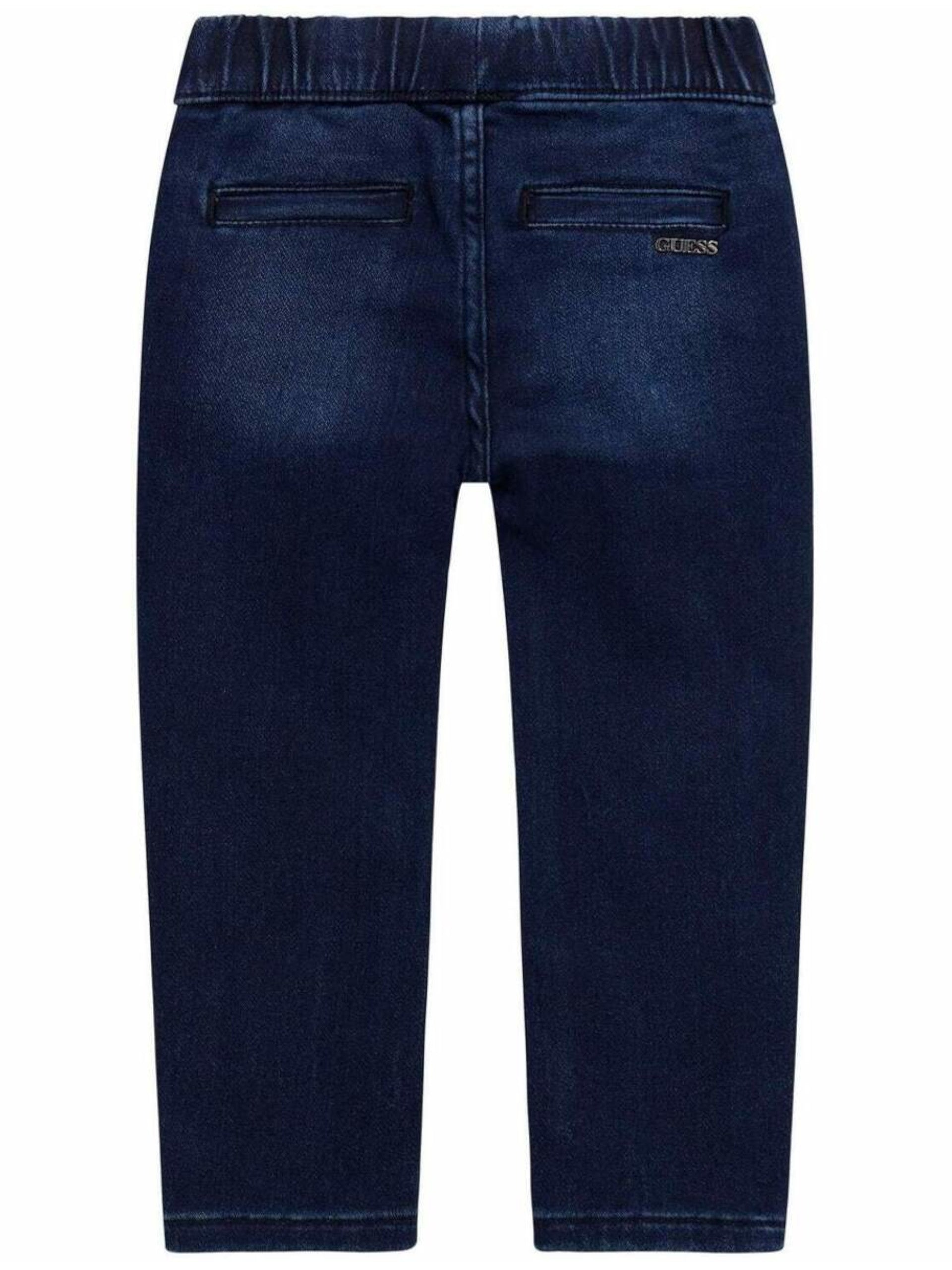 Jeans Guess blu da bambino Denim Chino Slim N5RA05D5FQ0. Questi pantaloni jeans Guess blu hanno la banda elastica sul punto vita regolabile con laccetti, due tasche laterali aperte con taglio obliquoe due tasche posteriori a filo.