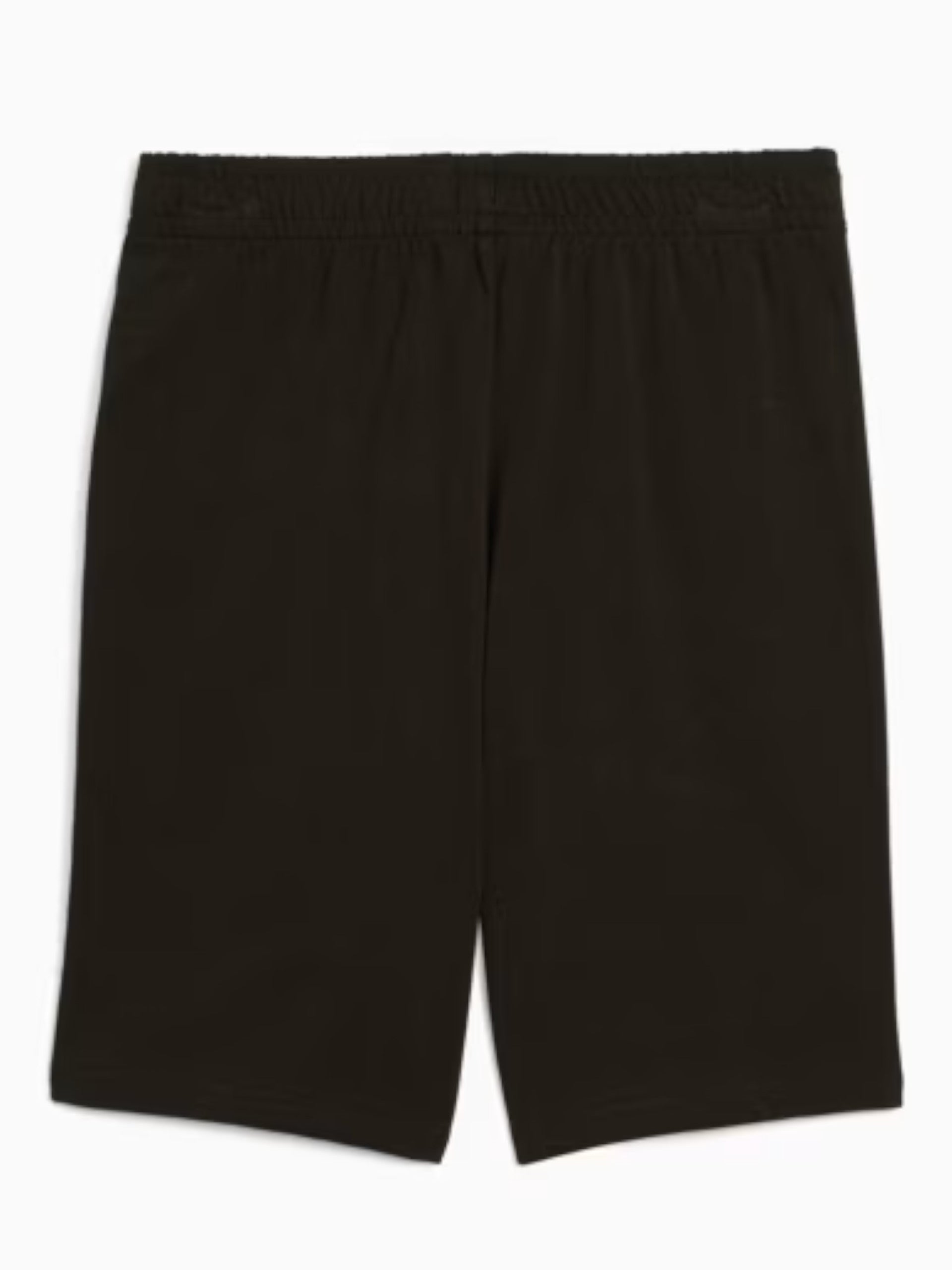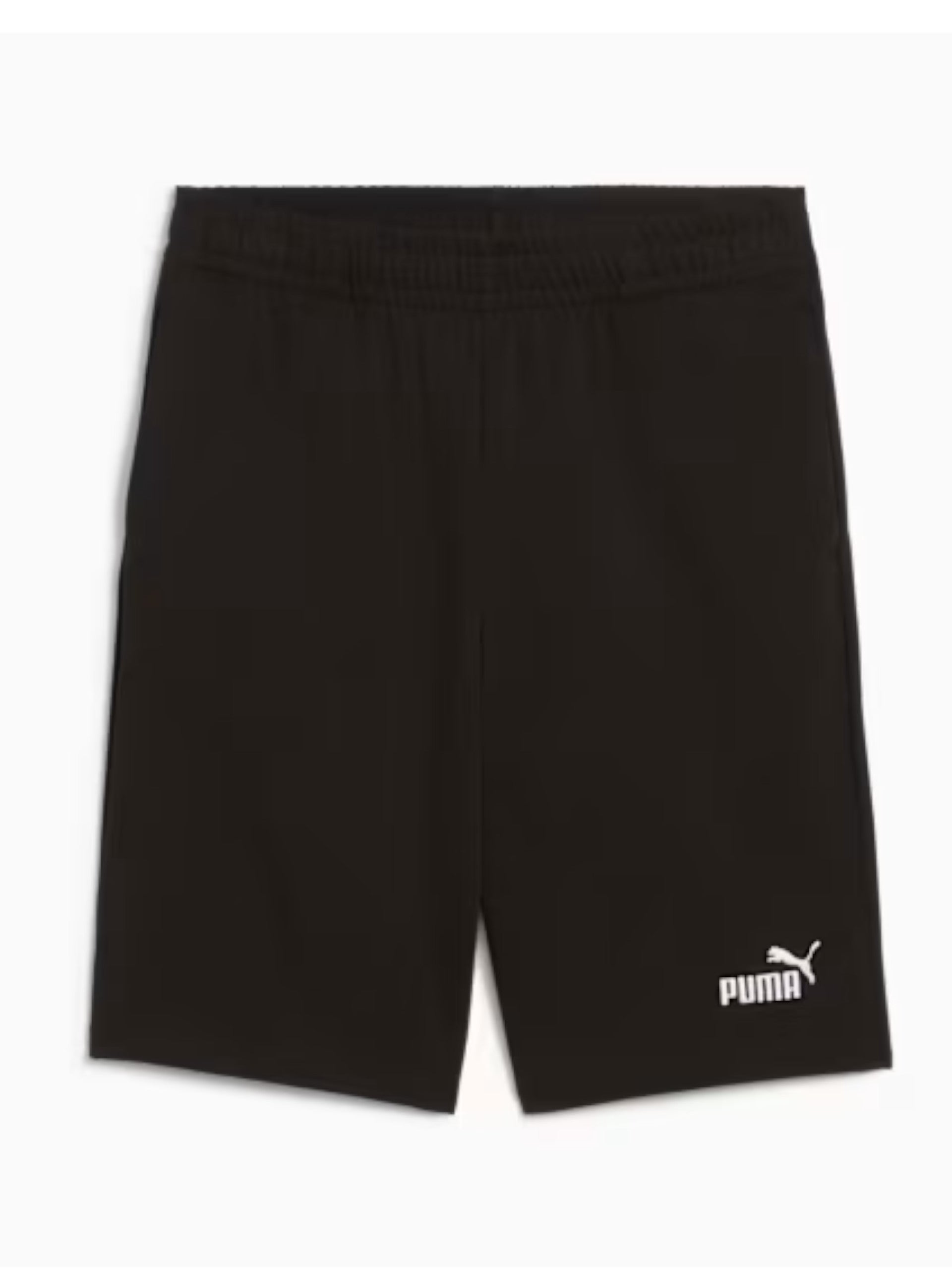 Pantaloncini Puma neri da bambino con logo Puma ricamato 684919, realizzati in 100% puro cotone. Questi bermuda Puma neri hanno la banda elastica sul punto vita regolabile con laccetti, due tasche laterali aperte e il logo Puma ricamato sul fondo.