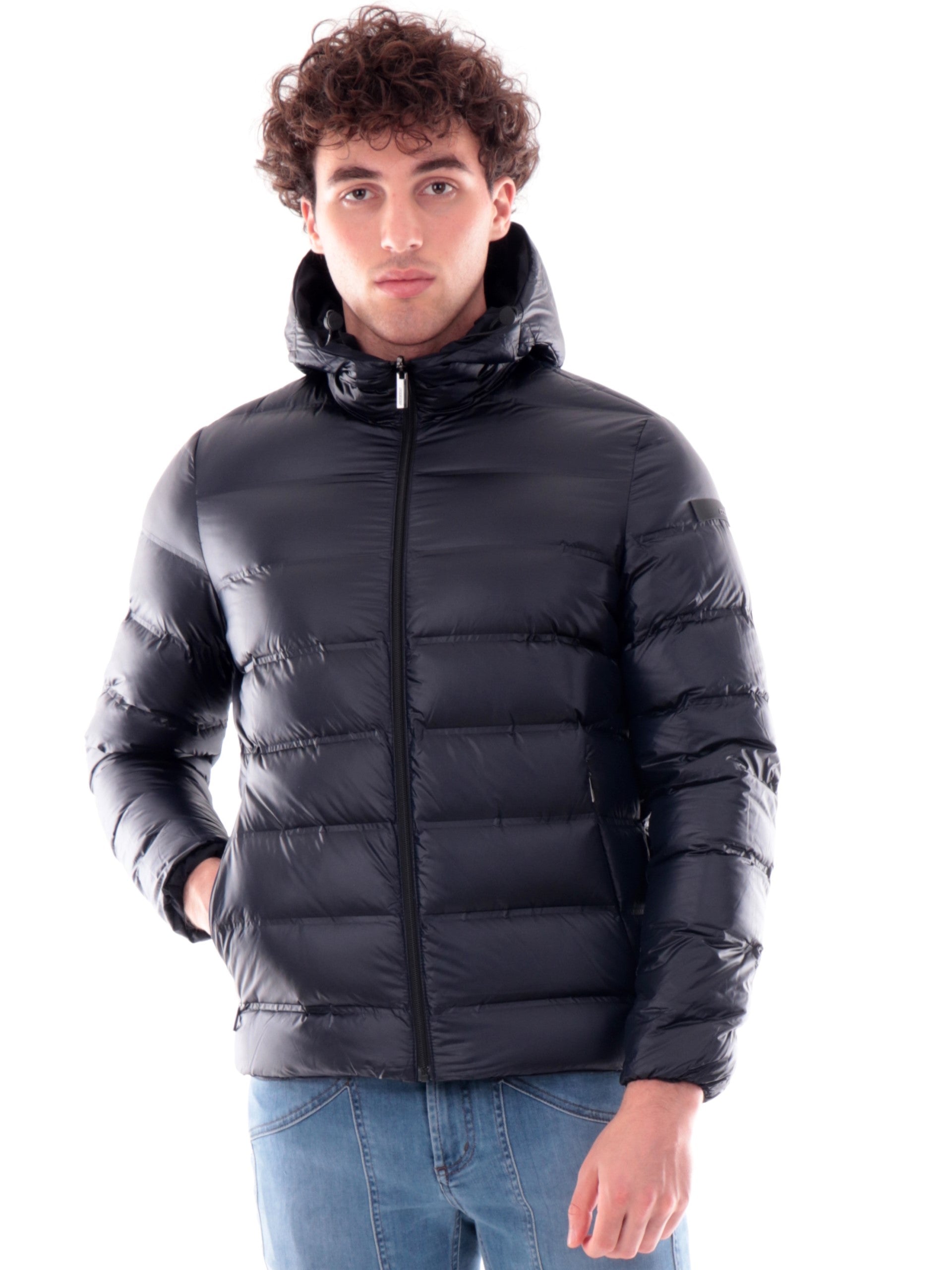 Giubbino RRD blu da uomo Montecristo reversibile. Questo piumino RRD da uomo blu reversibile è realizzato da un tessuto tecnico ed è caratterizzato da un cappuccio fisso regolabile con lacci, la chiusura full zip, due tasche laterali con zip, il logo del brand applicato sulla manica sinistra, polsini elasticizzati e fondo regolare, Grazie alla sua reversibilità, può essere indossata in diverse circostanze adattandosi ad ogni stile e occasione. Abbiamo un tessuto tecnico liscio da un lato, tessuto trapuntato dall'altro. Questo giubbino è realizzato da un'imbottitura in piuma che lo rende ancora più caldo