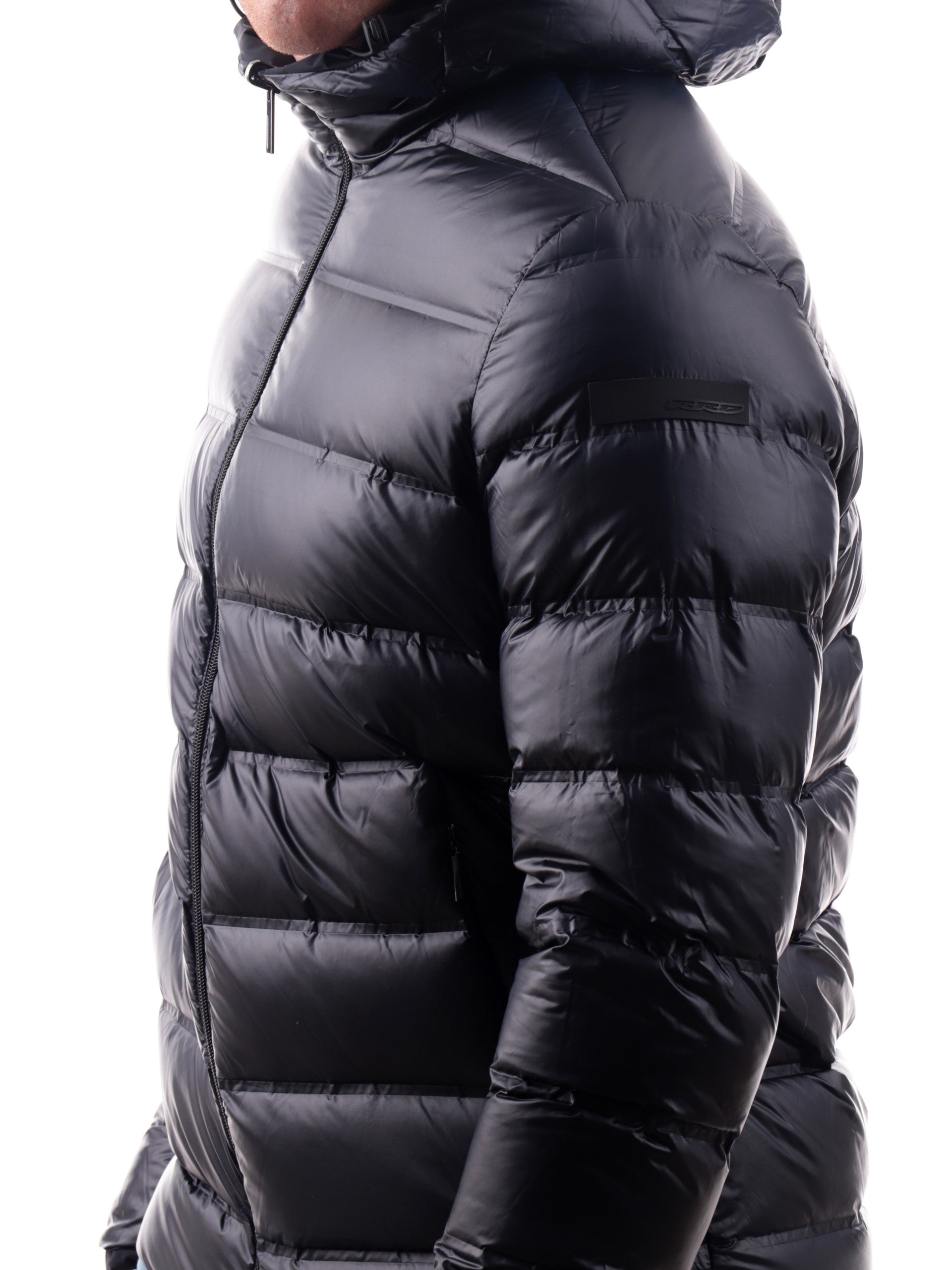 Composizione: tessuto esterno: 86% poliammide, 14% elastan; imbottitura: 90% piumino, 10% piuma