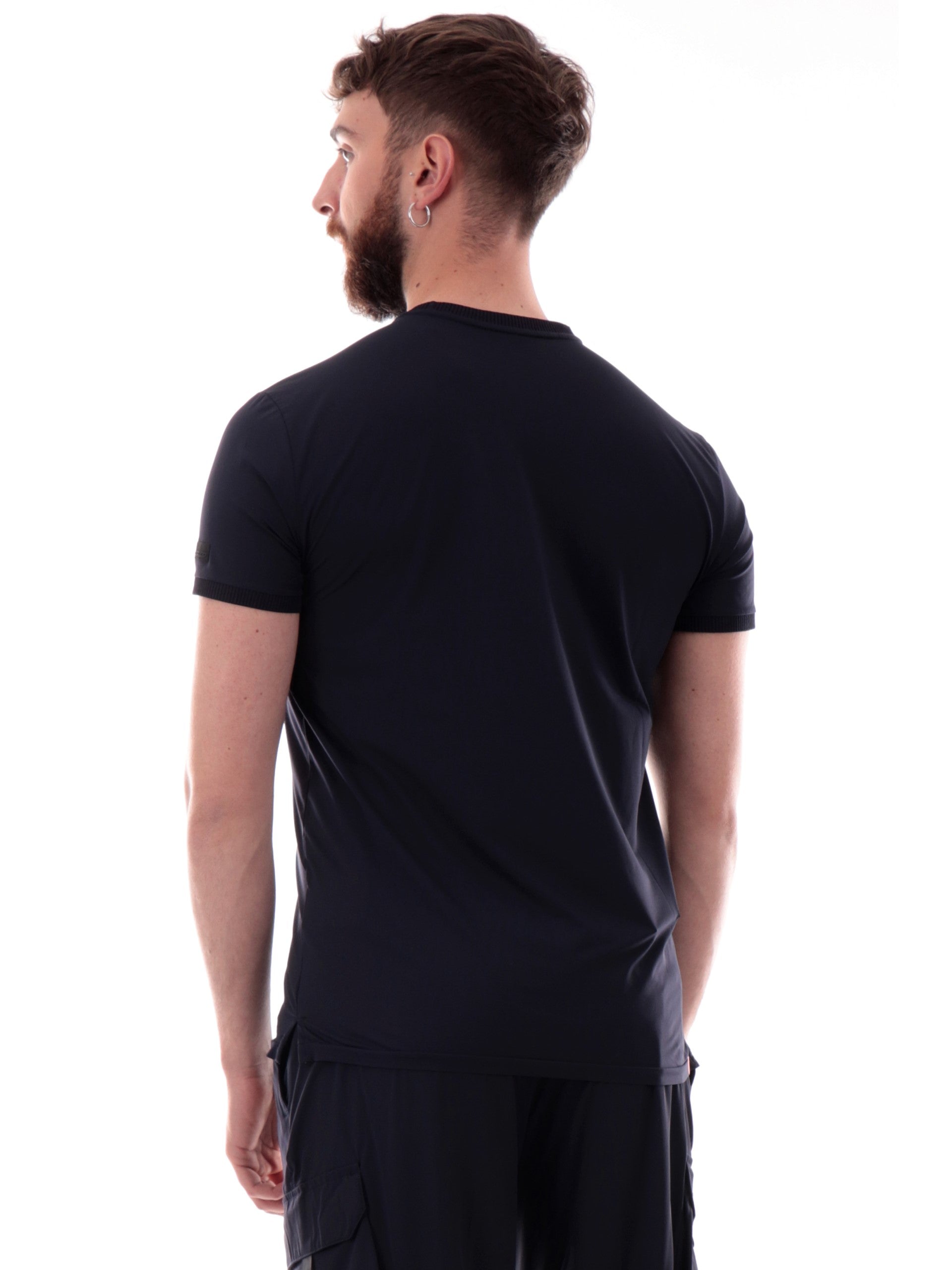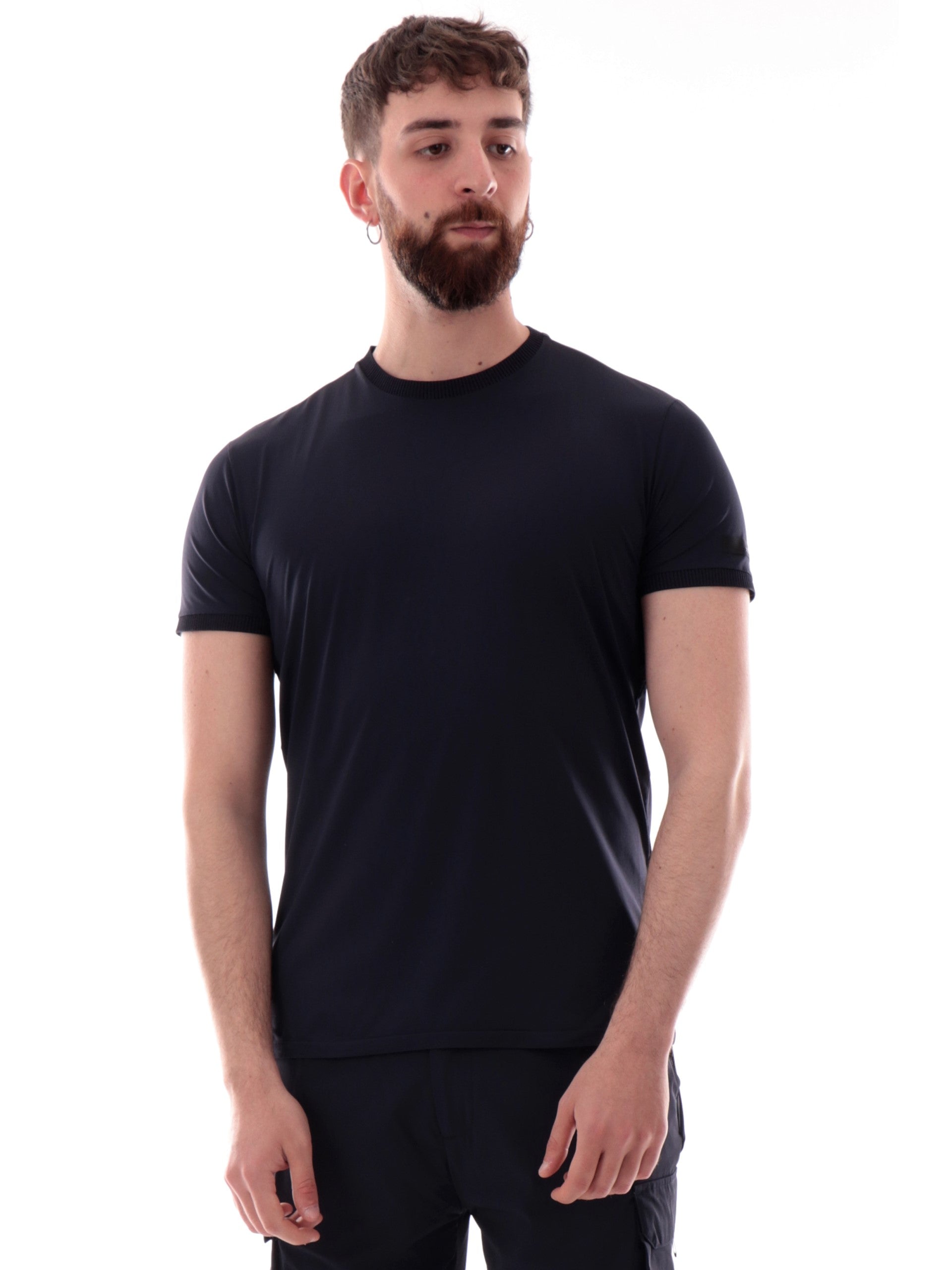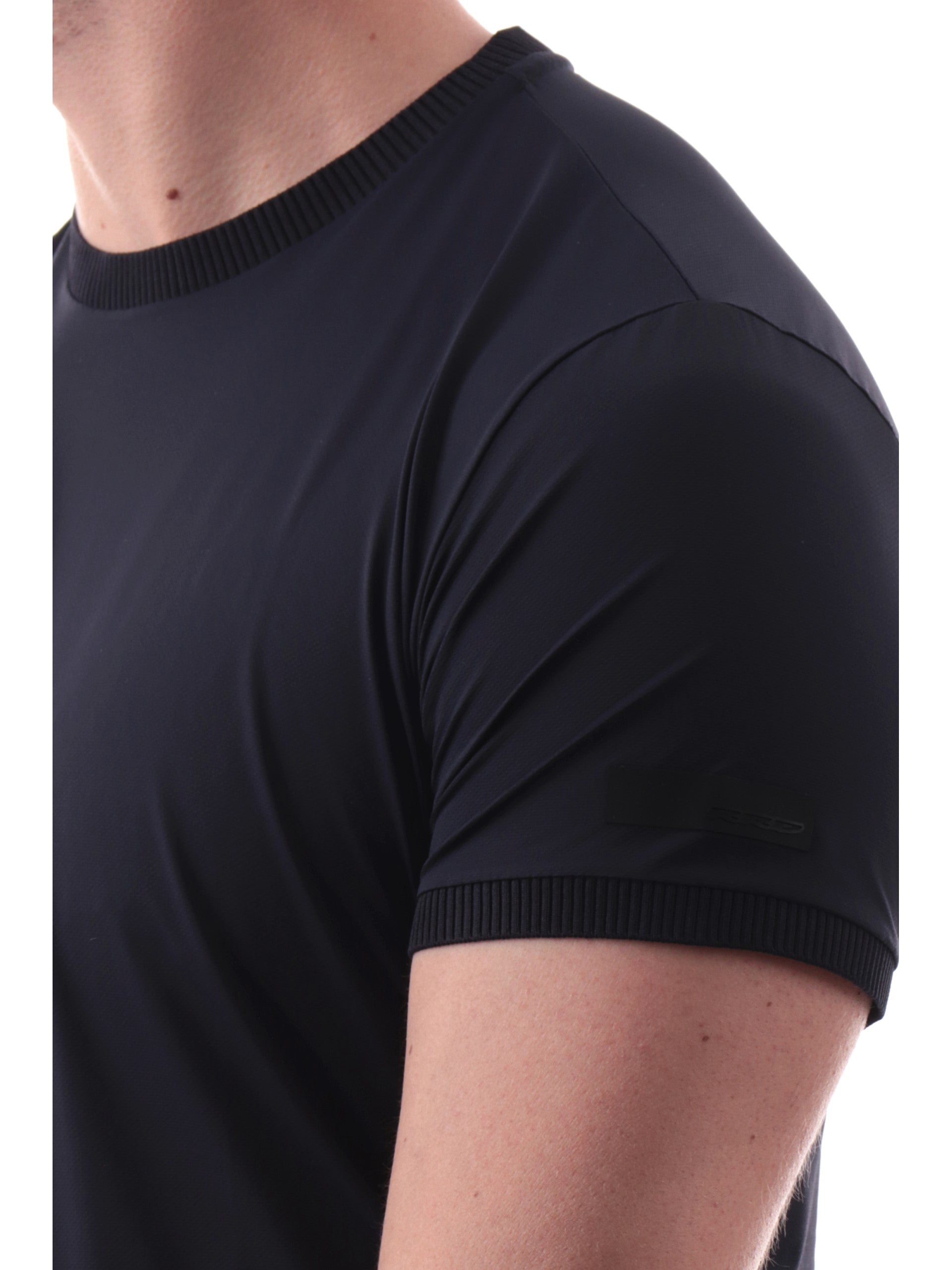 Maglia RRD blu Oxford GDY Shirty da uomo tessuto tecnico inserti a costine 25206. Questa t-shirt RRD blu girocollo ha le maniche corte, il patch RRD sulla manica sinistra e inserti a costine.