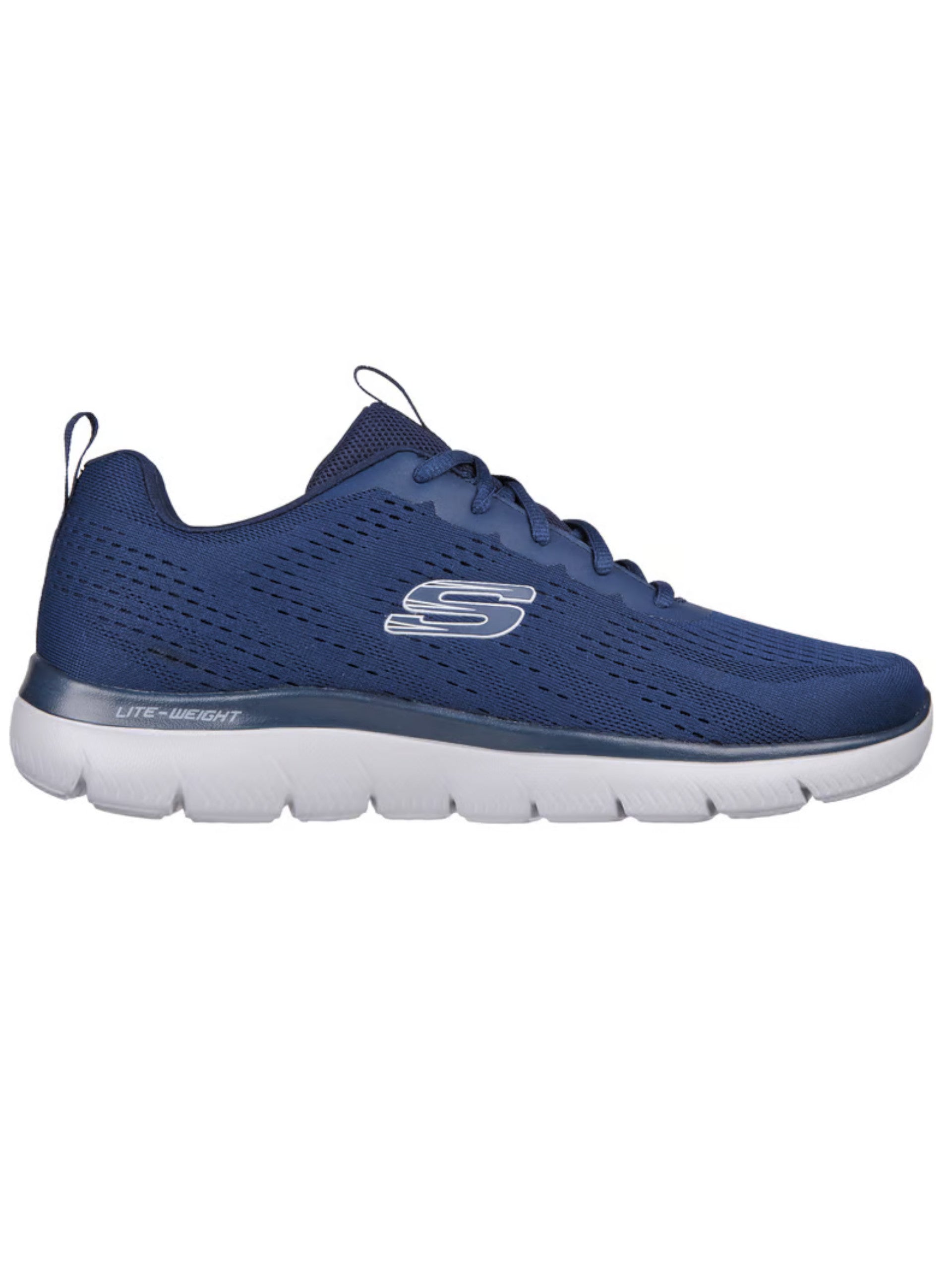 Scarpe Skechers blu e grigie Summits Torre da uomo 232395. Queste scarpe Skechers blu hanno la tomaia in tessuto traspirante, la chiusura con lacci, la suola in gomma con tecnologia ArchFit che garantisce un corretto sostegno dell'arco plantare ed il sottosuola antiscivolo che dona maggiore grip su tutte le superfici.