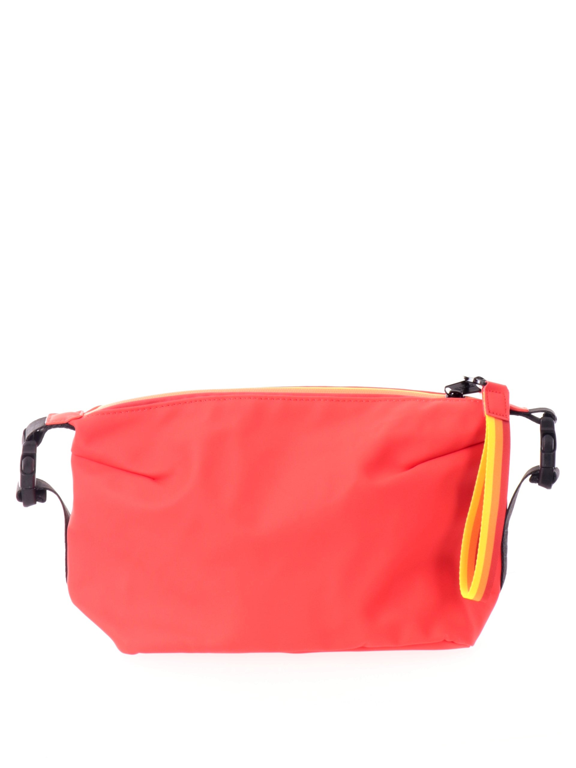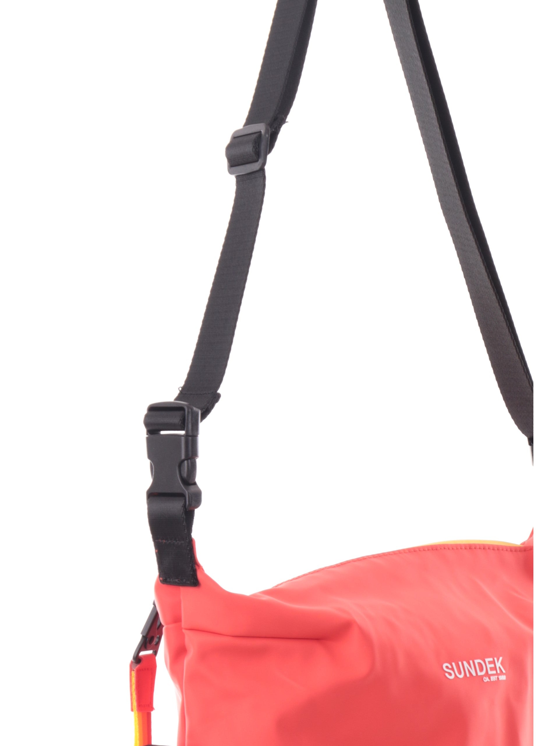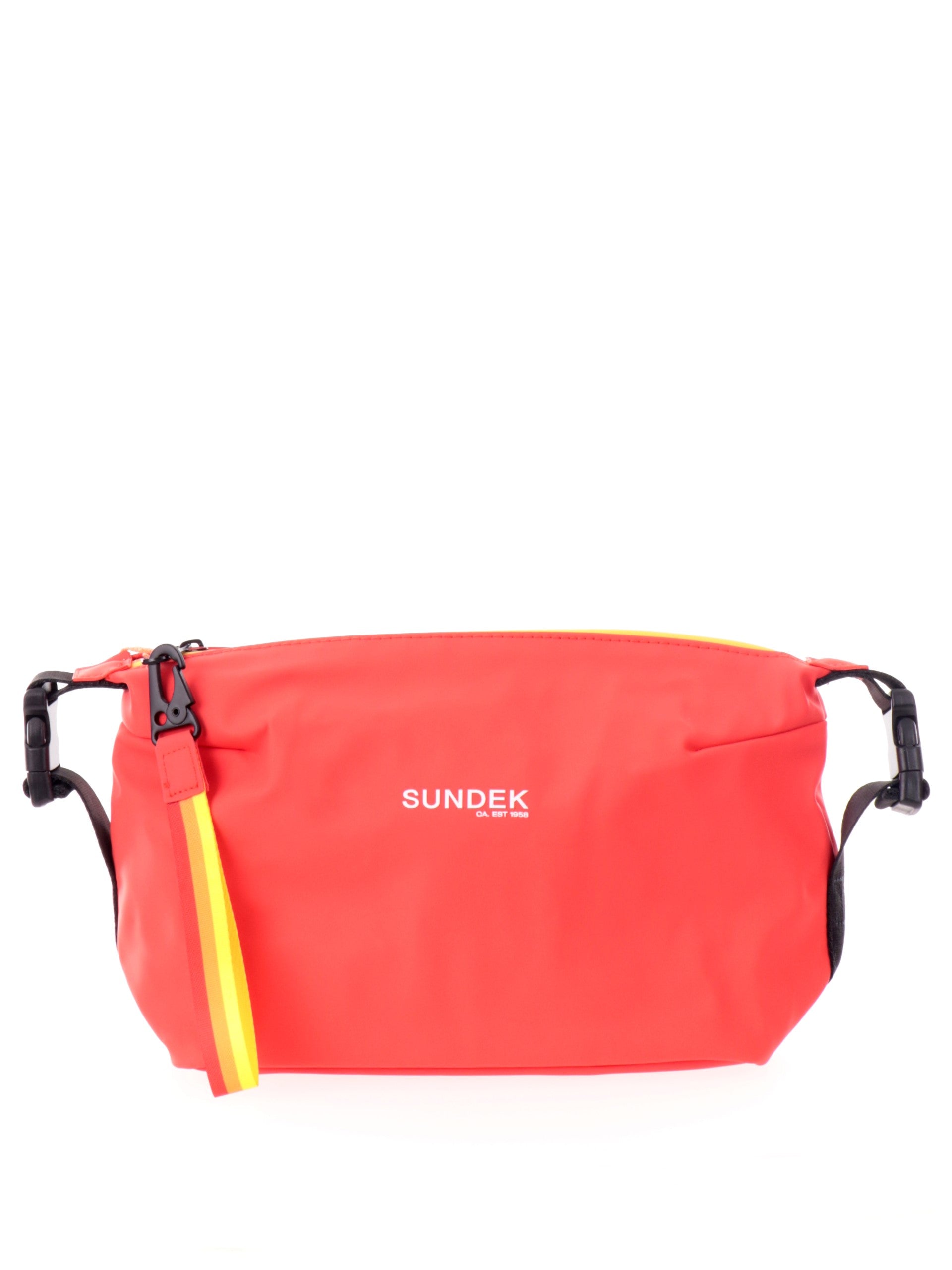 Beauty Case Sundek rosso waterproof con logo stampato AM235ABPY600 . Questa pochette Sundek rossa ha la chiusura full zip centrale multicolore, la tracolla rimovibile e regolabile, due manici laterali con gancio e il logo Sundek stampato sul davanti. All'interno di questa borsa mare Sundek troviamo un unico grande scomparto.