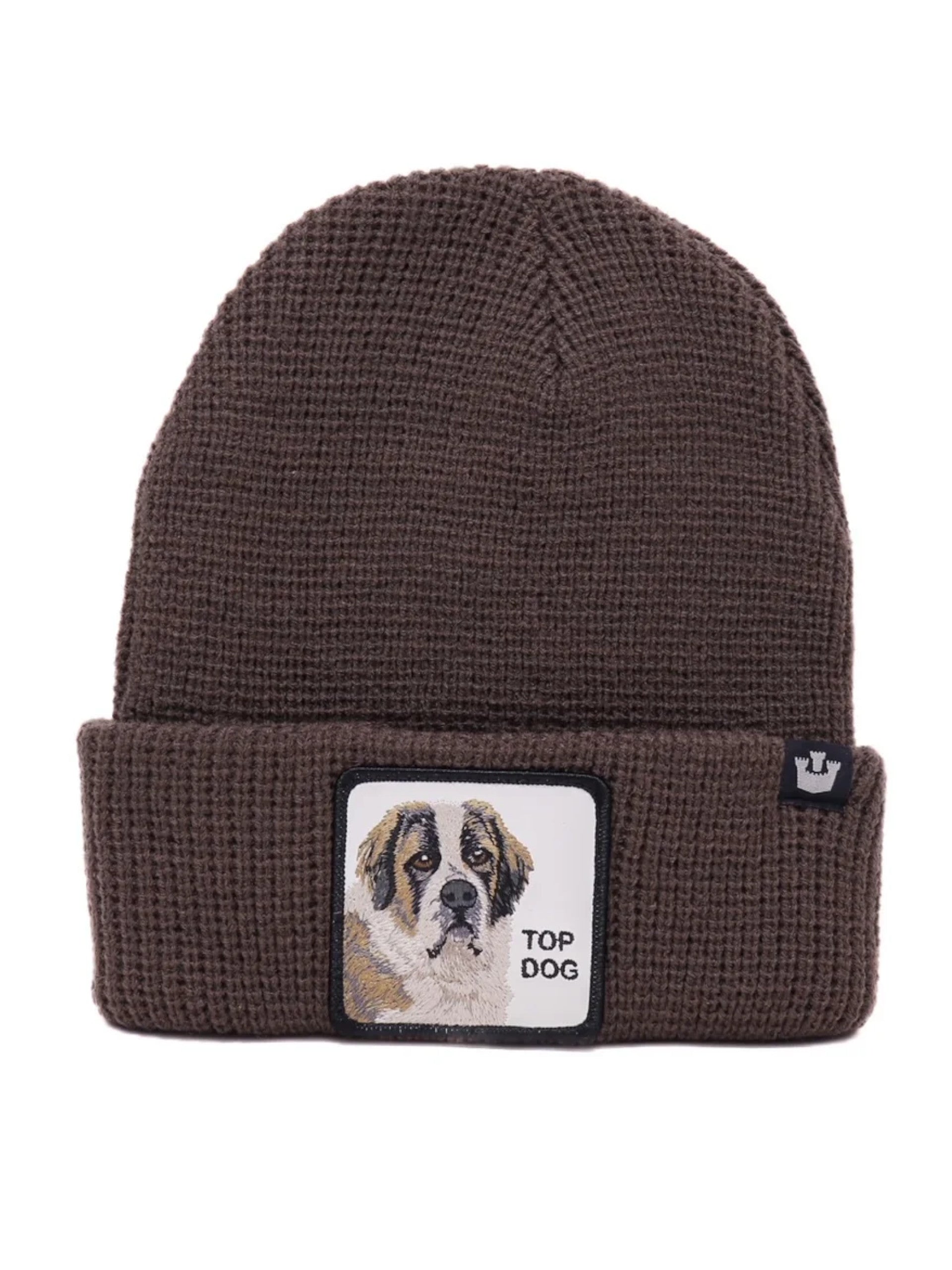 Cappello Goorin Bros Top Dog marrone con risvolto 1071928. Questo berretto Goorin Bros marrone ha la stampa Top Dog frontale sul risvolto, il patch del brand applicato sul davanti lato sinistro ed è perfetto per la stagione Autunno/Inverno.