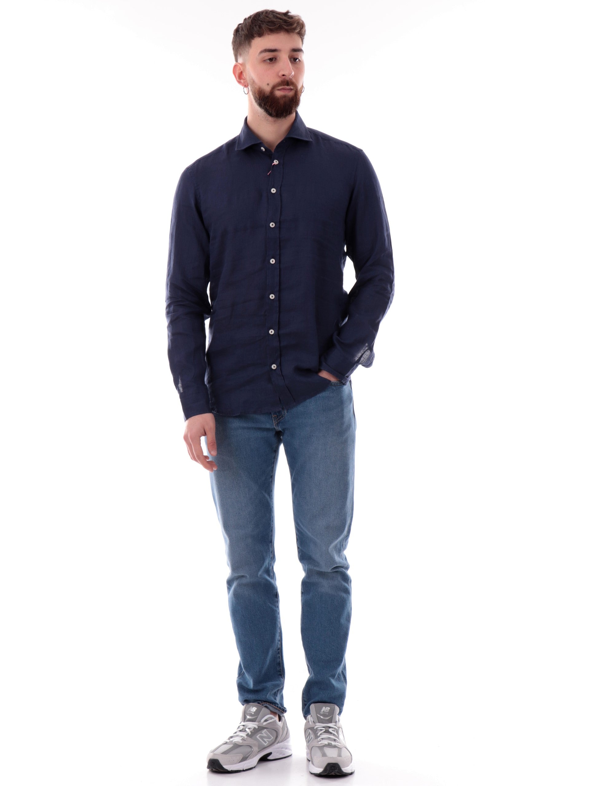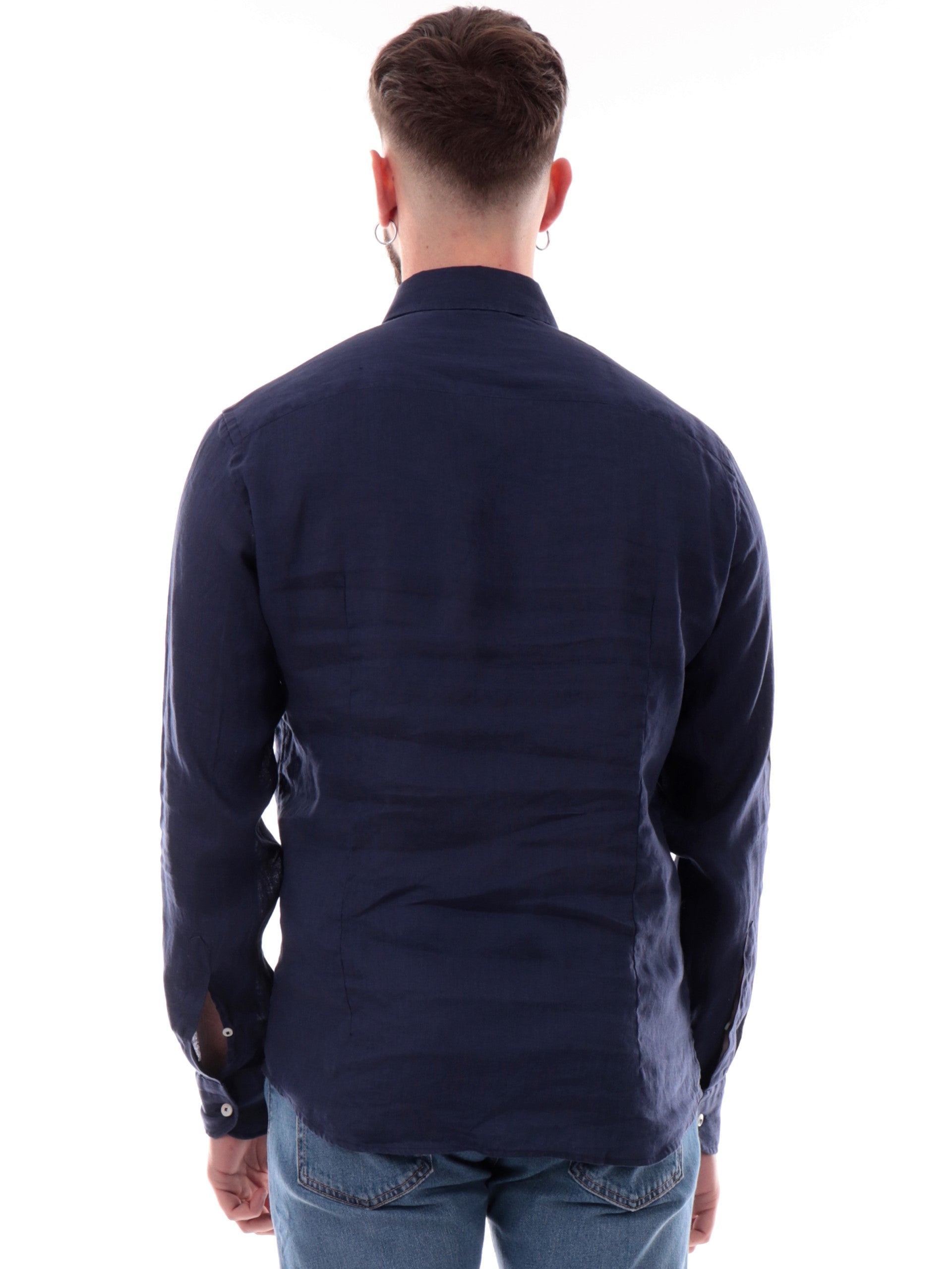 Camicia Bastoncino blu 100% lino da uomo maniche lunghe B05023