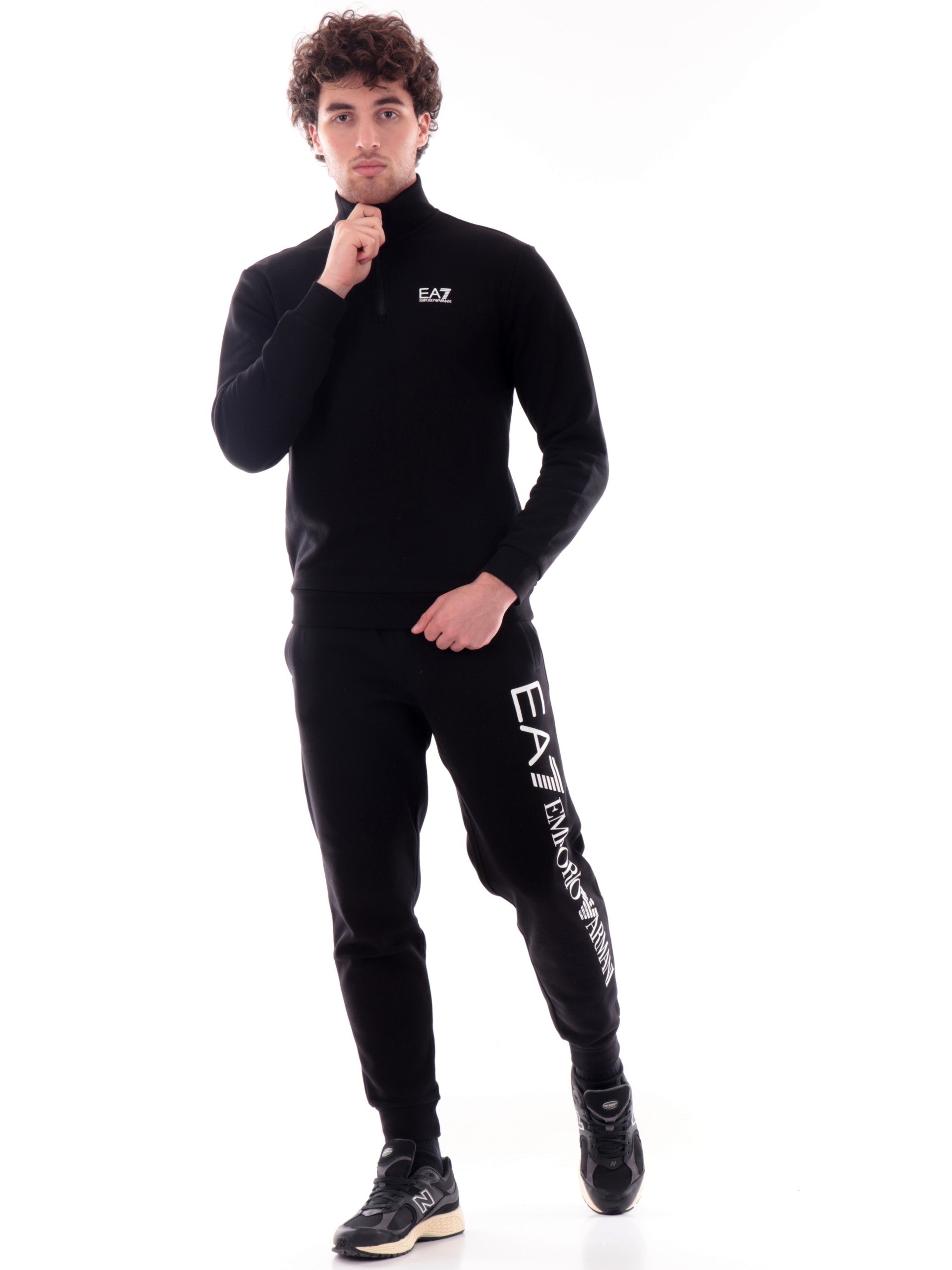 Felpa nera a colloalto mezza zip EA7 da uomo felpata 8NPM35PJVTZ1200