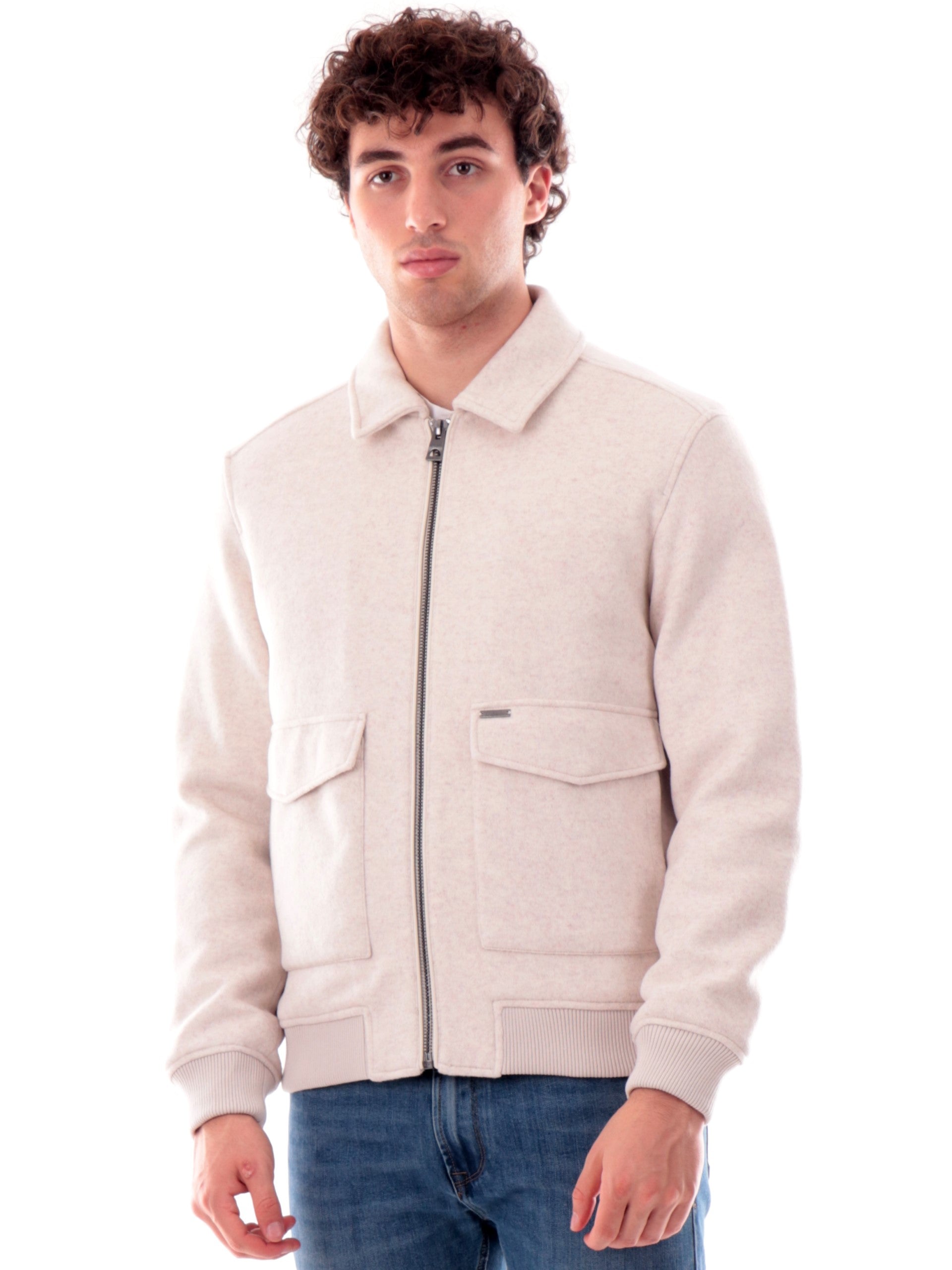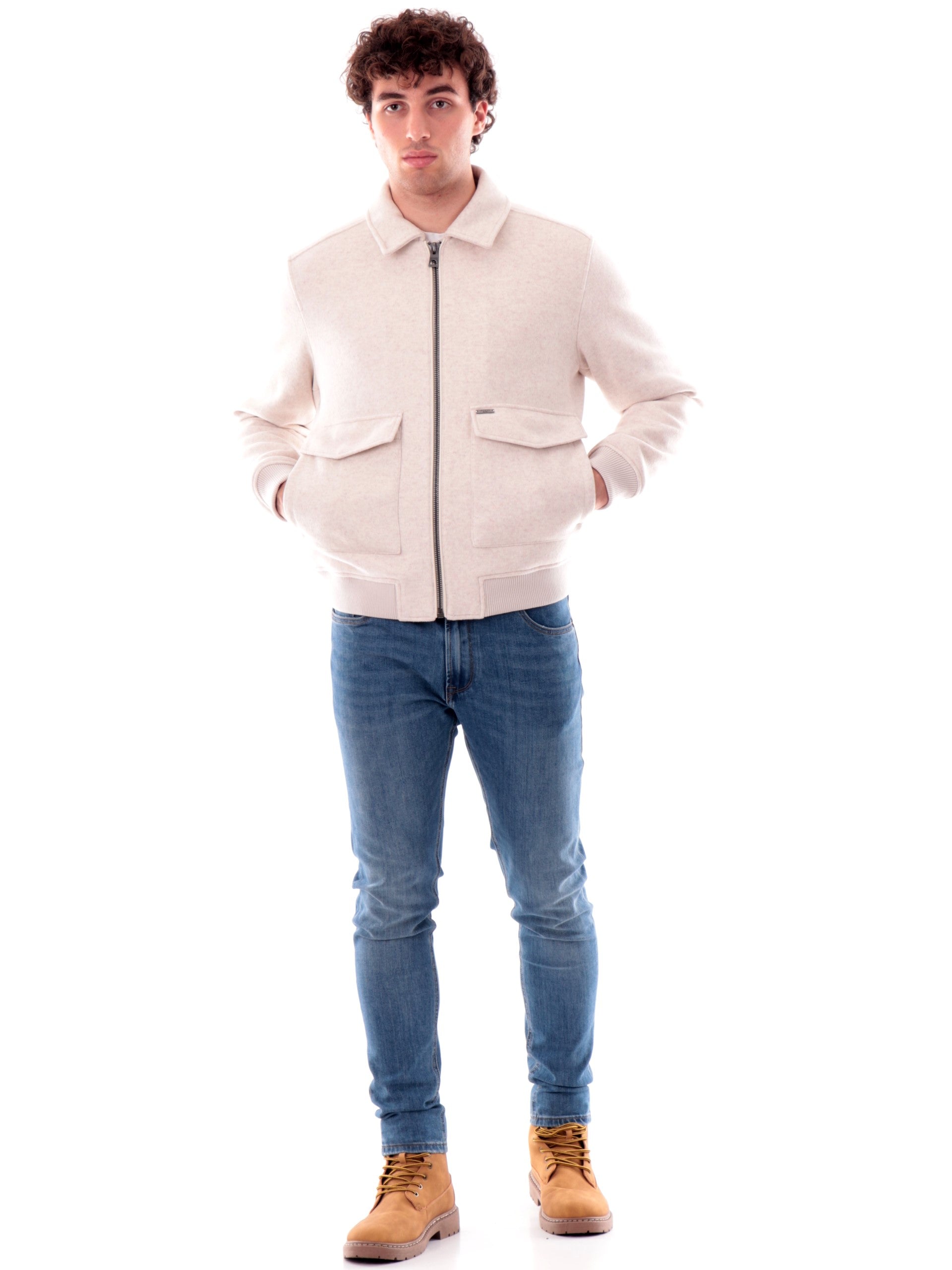 Giacca Guess beige in lana da uomo Warm Wooled full zip M5BL2KW0682. Questo giubbino Guess begie ha il colletto alla francese, la chiusura full zip centrale, due tasconi frontali a filo con patta, polsini e fondo elasticizzati.