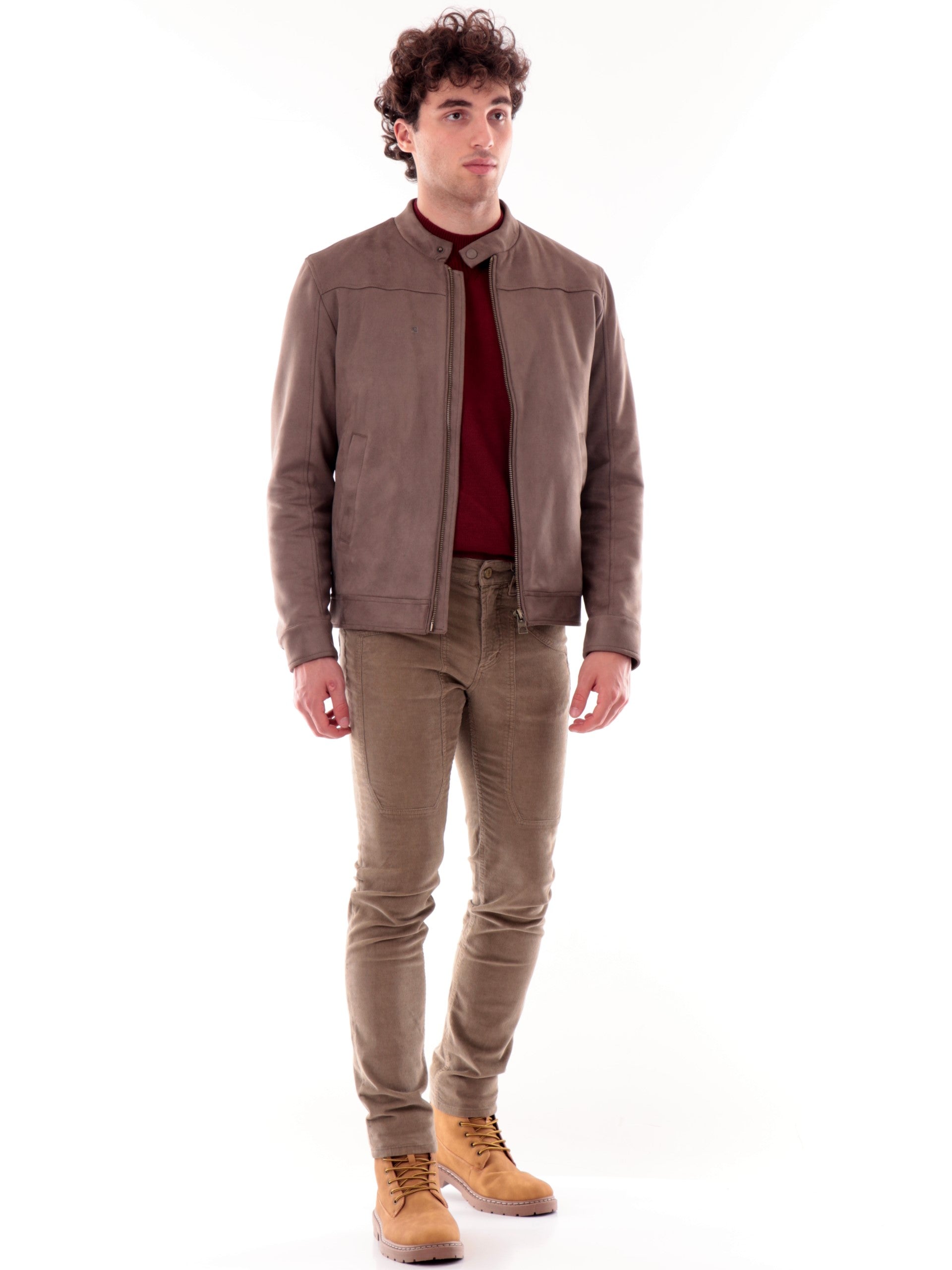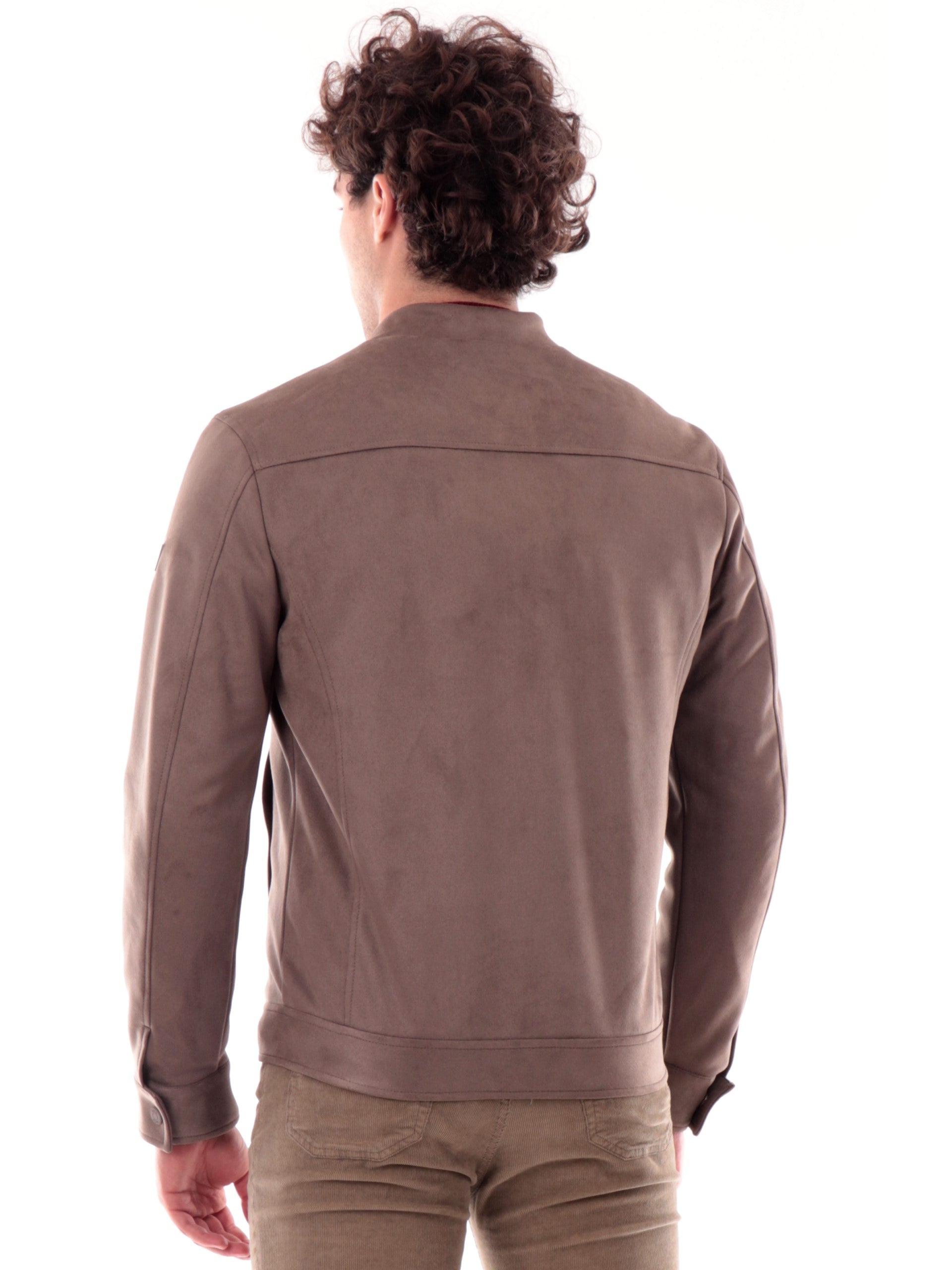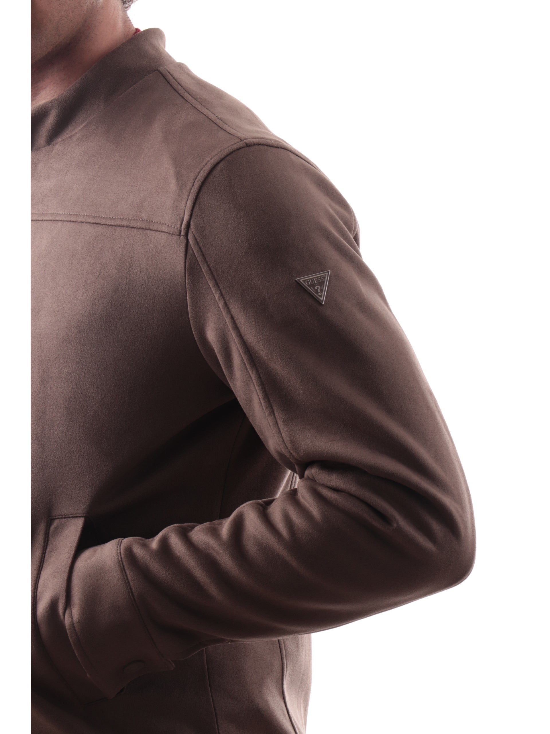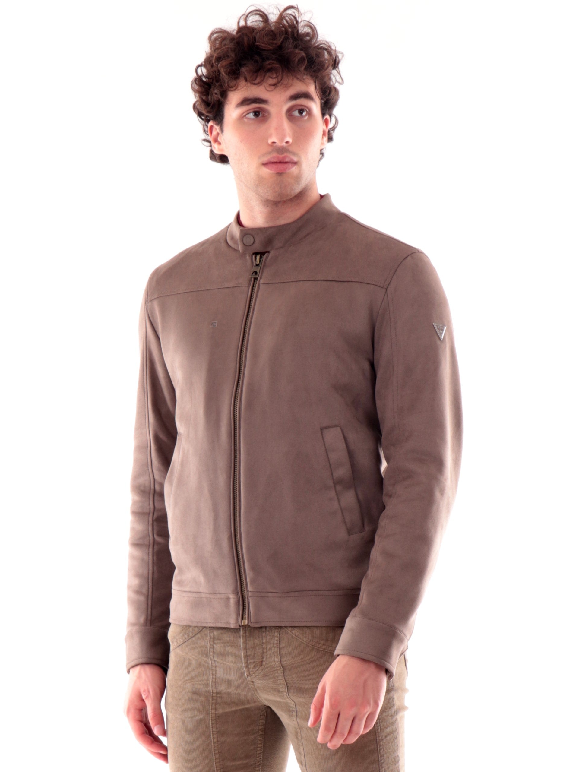 Giacca pelle Guess marrone da uomo Suede Biker Eco M5YL02W0252. Questa giacca uomo Guess marrone ha il colletto con bottone automatico, la chiusura full zip centrale, due tasche laterali aperte e il patch Guess applicato sulla manica sinistra.