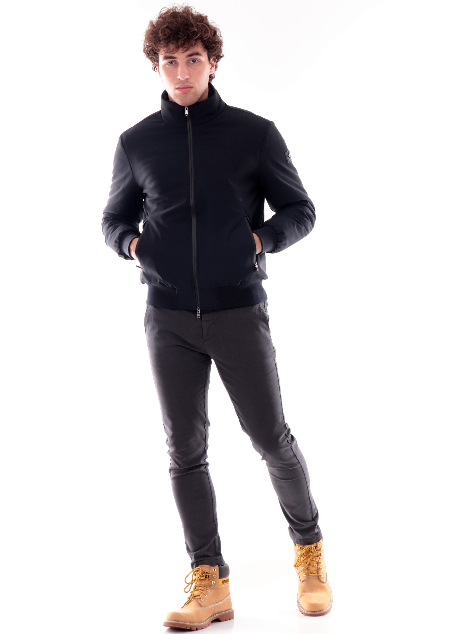 Giubbino Canadian blu da uomo KRIS WINTER. Questa giacca Canadian blu da uomo è realizzata in un tessuto tecnico resistente a pioggia e vento ed è estremamente calda e traspirante. Questo giubbino Canadian a collo alto è caratterizzato dalla chiusura full zip, due tasche laterali con zip, una tasca interna con zip, polsini e fondo elasticizzati a costine e sulla manica a sinistra troviamo il logo del brand applicato. Questa giacca grazie alla sua versalità si può adattare a qualsiasi outfit ed è perfetta per ogni occasione.