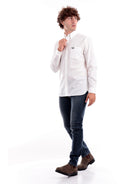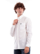 Fred Perry white men's shirt. This Fred Perry shirt has a traditional collar, button closure and regular hem. The shirt is made of 100% cotton. On the left side we find the brand logo and a comfortable pocket.