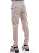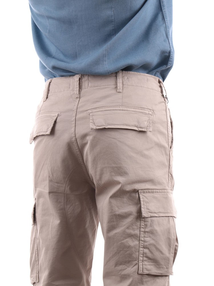 Cargo Jack Jones gray for men 12216664, made of soft cotton. These gray Jack Jones trousers have a button and zip closure, two open side pockets with slanted cuts, two back pockets with flaps, adjustable elasticated cuffs with drawstrings and two large knee-high pockets.