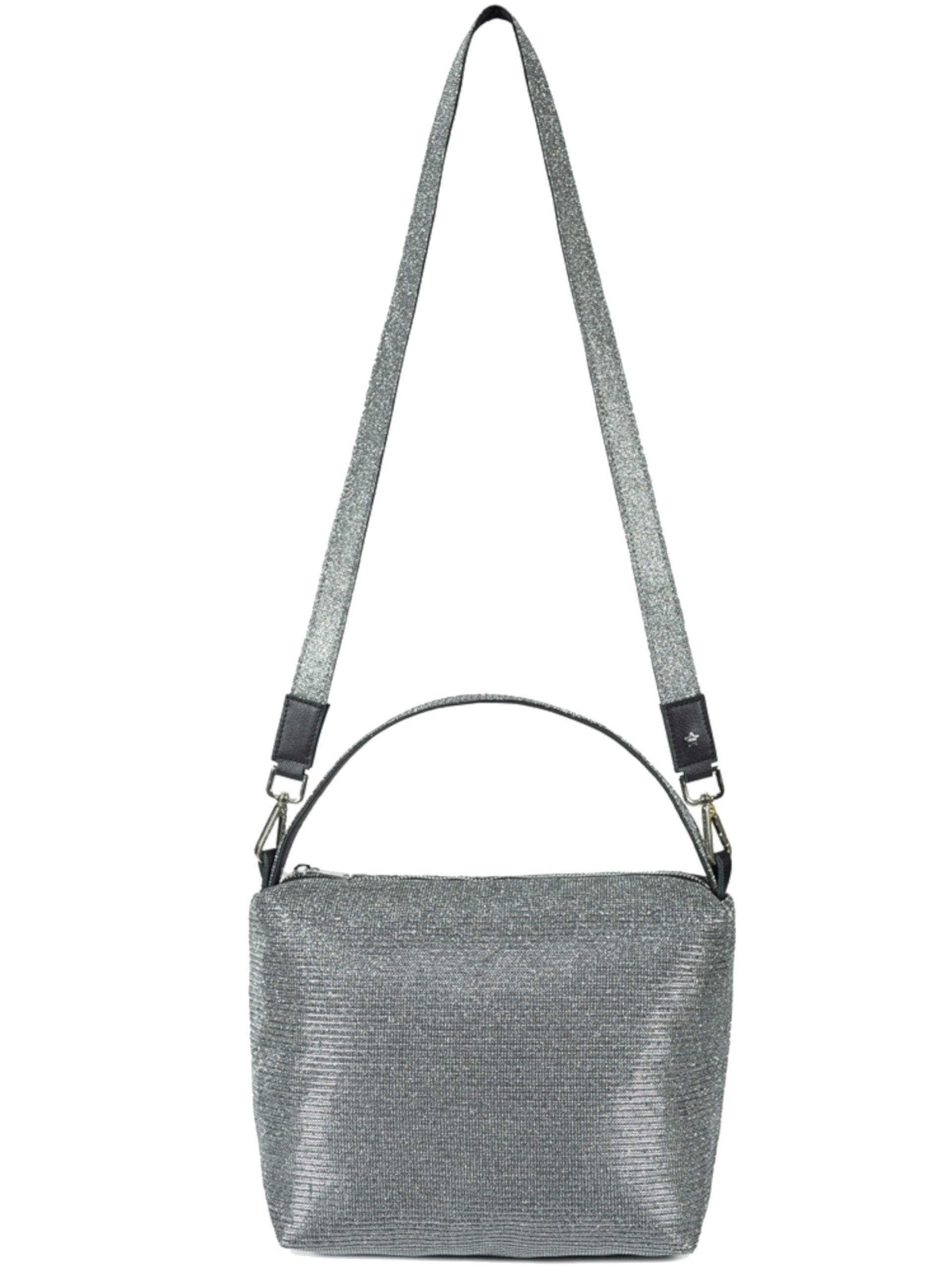 Borsa grande argentata brillantinata L'Aura con tracolla removibile ASTUCCIOBTARPI