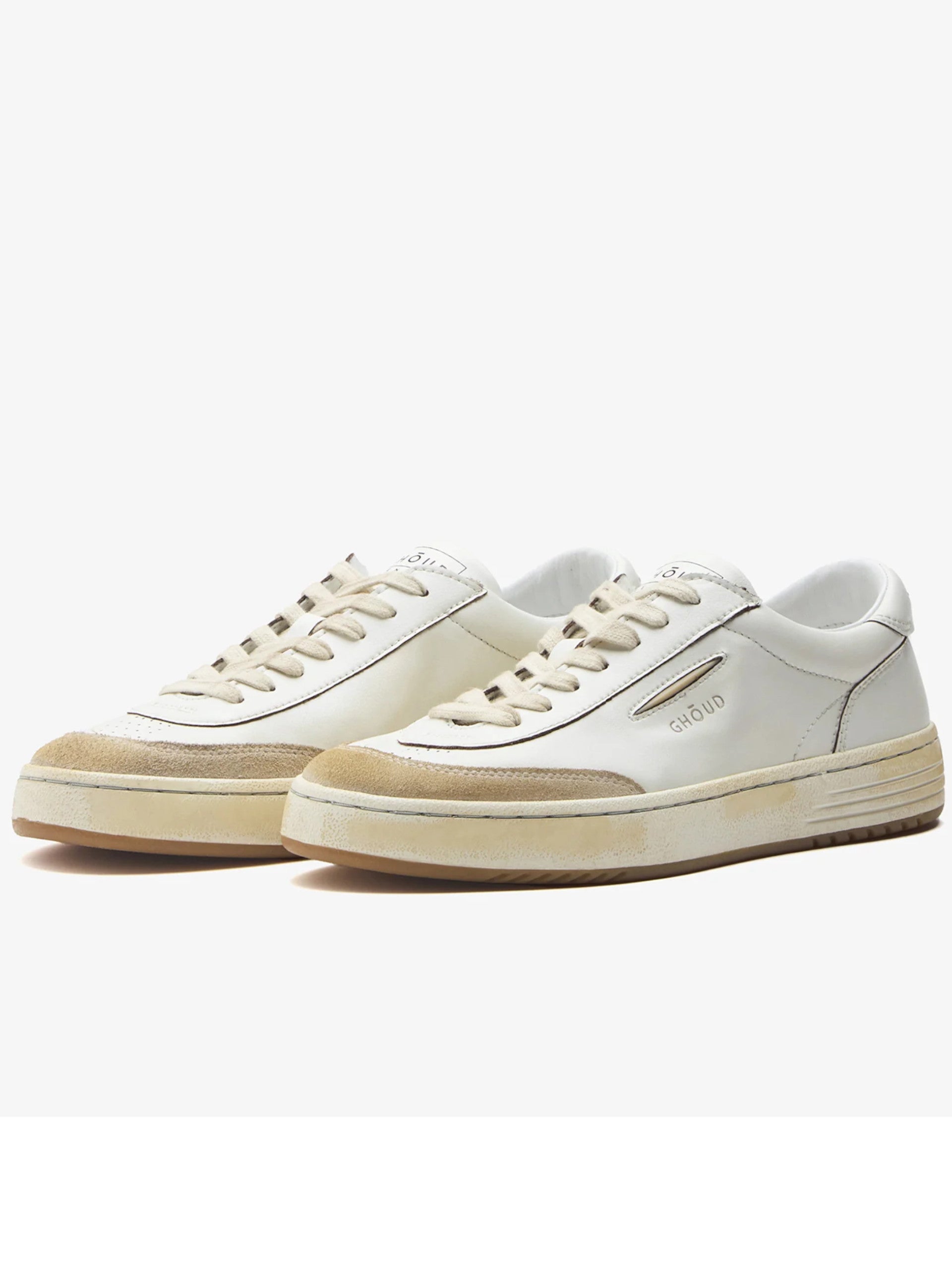 Scarpe Ghoud Lido Brushed Low pelle bianche e beige da uomo inserti suede LBLM