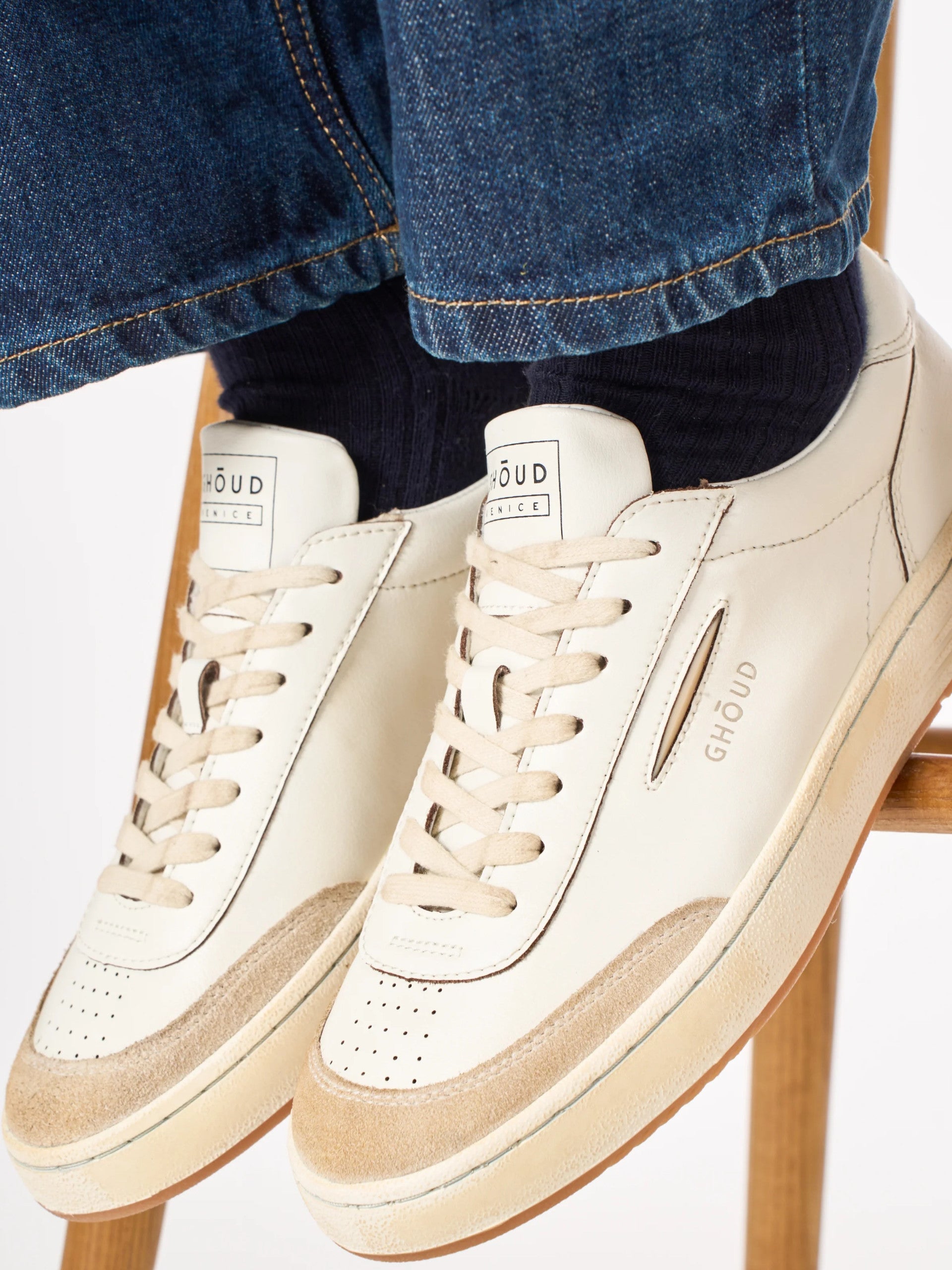 Sneakers Ghoud Lido Brushed Low pelle bianche e beige da uomo inserti suede LBLM