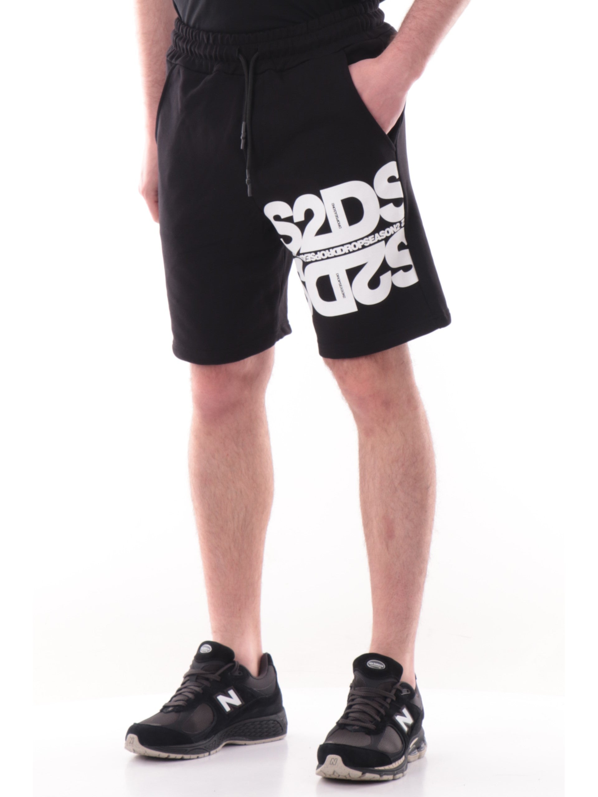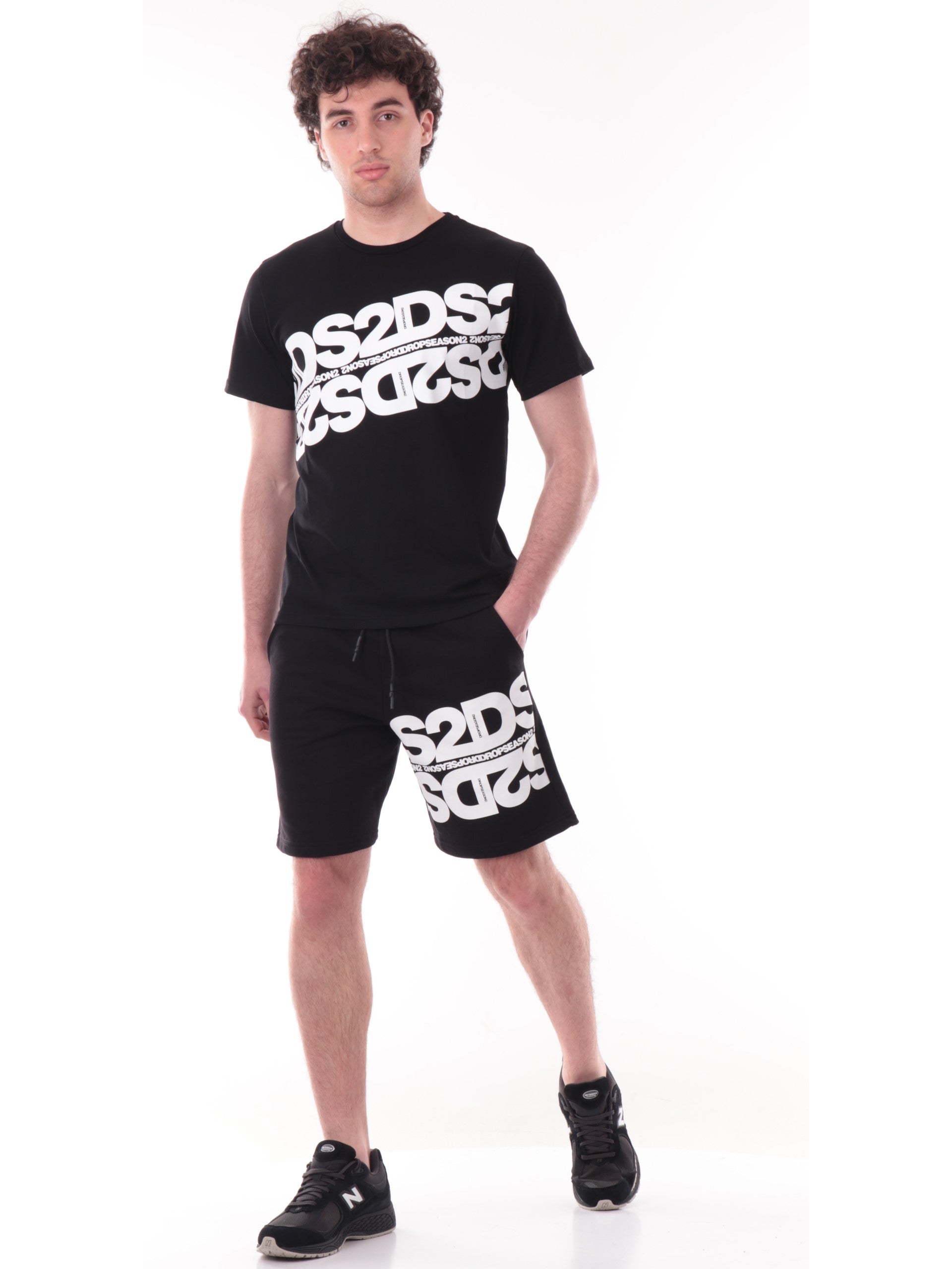 Bermuda tuta DS2 neri da uomo con maxi scritta SS26258NERO