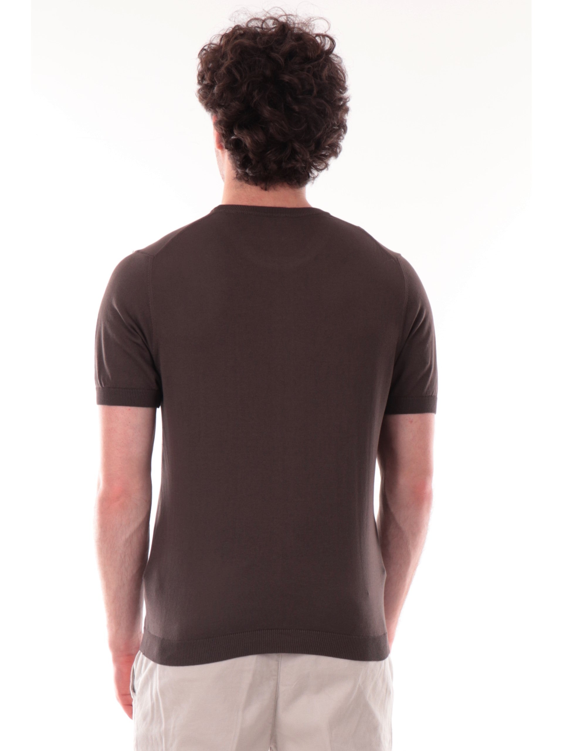 Maglia Velk in filo marrone girocollo da uomo Made in Italy, realizzata in 100% puro cotone. Questa t-shirt uomo Velk marrone girocollo ha le maniche corte, inserti a costine, perfetta per la stagione primavera-estate ed è perfetta per un look sia casual e sia elegante