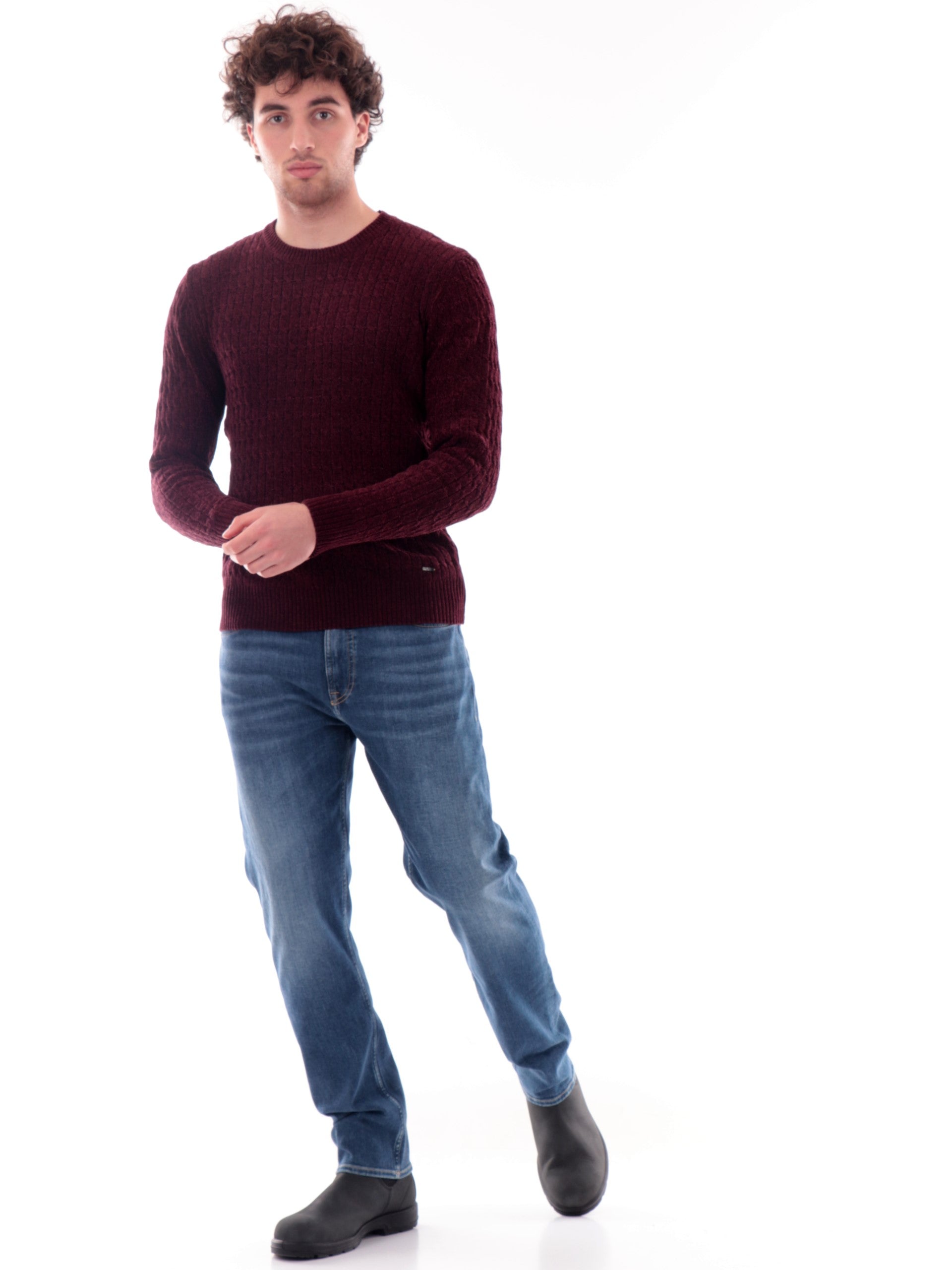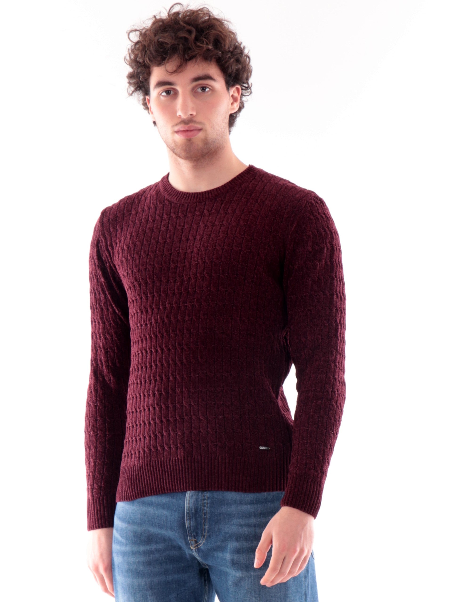 Maglione ciniglia Gianni Lupo bordeaux da uomo girocollo GL35056F25BORD