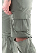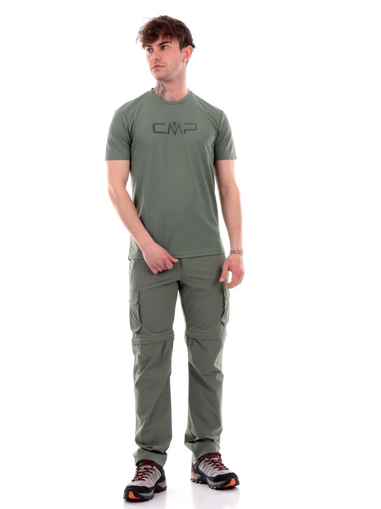 CMP green trekking trousers for men 31T5627. These green CMP trousers have a press stud plus button plus zip closure, two side pockets with zip closure on the front, two large pockets with flaps with velcro above the knee under which there is a zip which allows you to remove the lower part of the trousers and transform it into a very comfortable Bermuda shorts and a back pocket with zip closure.