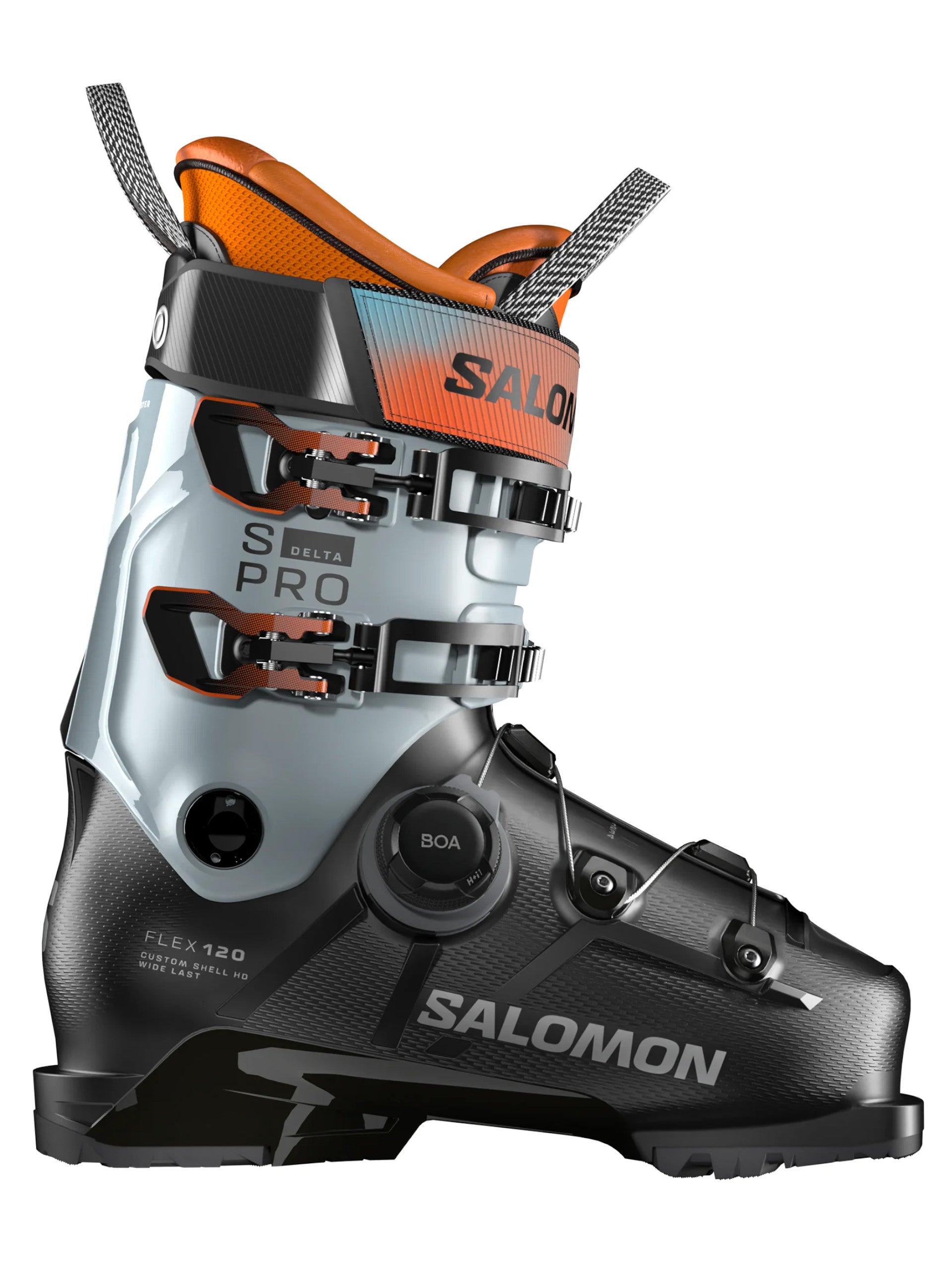 Scarponi da sci celesti Salomon da uomo S/Pro Delta Boa 120 GW. Questi scarponi da uomo S/Pro Delta BOA 120 Salomon integrano il BOA Fit System in una forma interna di 102 mm, offrendo controllo micro-regolabile a chi cerca comfort e prestazioni insieme. Pensati per sciatori con i piedi larghi, sono dotati di sistema di regolazione del gambetto in 3 posizioni che, adattandosi alle varie dimensioni del polpaccio, offre un fit personalizzato e ne fa un modello ideale per chi cerca prestazioni e comfort. Questi scarponi sono caratterizzati dalla piastra in metallo che unisce gambetto e scafo peroffrire sostegno affidabile nella parte posteriore, My Custom Fit 4D Perf, scarpetta Perf presagomata che offre più tenuta e fit istantaneo. Le schiume più morbide e l'aggiunta del tessuto Talyn all'esterno facilitano l'adattamento alla forma del piede, mentre la punta in tessuto elasticizzato offre più spazio a livello dell'avampiede.