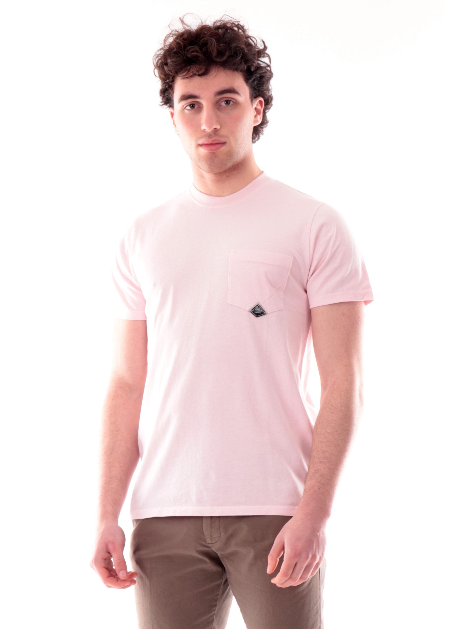T-shirt Roy Rogers rosa da uomo con taschino 634CA160111C620