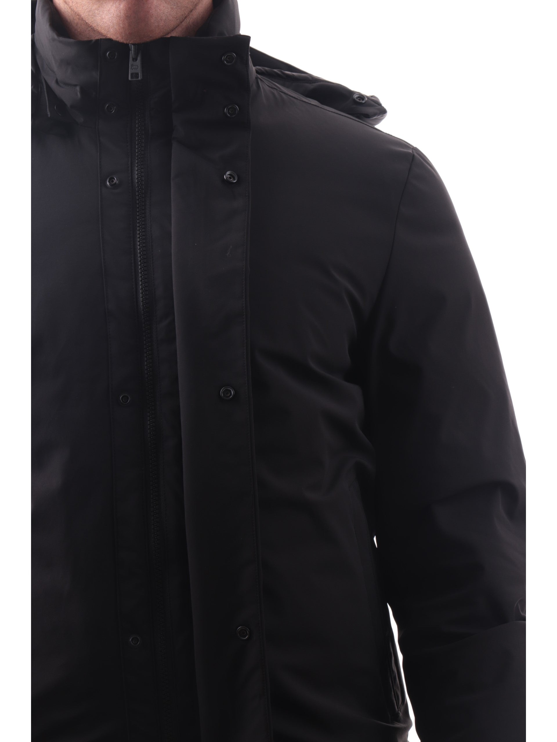 Cappotto nero Woolrich da uomo con cappuccio removibile 0929MRUT3339BLACK