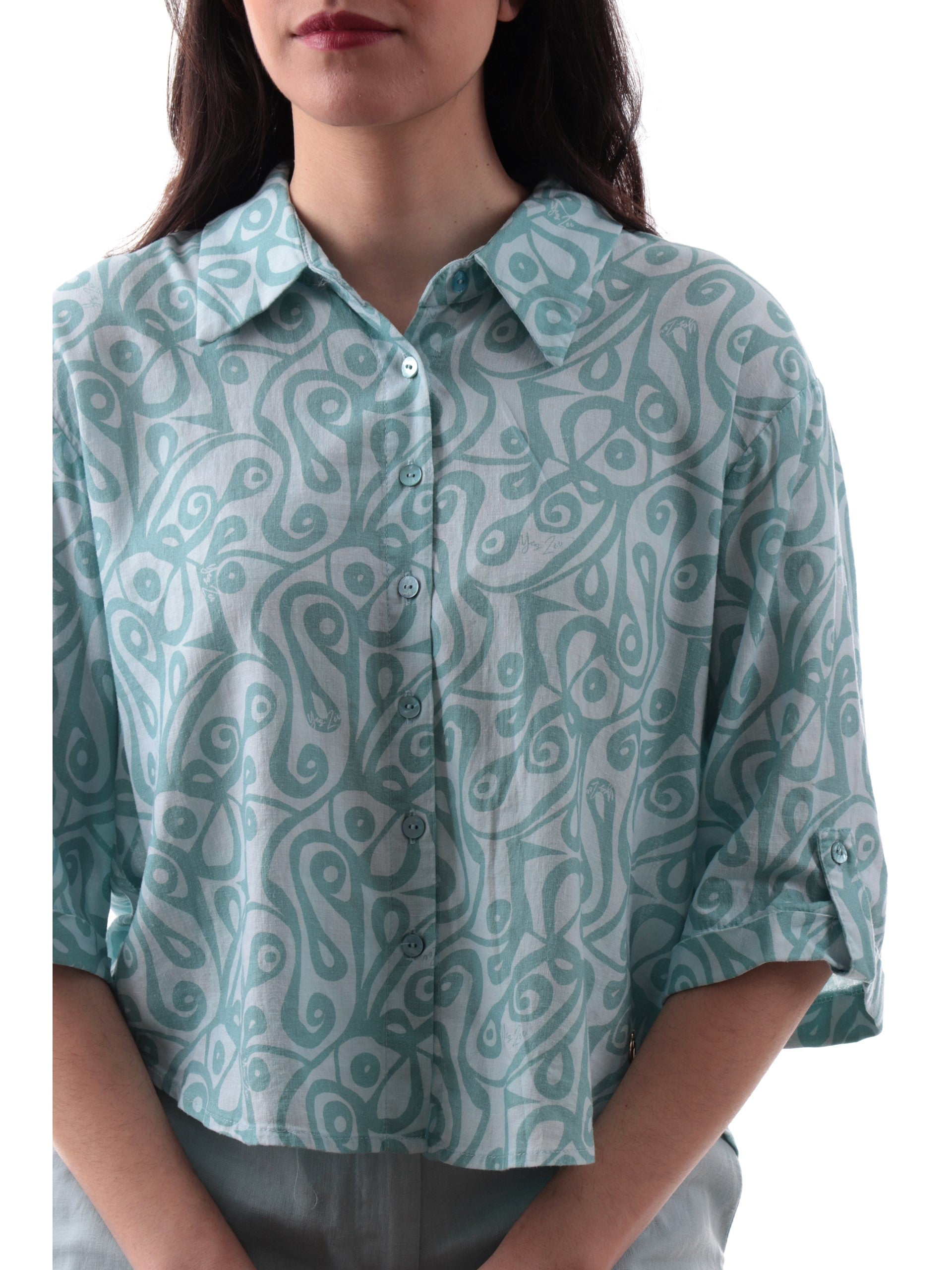 Camicia lino Yes Zee verde da donna fantasia foulard C400V900