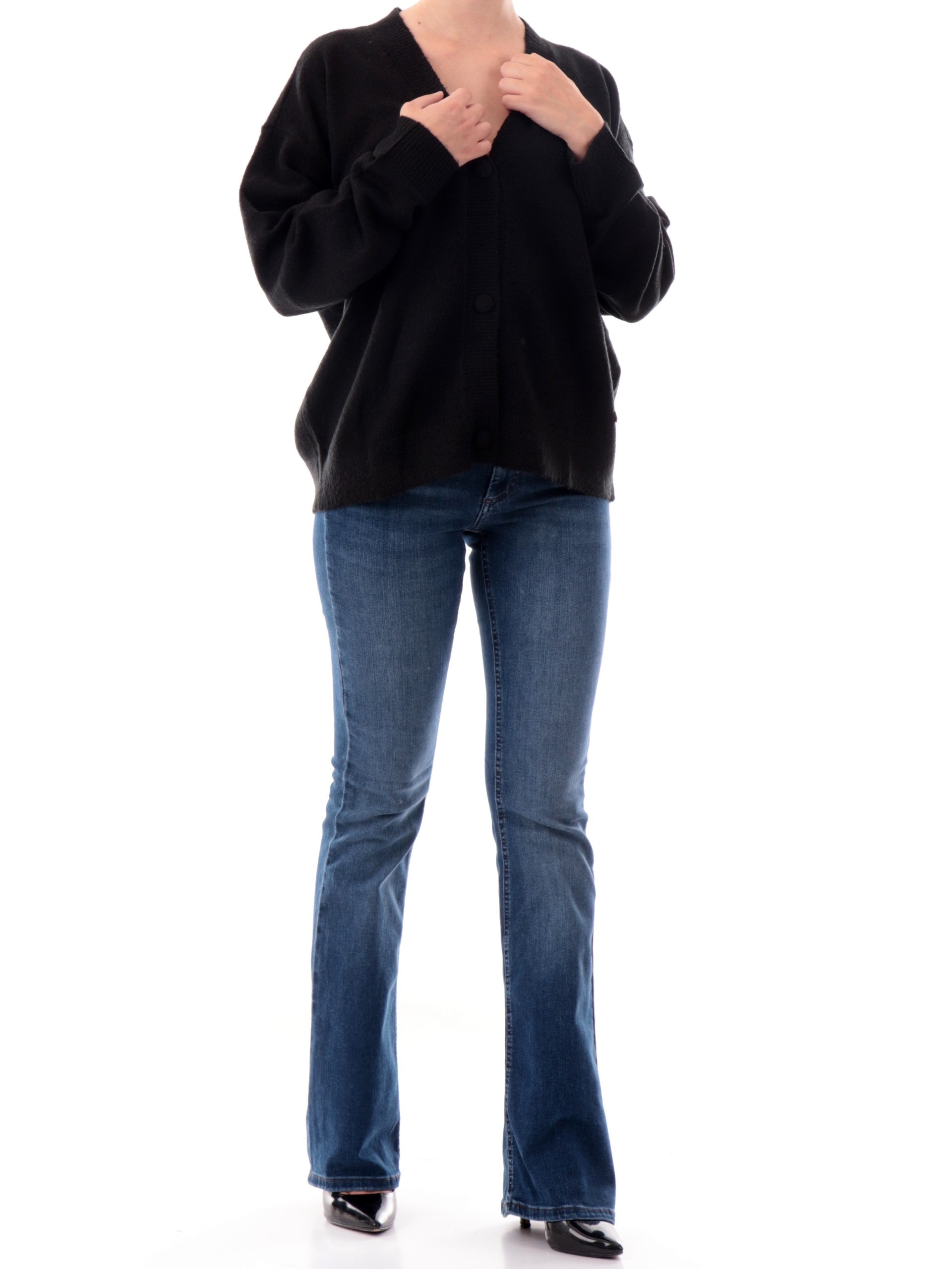 Cardigan Nero da donna Yes Zee nero con bottoni Over M004BT00-0801