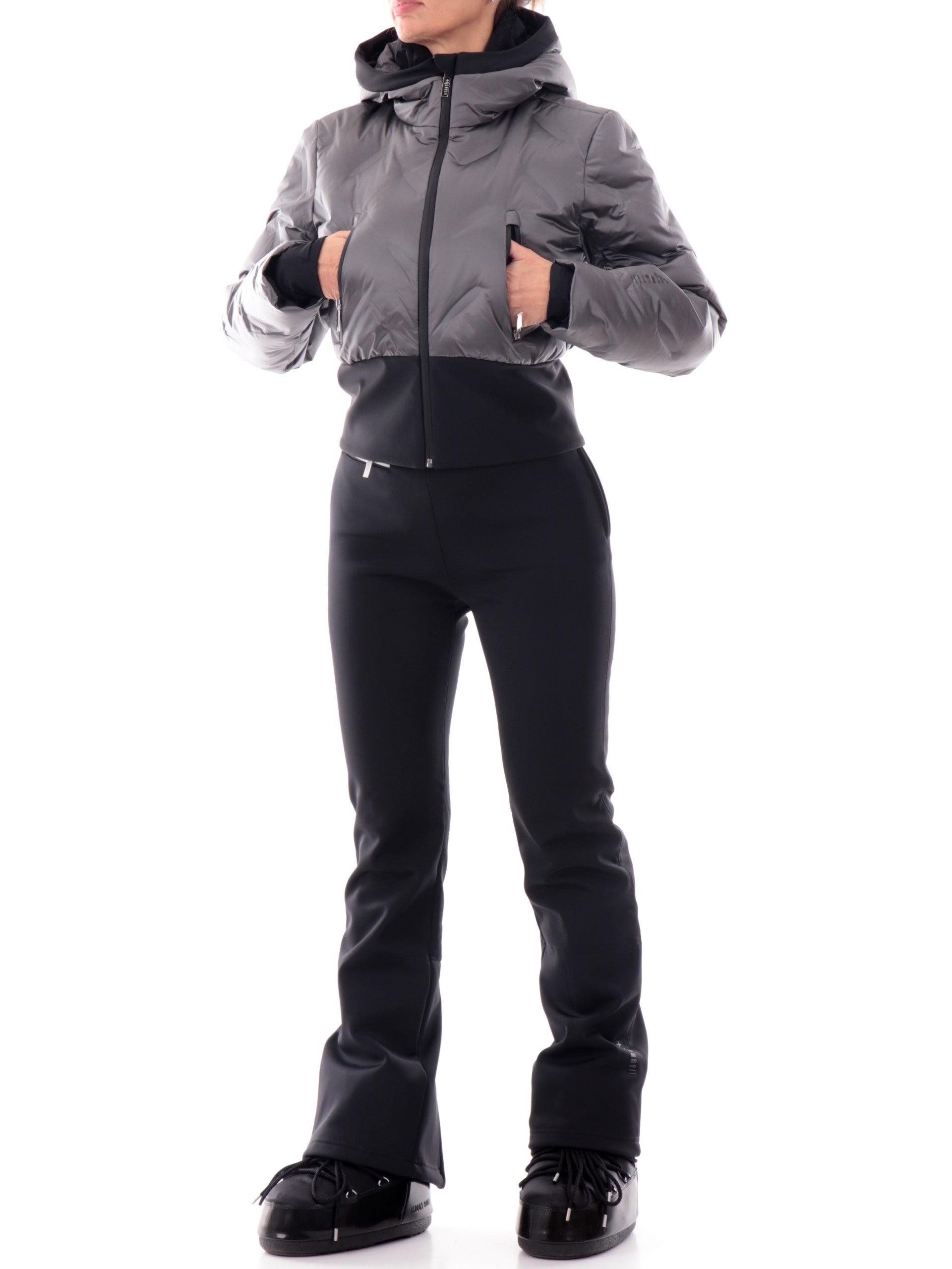 Questa giacca tecnica da sci RH+ da donna grigia Calipso II Crop è realizzata con un tessuto esterno Shimmer, che assicura un’elevata termo-coibenza grazie all’imbottitura in piuma. I settori incollati a zig-zag migliorano le prestazioni di termicità e impermeabilità, rendendo il capo ideale per condizioni climatiche rigide. Il cappuccio ampio e fisso garantisce protezione, mentre le maniche preformate e la fascia fondo in tessuto Soft Shell elasticizzato assicurano libertà di movimento e comfort. La giacca è dotata di zip frontale e zip tasche impermeabili, taschino porta ski-pass con zip invisibile. I polsini interni con foro ergonomico per il pollice migliorano la praticità, mentre l’interno collo e schiena in tessuto velour donano morbidezza. L’inserto centrale al collo protegge dallosfregamento del casco. Completano il capo tasche interne porta cellulare con zip invisibili e pulisci lenti staccabile.