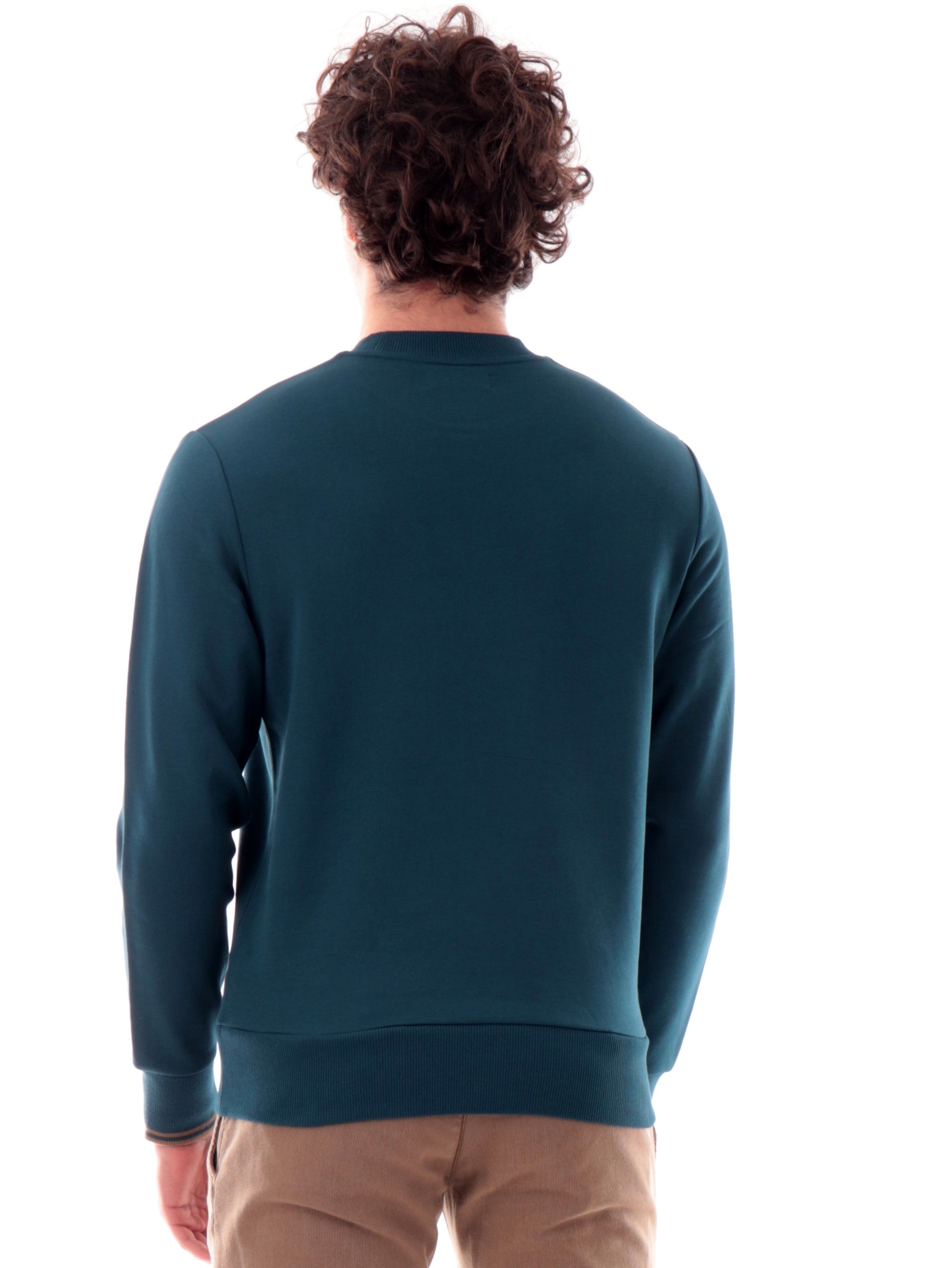 Felpa Fred Perry verde petrolio da uomo. Questa felpa Fred Perry ha il logo stampato sul cuore, un interno morbido e felpato, polsini e fondo a costine. L'orlo delle maniche è caratterizzato da una doppia striscia bianca, in contrasto con il colore della felpa Fred Perry.