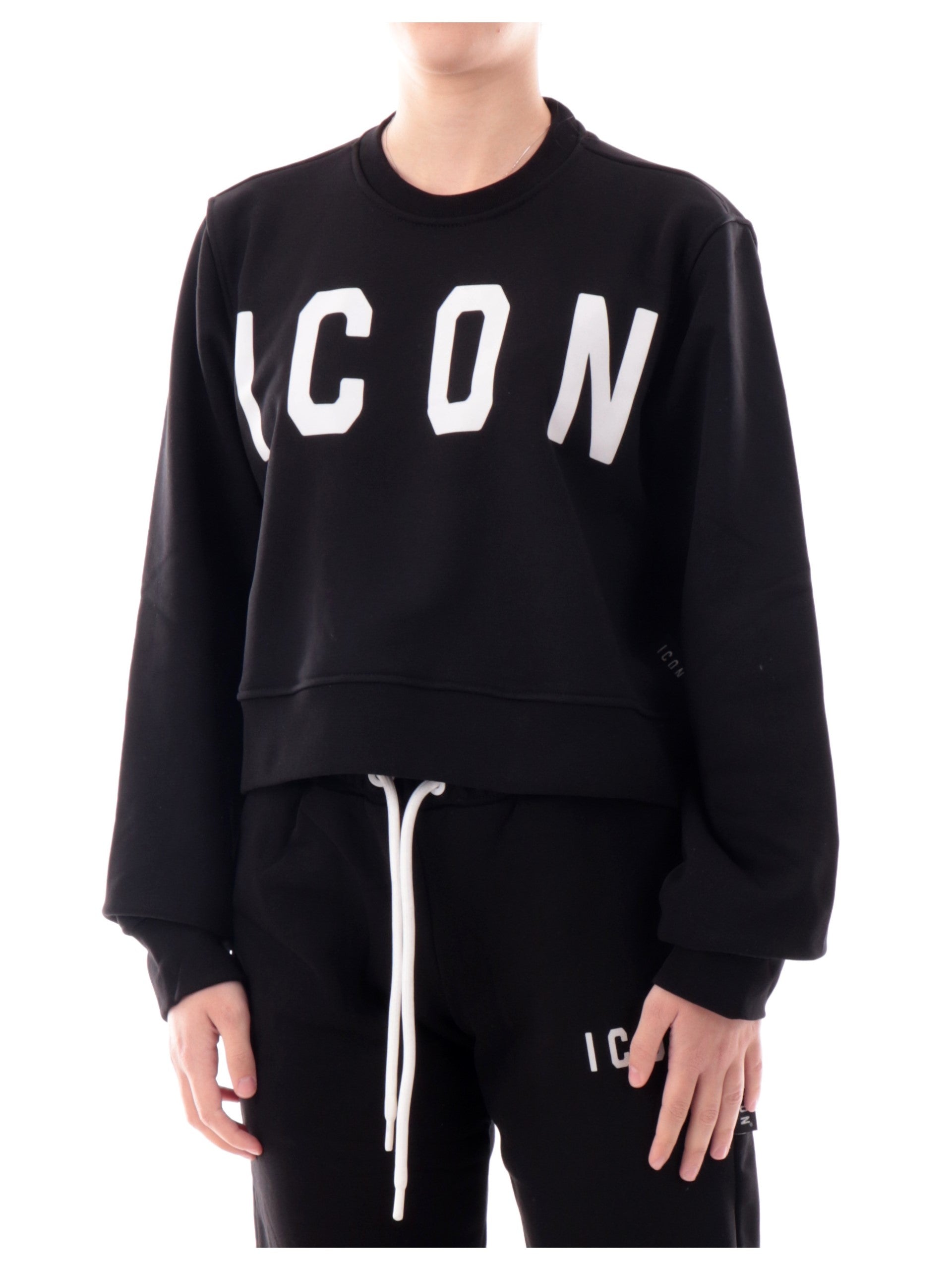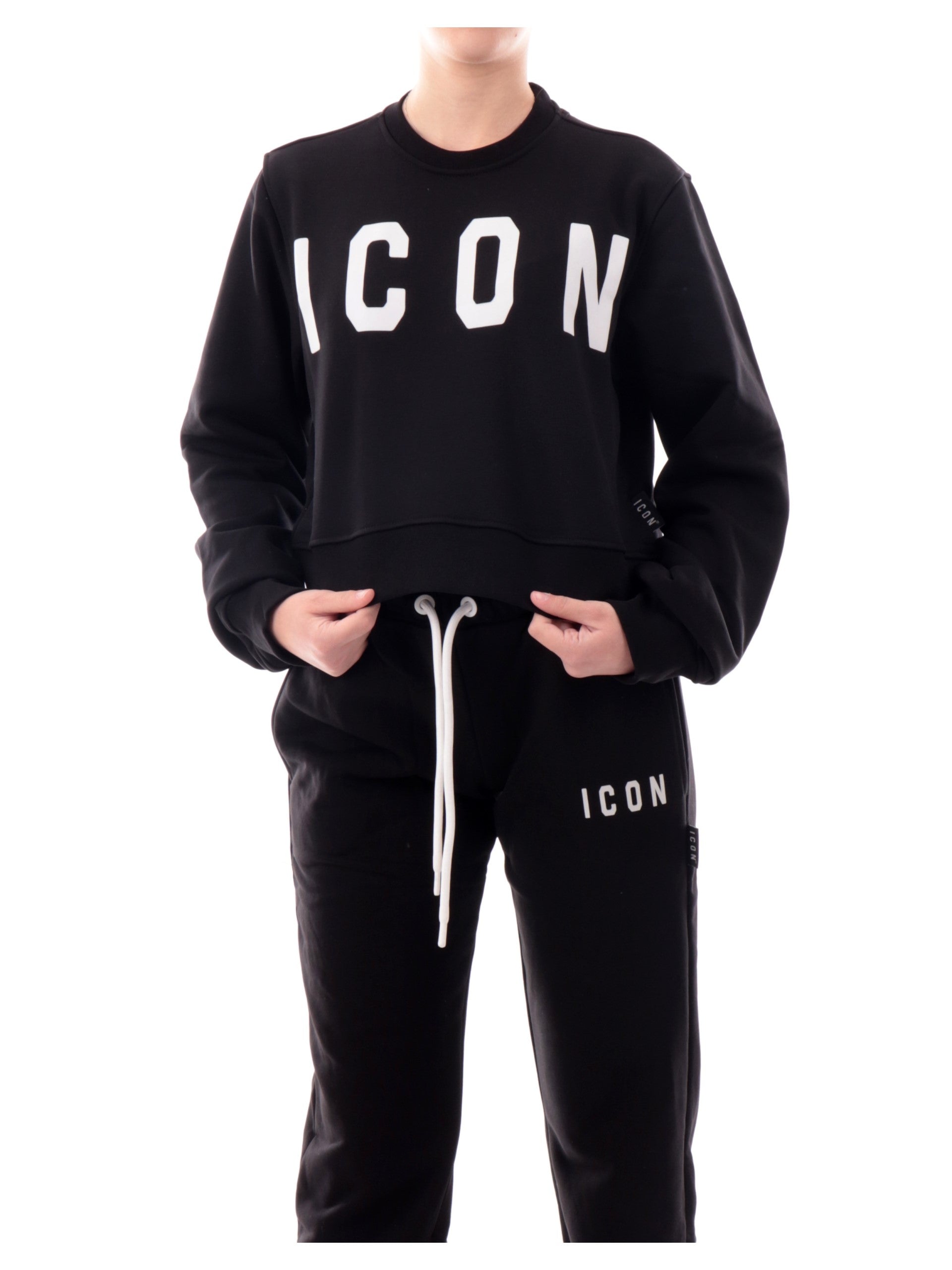 Felpa crop Icon nera da donna con scritta Icon bianca. Questa felpa Icon nera è realizzata in morbido tessuto felpato . Questa felpa crop nera Icon è perfetta per essere abbinata con tutta la linea.