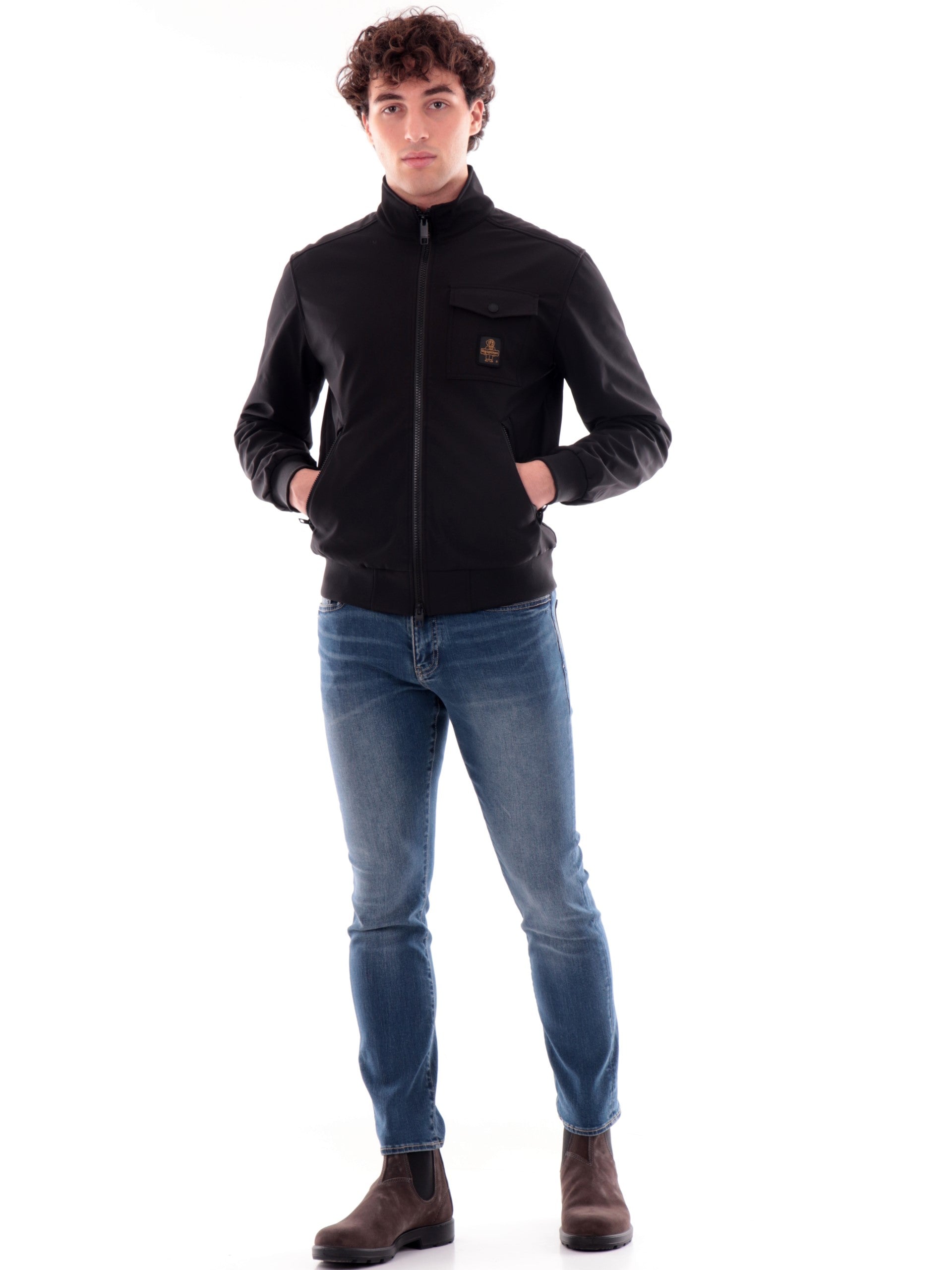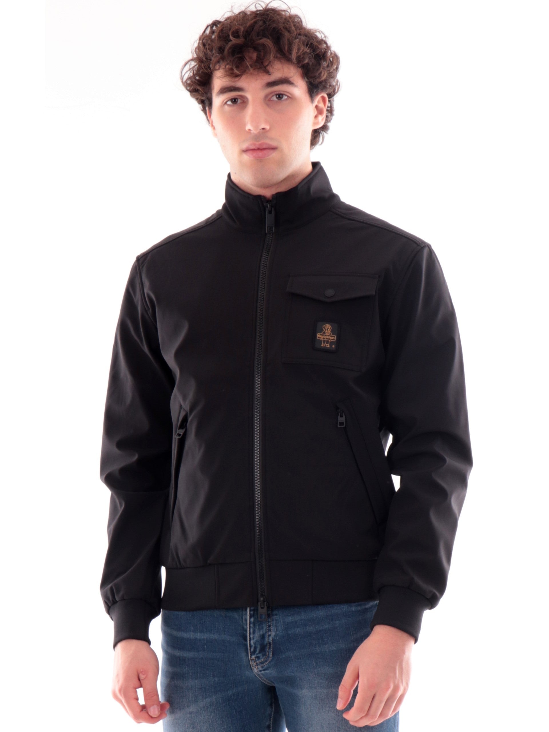 Giacca Refrigiwear nera da uomo full zip Captain G00808, realizzato in morbido tessuto a tinta unita. Questo giubbino Refrigiwear nero ha lo scaldacollo, la chiusura full zip centrale con doppio cursore logato, due tasche laterali con zip, un taschino con patta a bottone automatico, il logo del brand sul cuore a contrasto colore, i polsini e il fondo elasticizzati a costine.