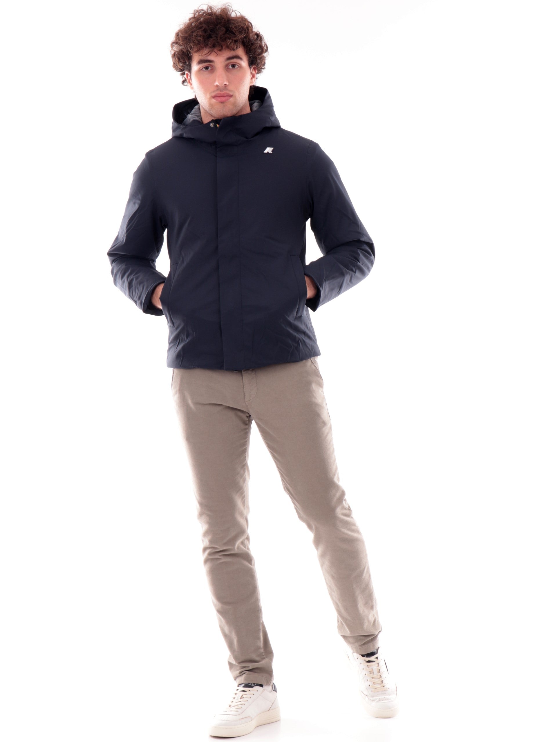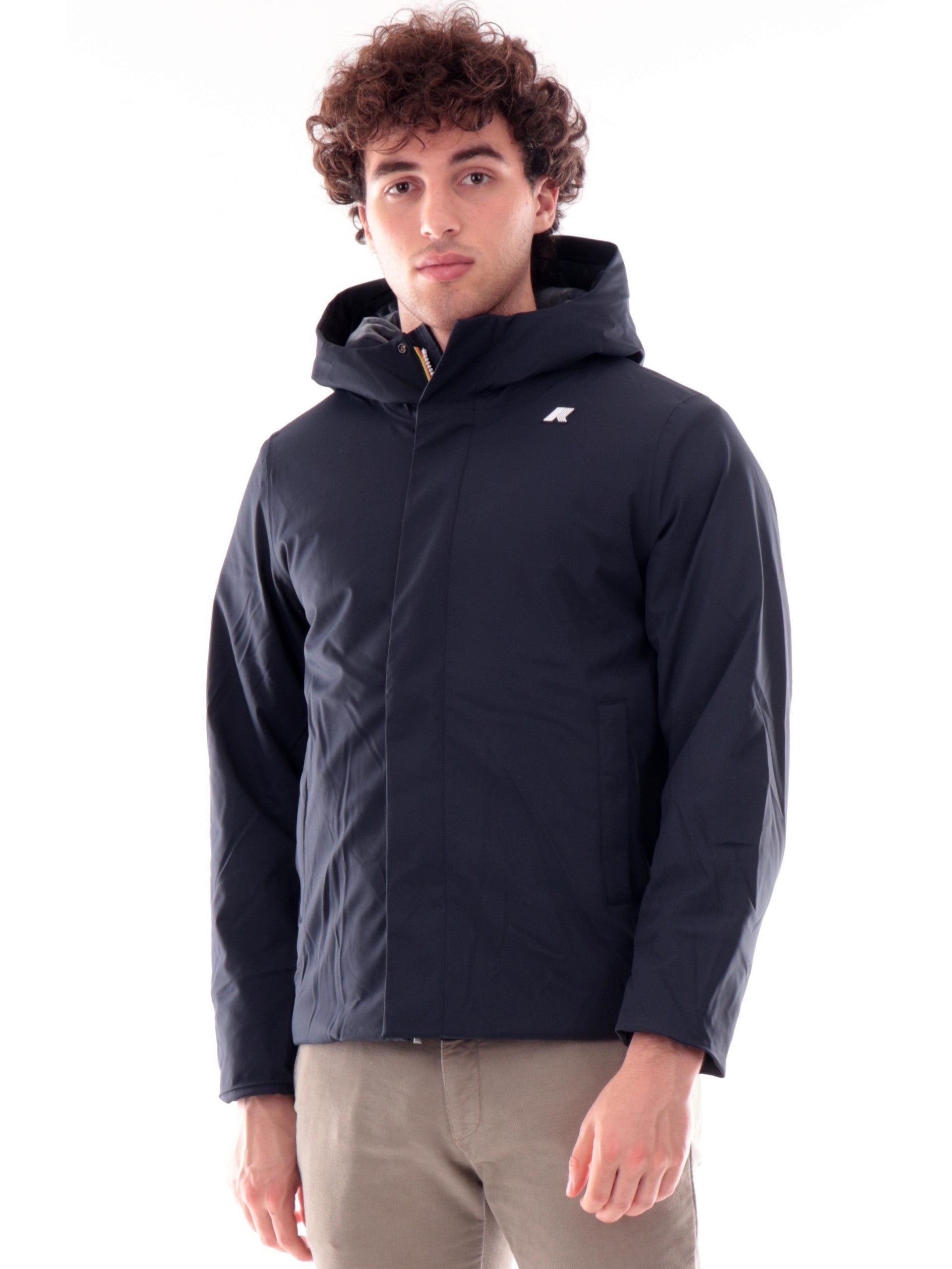 Giubbino K-Way blu da uomo JACK TWILL MARMOTTA. Questo giubbino K-Way blu da uomo è realizzato da un tessuto impermeabile resistente all'acqua e antivento, al suo interno troviamo un imbottitura calda, morbida al tatto perfetto per l'inverno. Questo giubotto K-Way è caratterizzato da un cappuccio fisso, chiusura con zip nascosta da una patta a bottonoi, due tasche laterali con zip, polsini e fondo regolare con coulisse. Questo giubotto è perfetto per un look casual