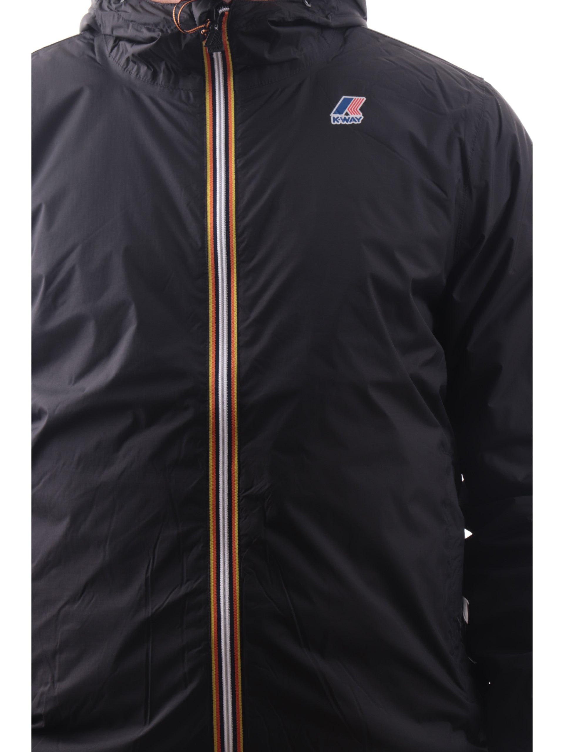 Giubbino K-Way nero da uomo Le Vrai 4.0 Claude Warm. Questo giubbino K-Way nero da uomo è realizzato da un tessuto tecnico impermeabile, resistente all'acqua perfetto per le gornate piovose ed è caratterizzato da cappuccio fisso con lacci regolabili, chiusura centrale full zip, due tasche laterali con zip, polsini e fondo elasticizzati con coulisse e il logo del brand applicato a lato cuore. Al suo interno troviamo due tasche, una aperta e una con zip