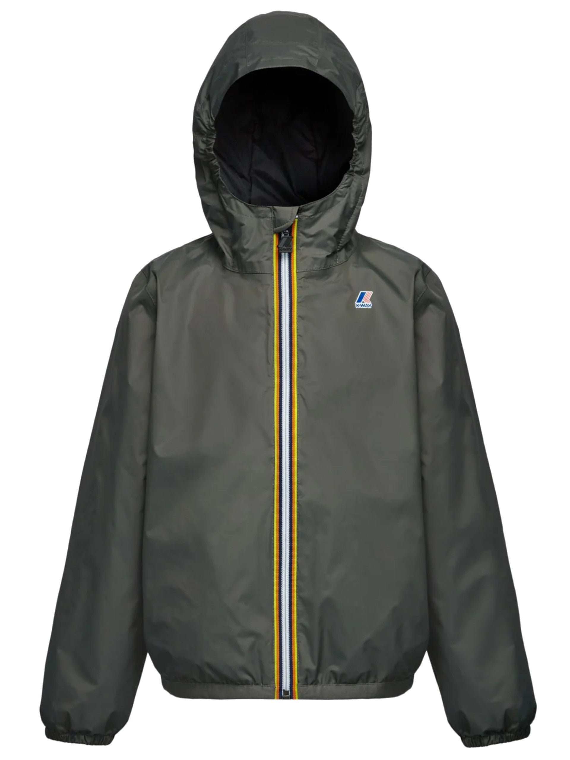 Giubbino K-Way verde da bambino Le Vrai 4.0 Claude Warm. Questo giubbino K-Way verde da bambino è realizzato da un tessuto tecnico impermeabile, resistente all'acqua perfetto per le gornate piovose ed è caratterizzato da cappuccio fisso, chiusura centrale full zip, due tasche laterali con zip, polsini e fondo elasticizzati e il logo del brand applicato a lato cuore.