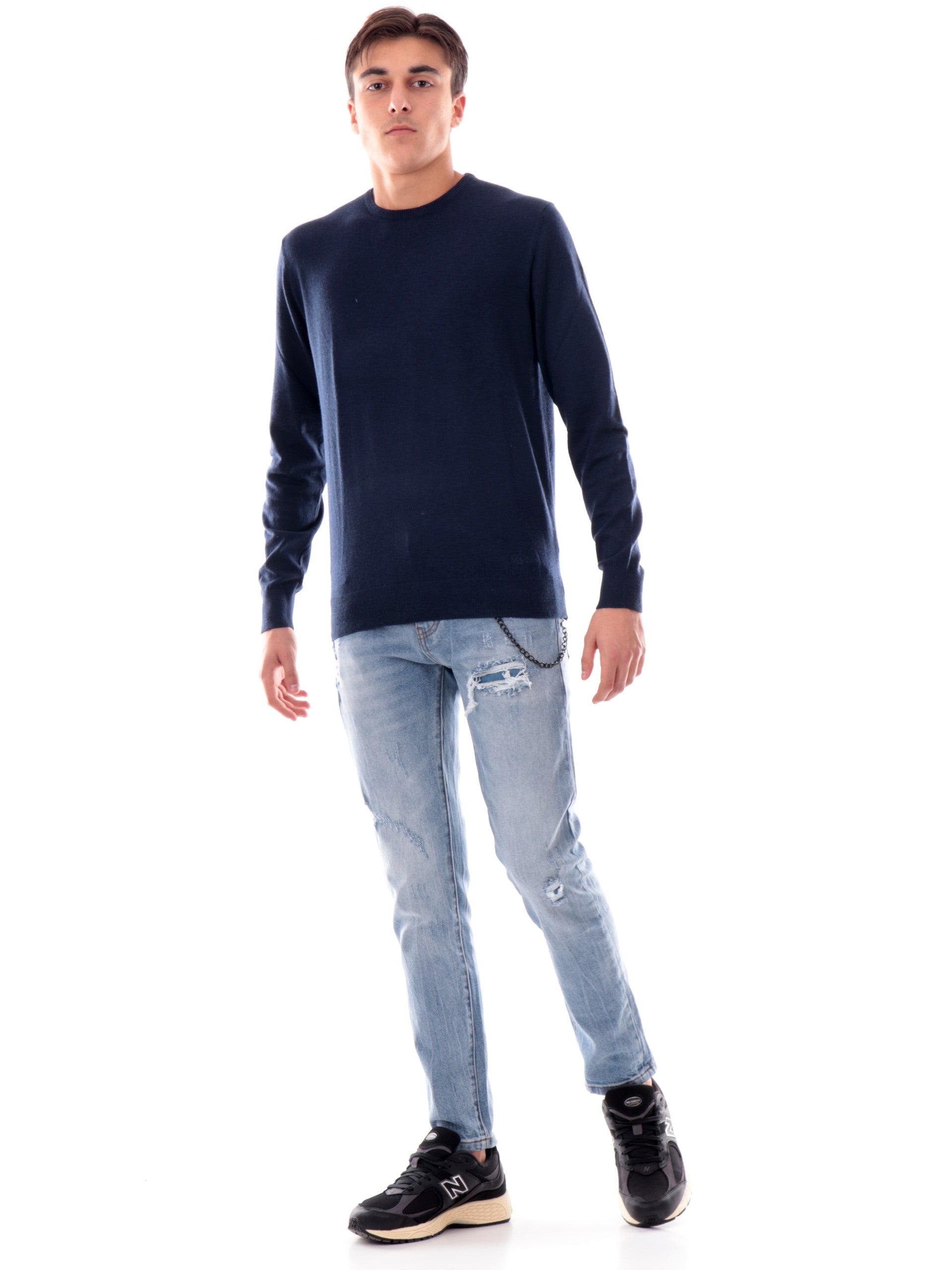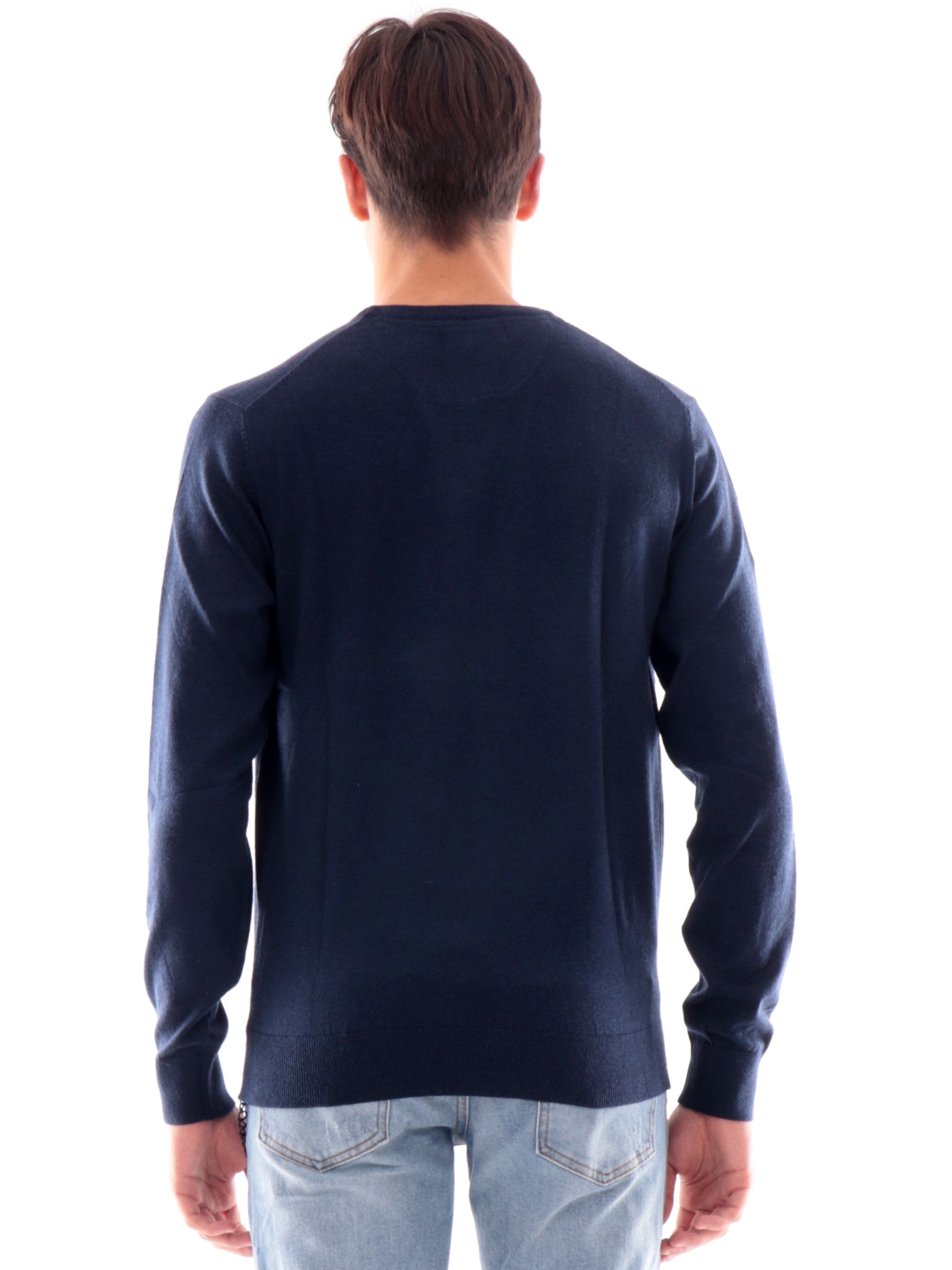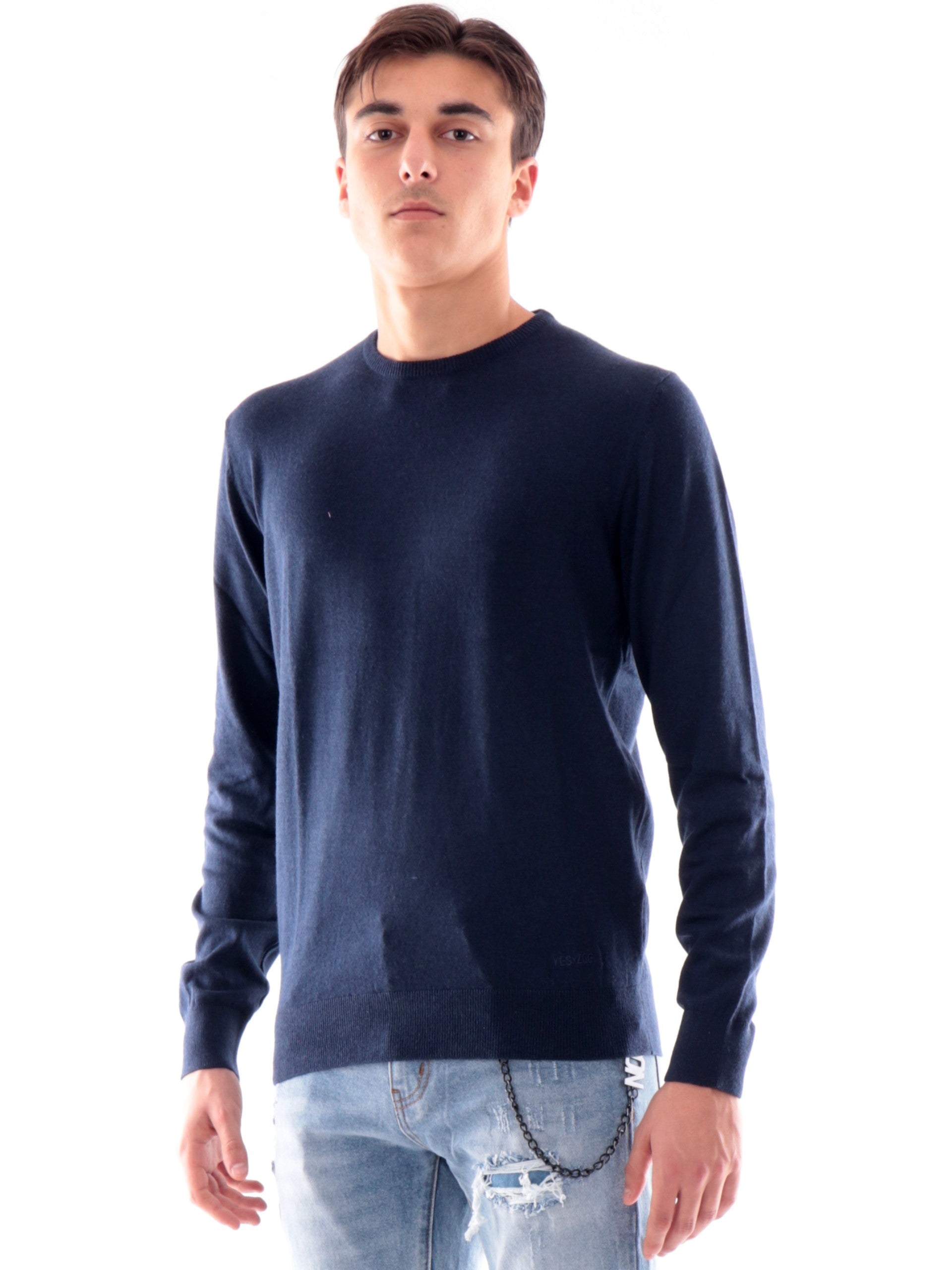 Maglione blu Yes Zee da uomo. Questa maglia girocollo Yes Zee blu da uomo è carattterizzata da posini e fondo elasticizzato a costine, la scritta del brand Yes Zee sul davanti in basso a sinistra. questo maglioncino blu è realizzato da un tessuto caldo ed avvolgente perfetto per le stagioni autunno-inverno