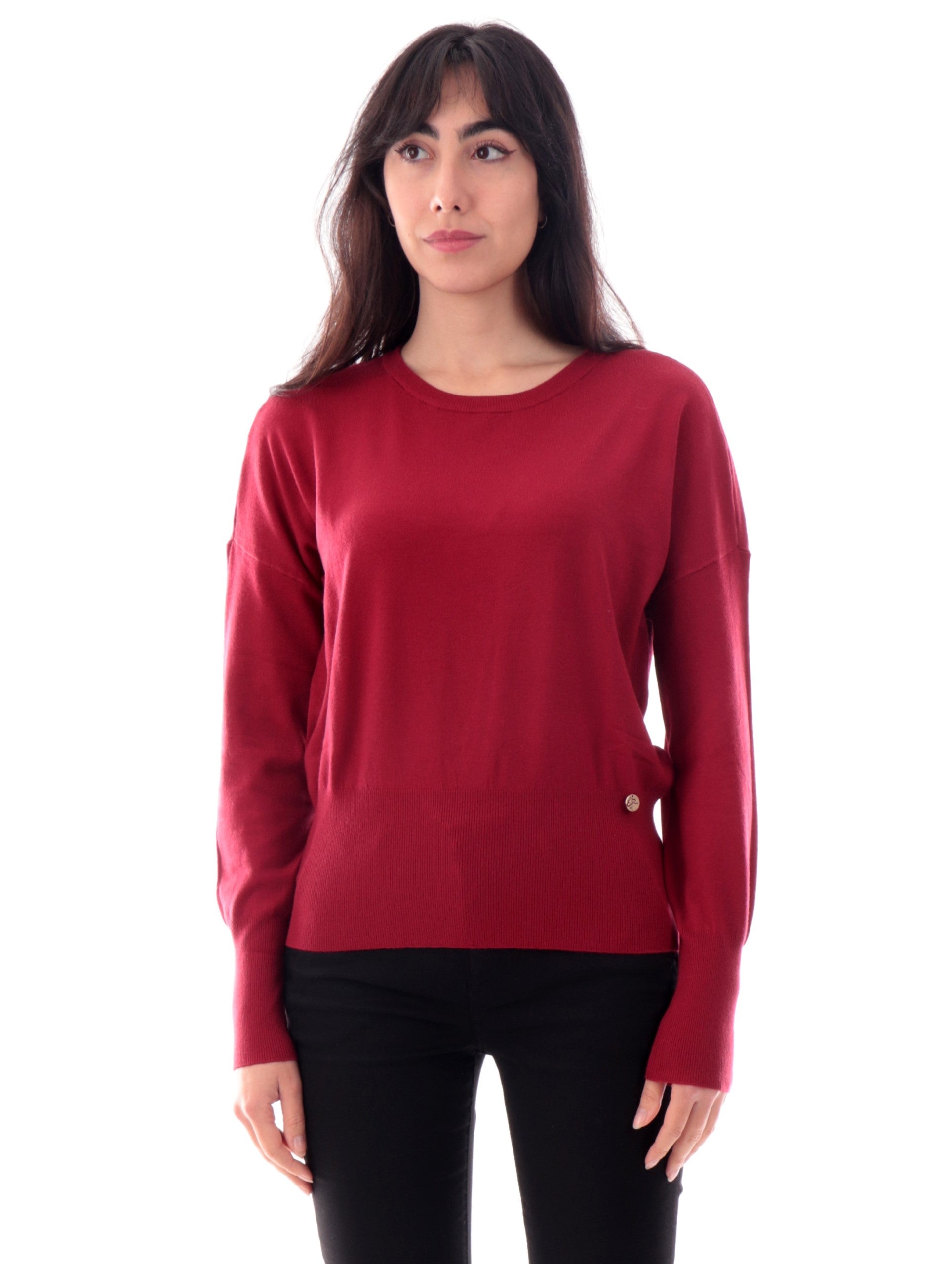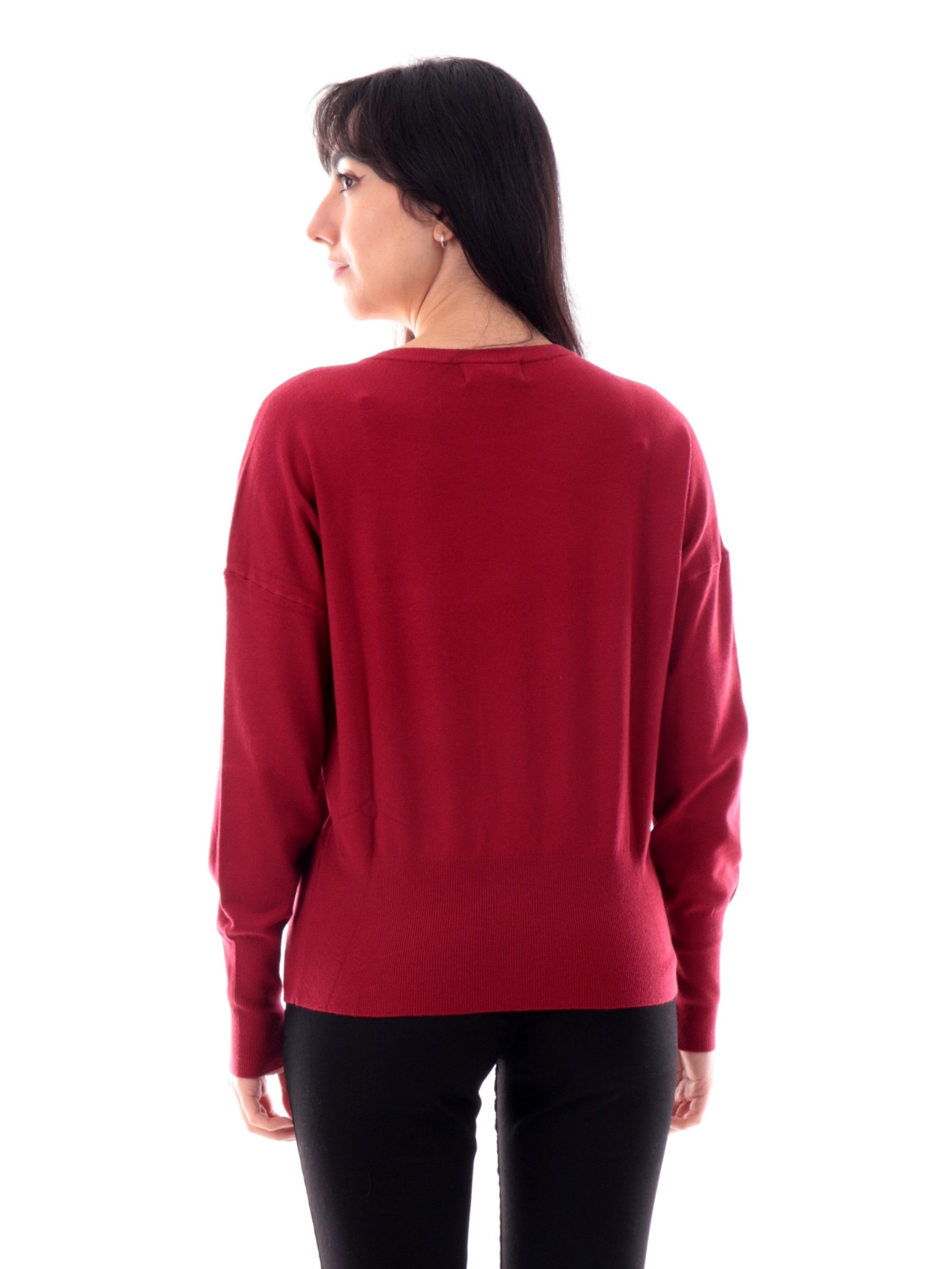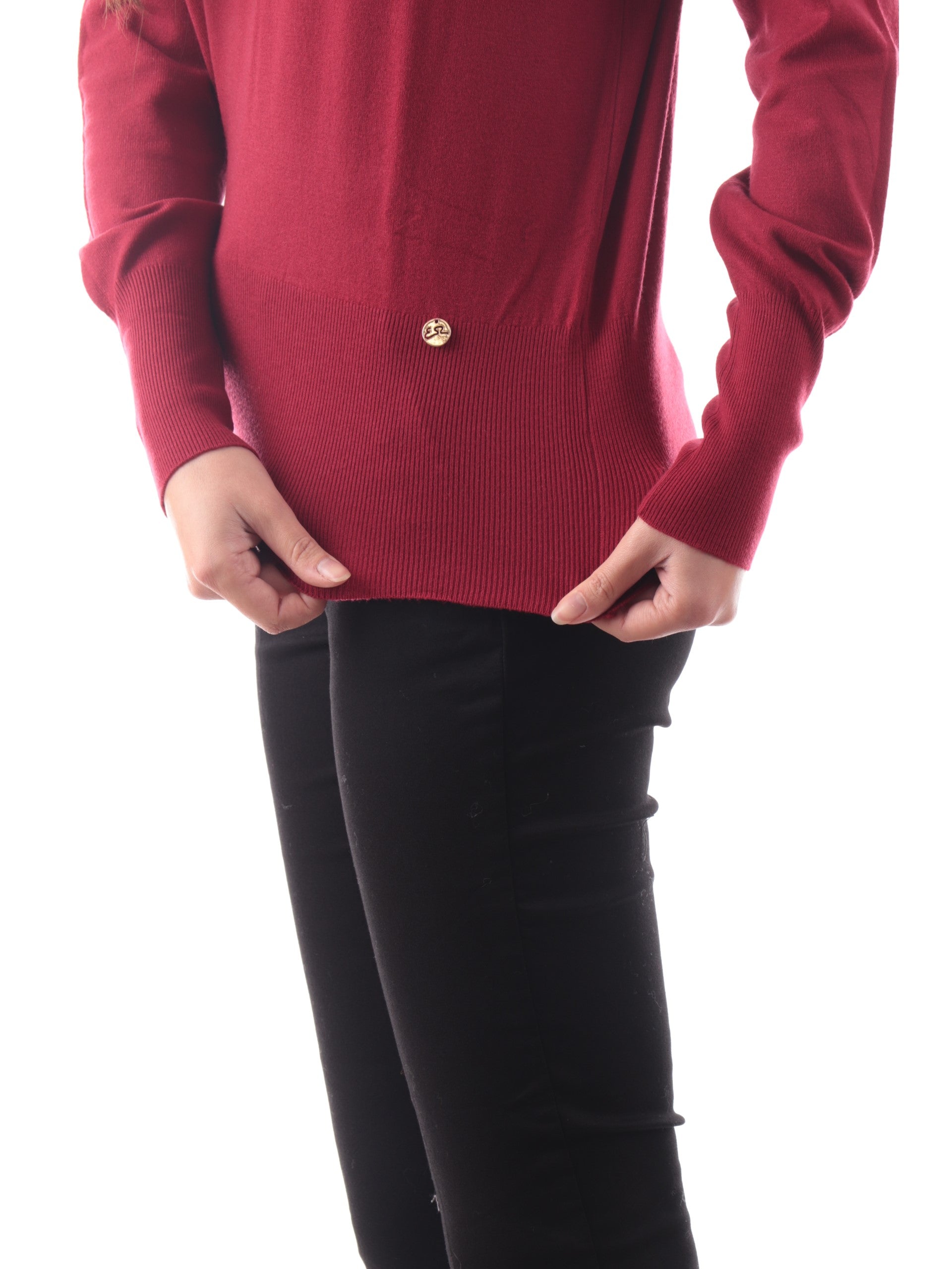 Maglione Yes Zee Donna bordeaux con maniche a sbuffo. Questo maglione è realizzato dal tessuto in morbida viscosa che dona una piacevole sensazione di calore e di morbidezza allo stesso tempo. Questamaglia bordeaux Yes Zee a girocollo ha i polsini e fondo elasticizzati a costine