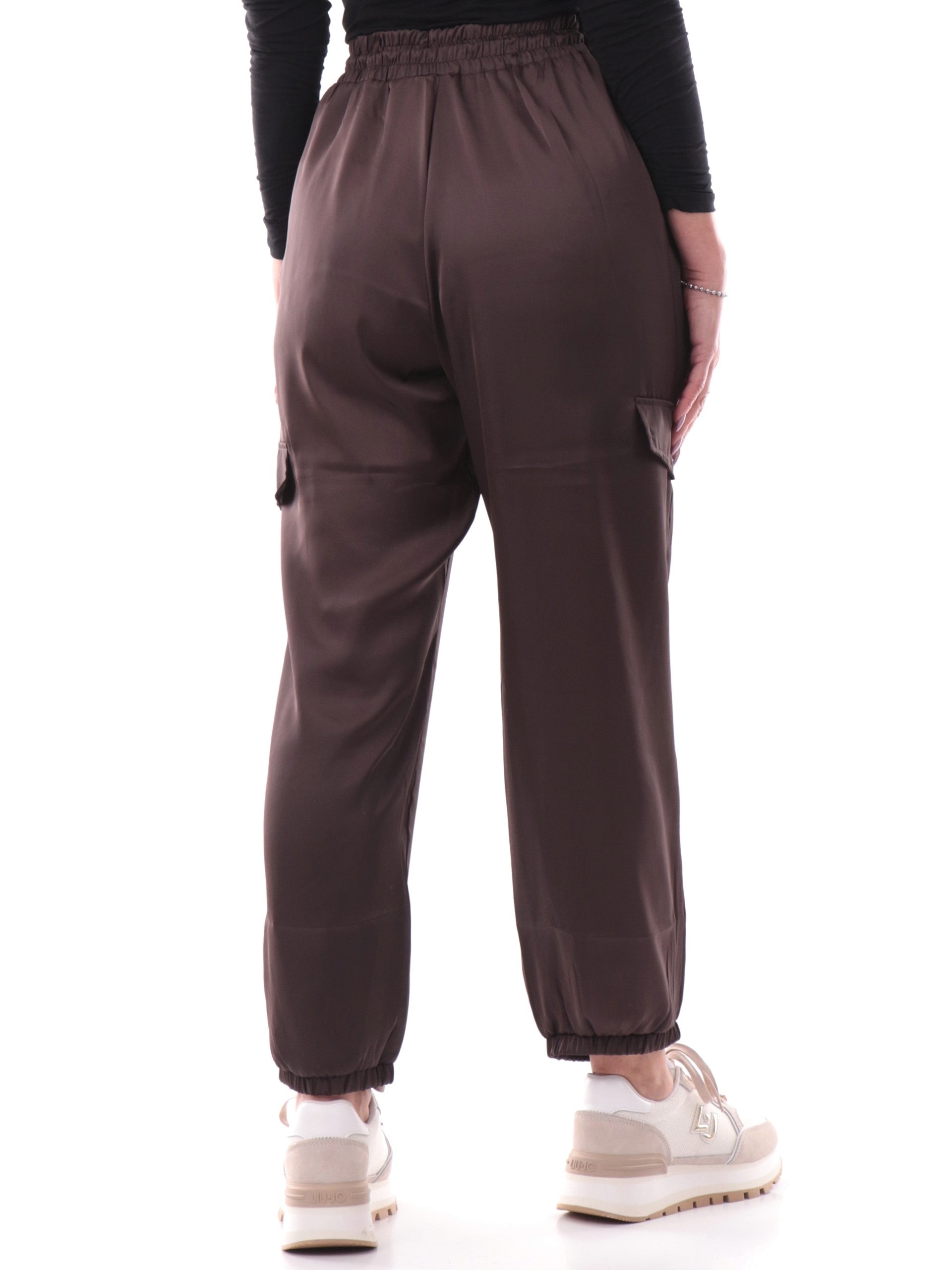 Pantaloni Liu Jo marroni cargo da donna con polsini TA5293TS964