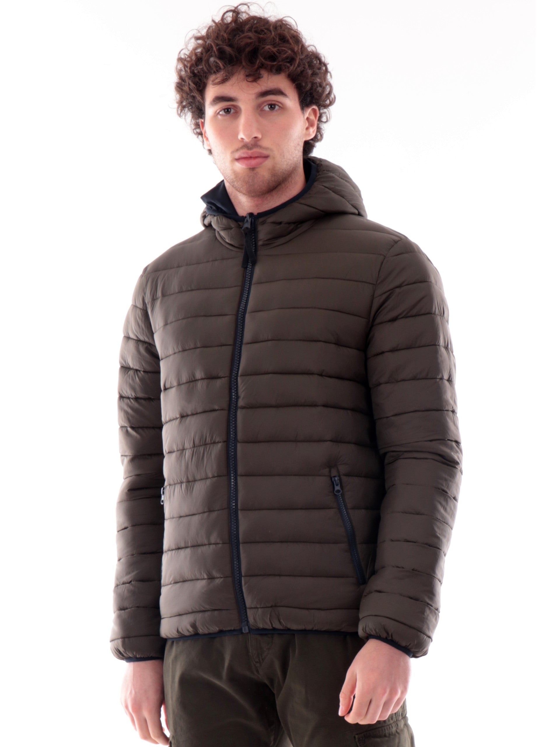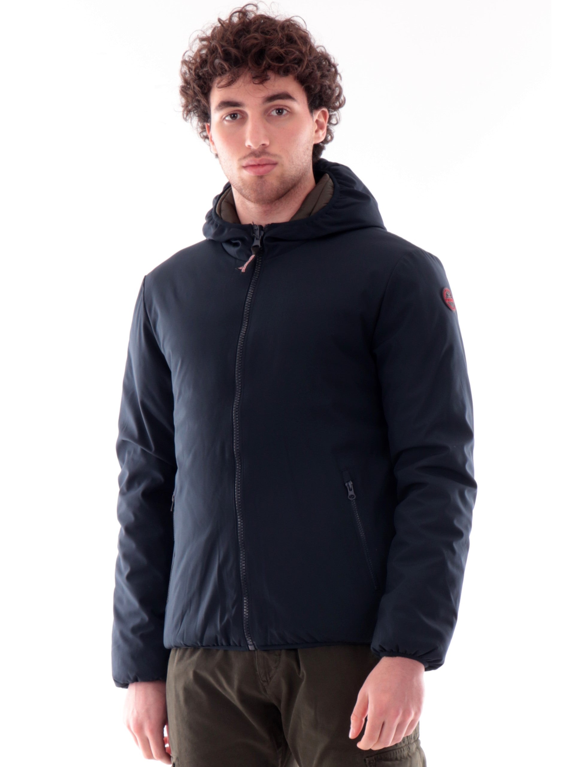 Piumino Museum reversibile blu e verde uomo Alban. Questo giubbotto reversibile realizzato da un tessuto caldo ed avvolgente al tatto perfetto per i primi freddi invernali, è caratterizzato dal cappuccio fisso, la chiusura full zip, due tasche laterali con zip e polsini elasticizzati. Questa giacca da un lato abbiamo un tessuto liscio e opaco a tinta unita blu, trapuntato a tinta unita verde dall'altro. Grazie alla sua reversibilità può essere indossata in diverse circostanze adattandosi ad ogni stile e occasione.