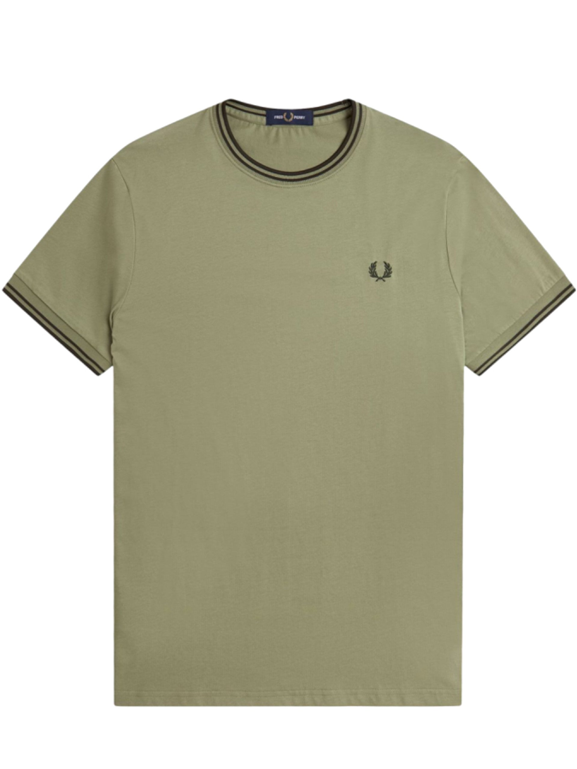 Fred Perry Twin Tipped men's black crew-neck t-shirt with double band on collar and sleeve edge M1588