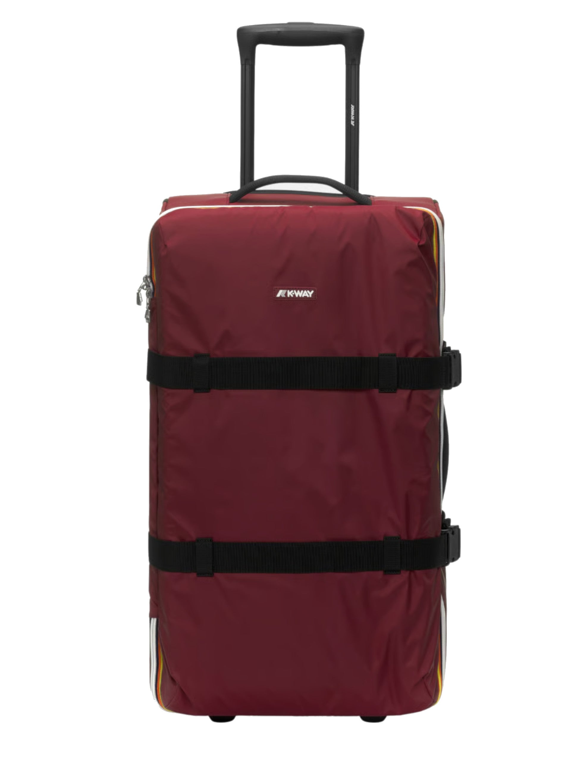 Valigia grande trolley K-Way bordeaux Blossac. Questa valigia da viaggio, realizzata dal tessuto ripstop impermeabile, idrorepellente, antivento, è caratterizzato da due ruote, tasche funzionali per organizzare il contenuto, scompartimenti multifunzionali interni, bustina di riconoscimento agganciabile, manico rigido estraibile da tasca posteriore, manico superiore e laterale per la massima versatilità e chiusura con zip a doppio cursore.